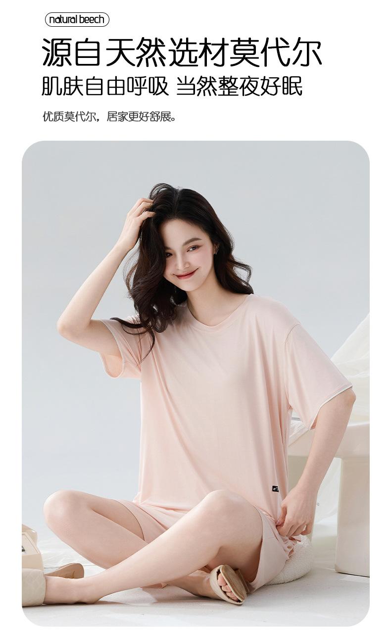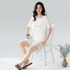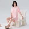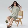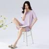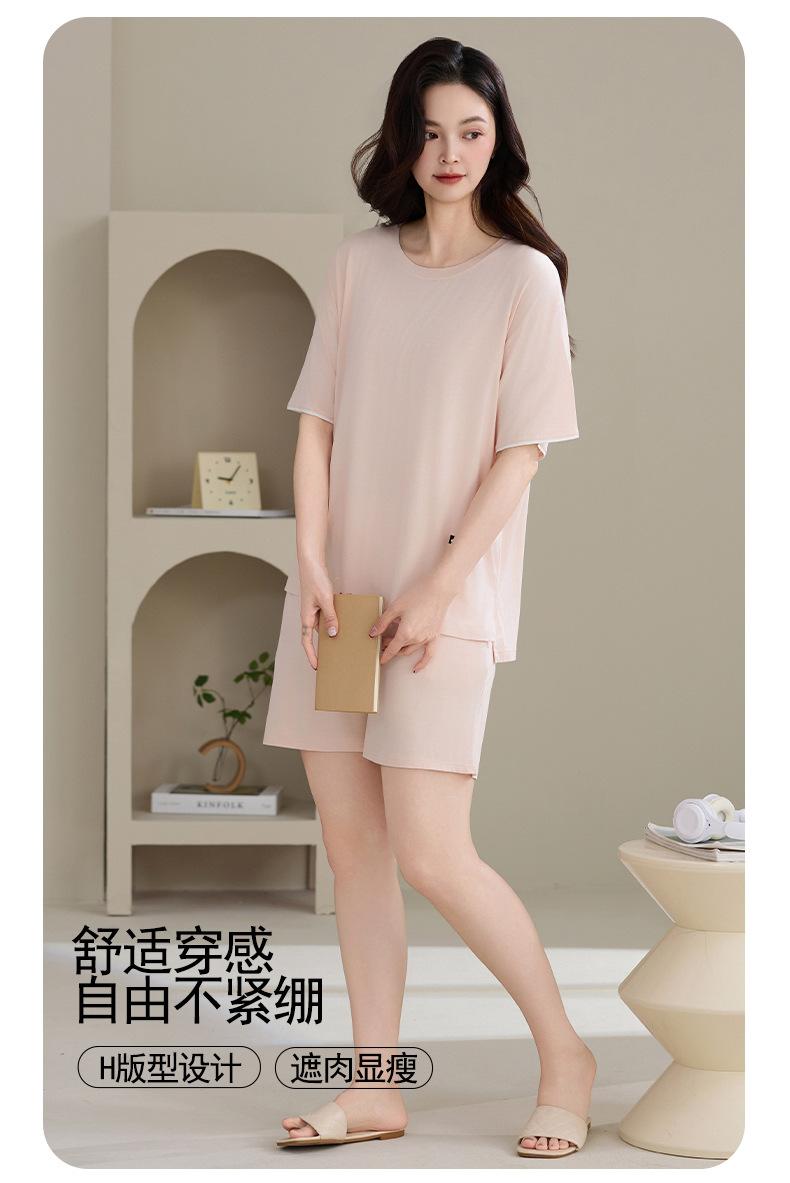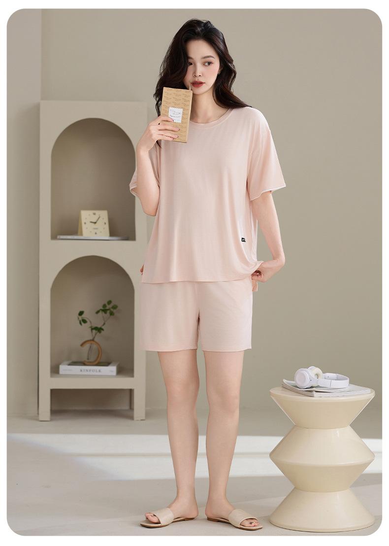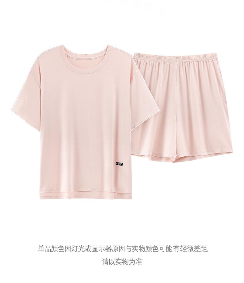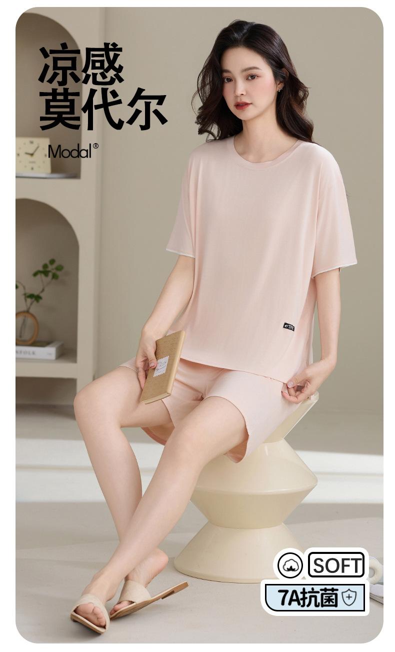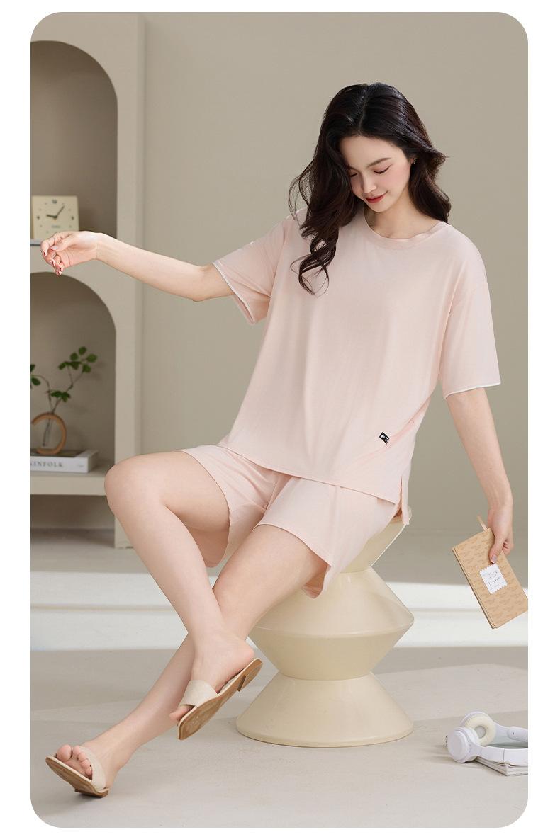 Pijama de verano para mujer, modal, cuello redondo, jersey de manga corta, pantalones cortos, talla grande, sencillo, informal, ropa de casa de sensación fresca, traje