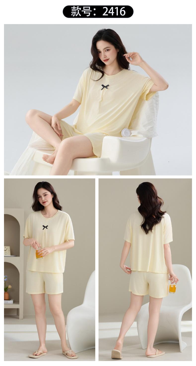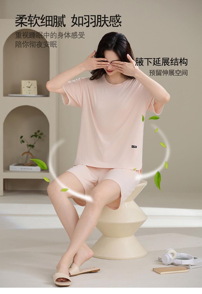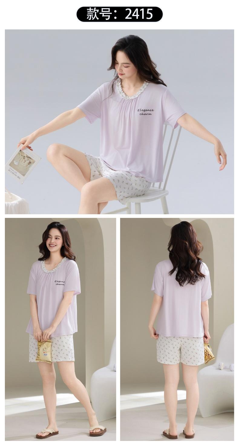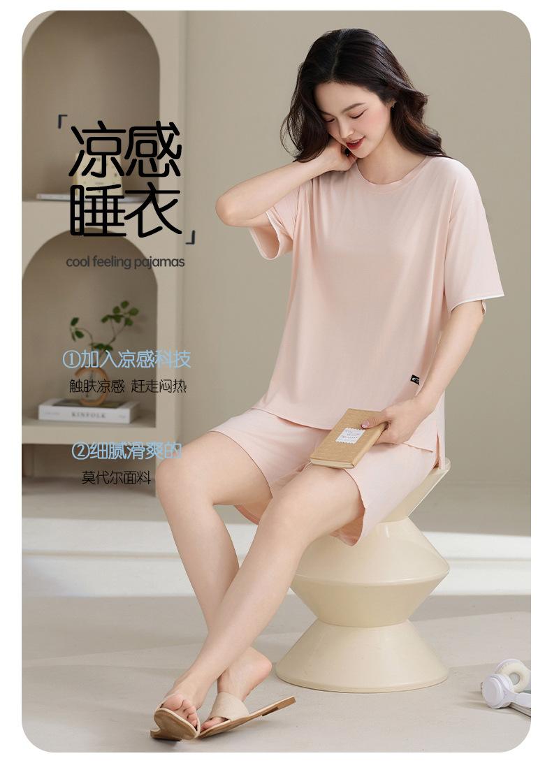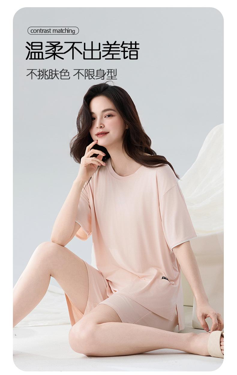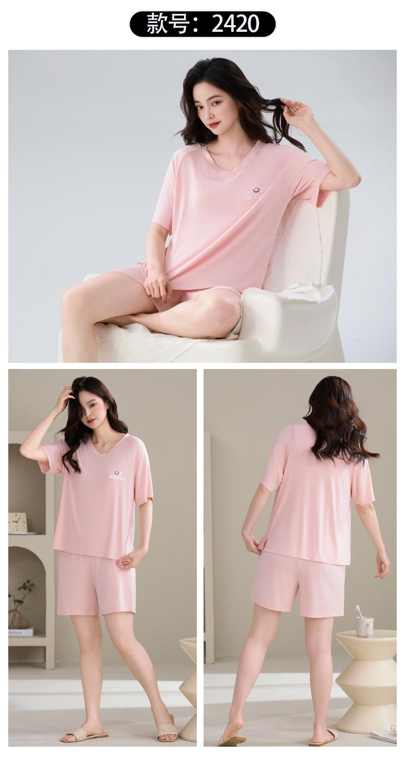 Pijama de verano para mujer, modal, cuello redondo, jersey de manga corta, pantalones cortos, talla grande, sencillo, informal, ropa de casa de sensación fresca, traje