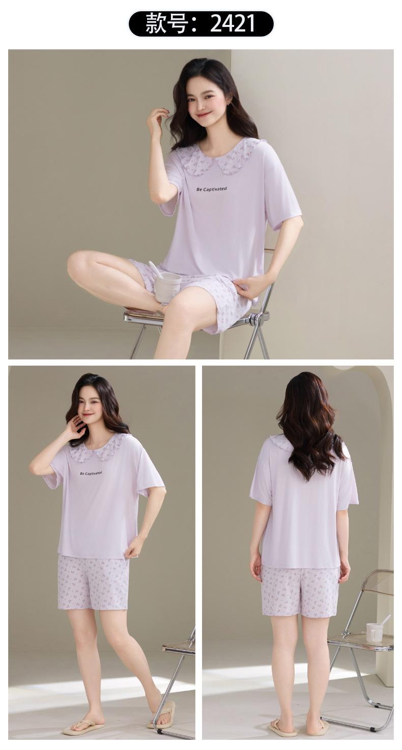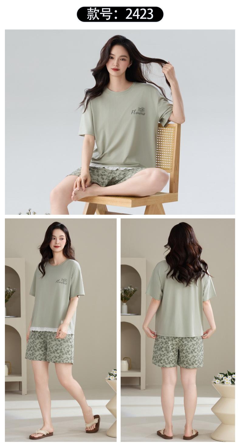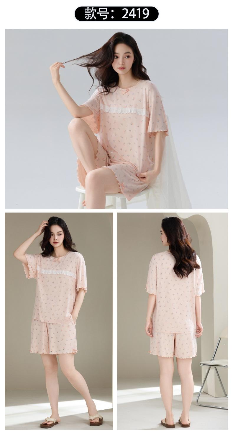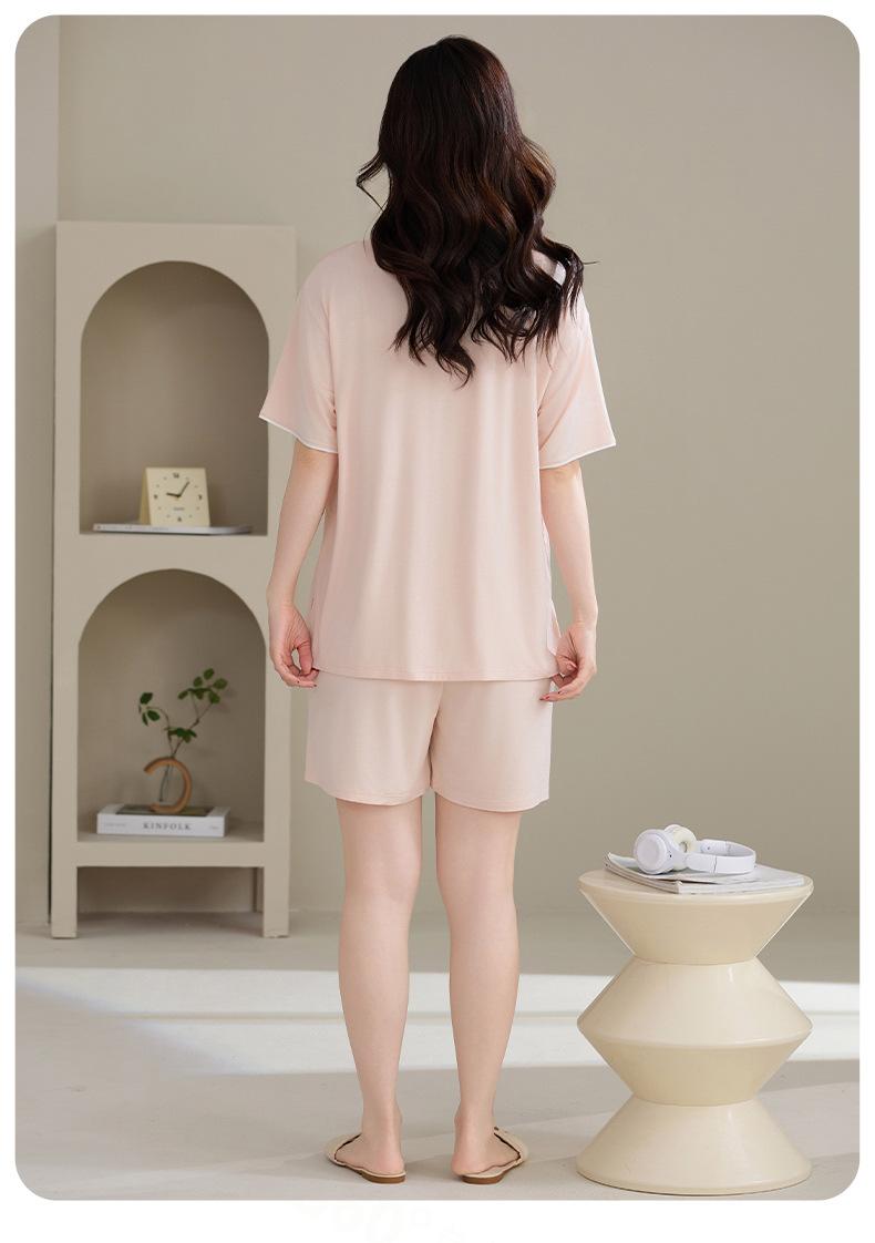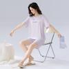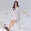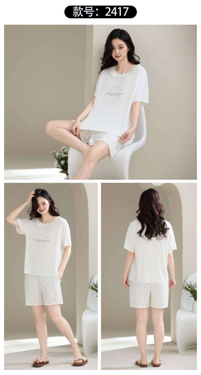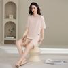 Pijama de verano para mujer, modal, cuello redondo, jersey de manga corta, pantalones cortos, talla grande, sencillo, informal, ropa de casa de sensación fresca, traje