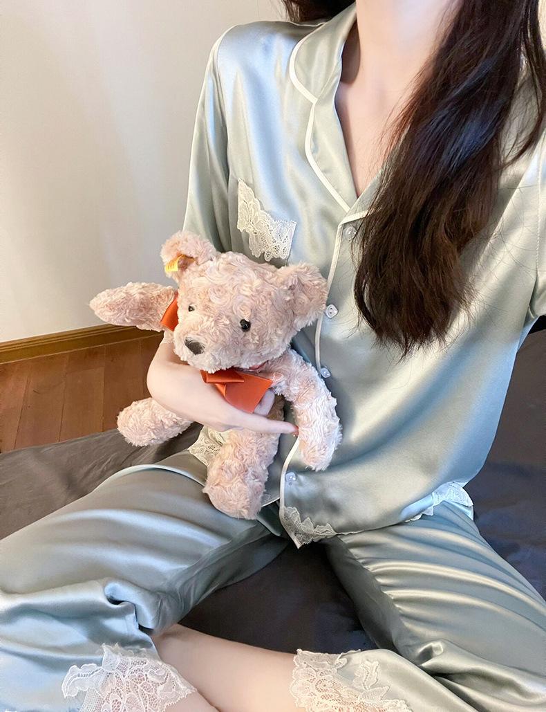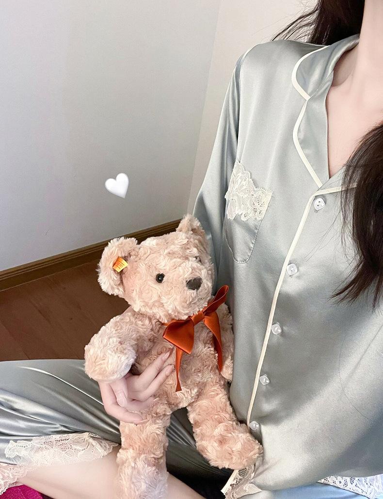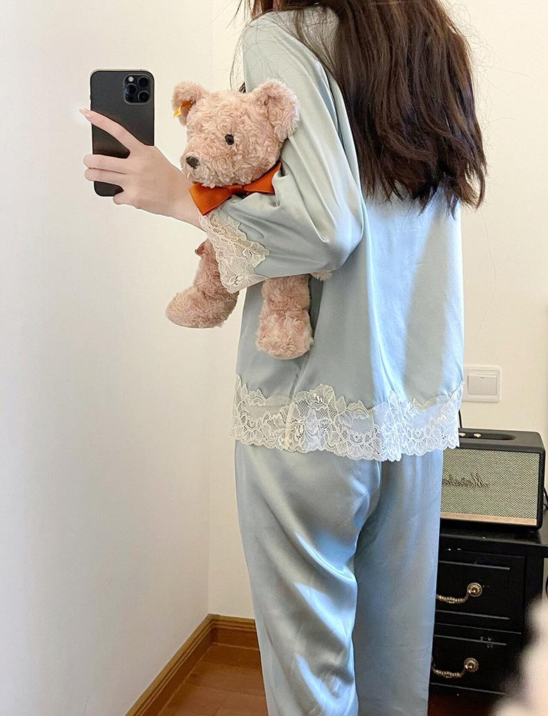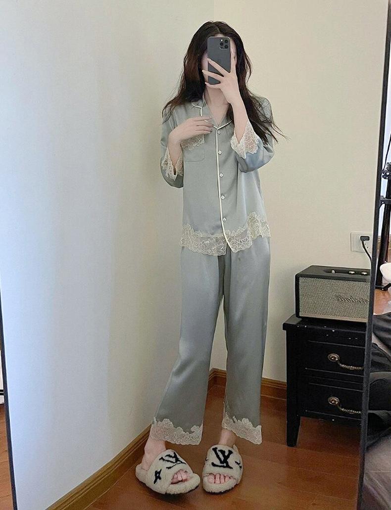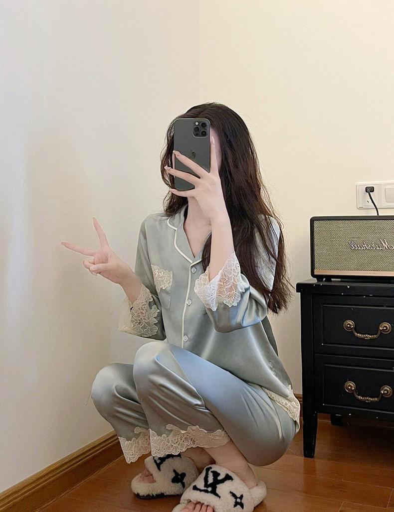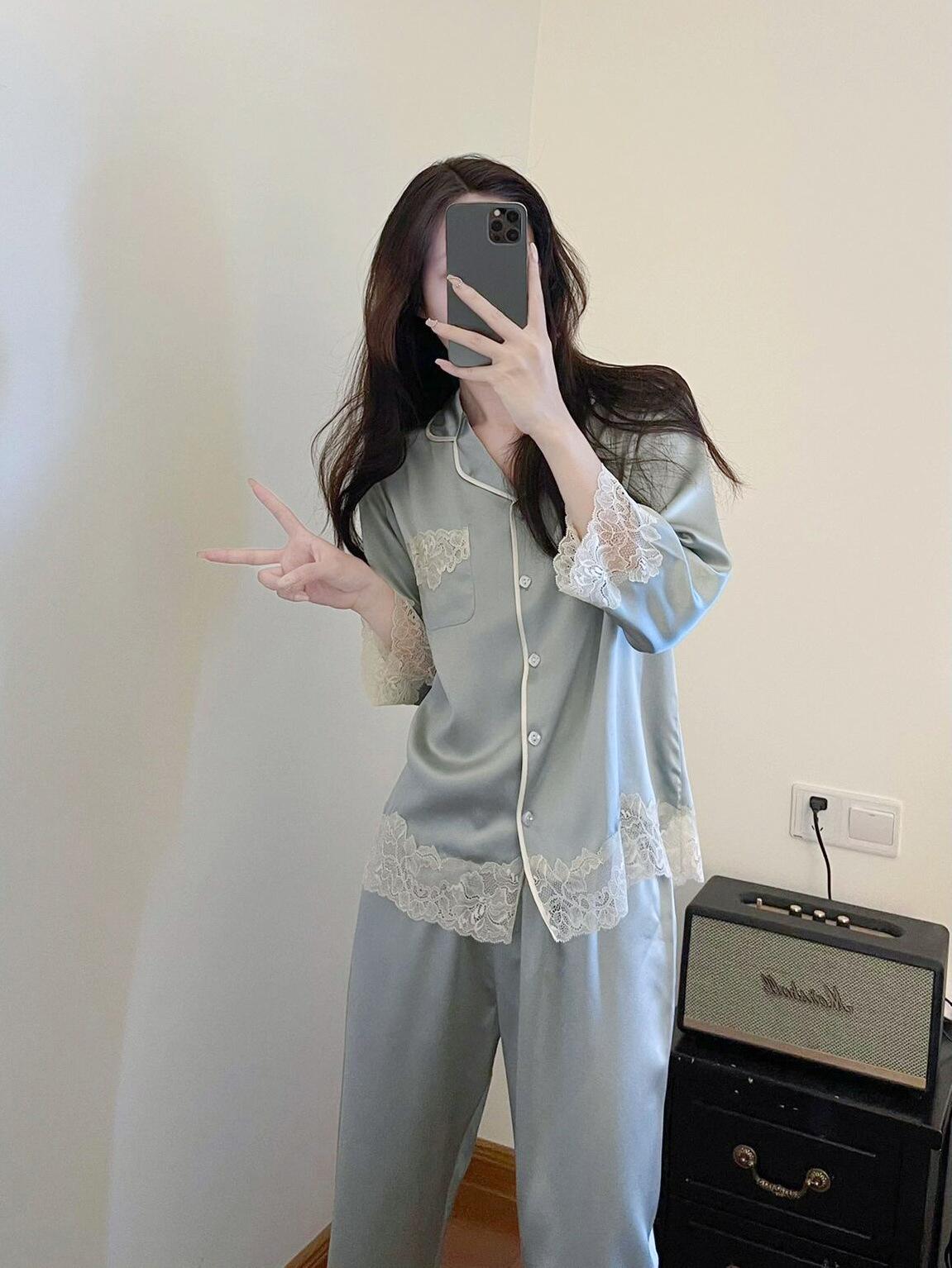 Pijama de seda helada con costuras de encaje estilo francés para mujer, primavera y verano 2025, estilo Pure Desire, ropa para el hogar, pantalones, traje para uso exterior