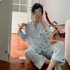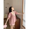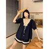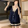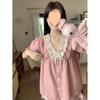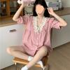 Pijama de estilo coreano vintage elegante con costuras de encaje y cuello en V, ropa de verano para el hogar para mujer, ropa exterior