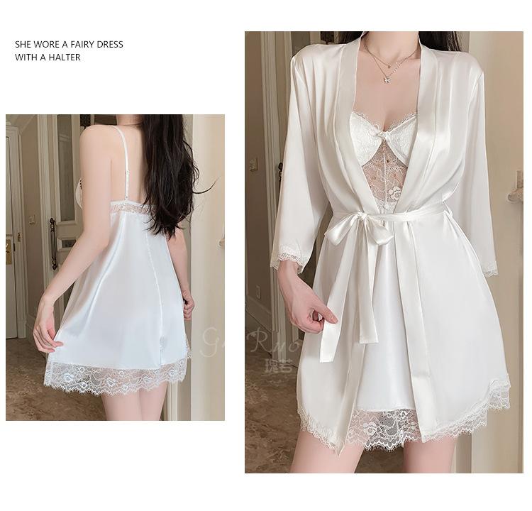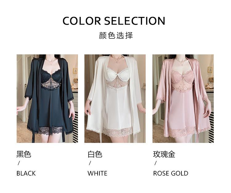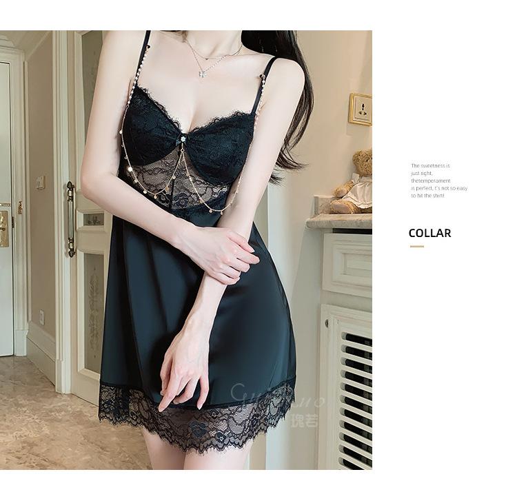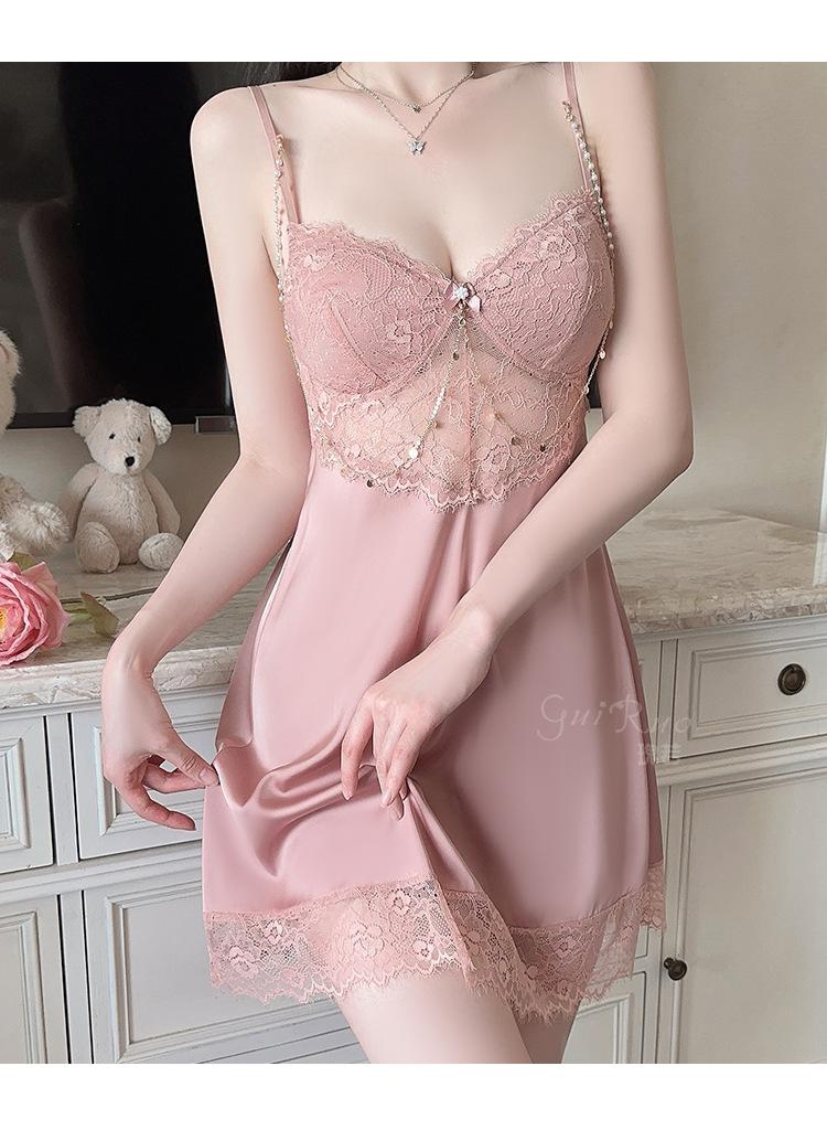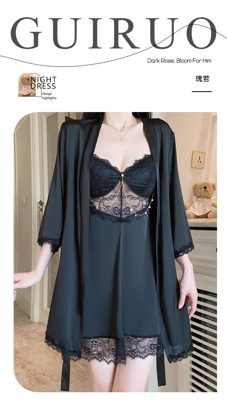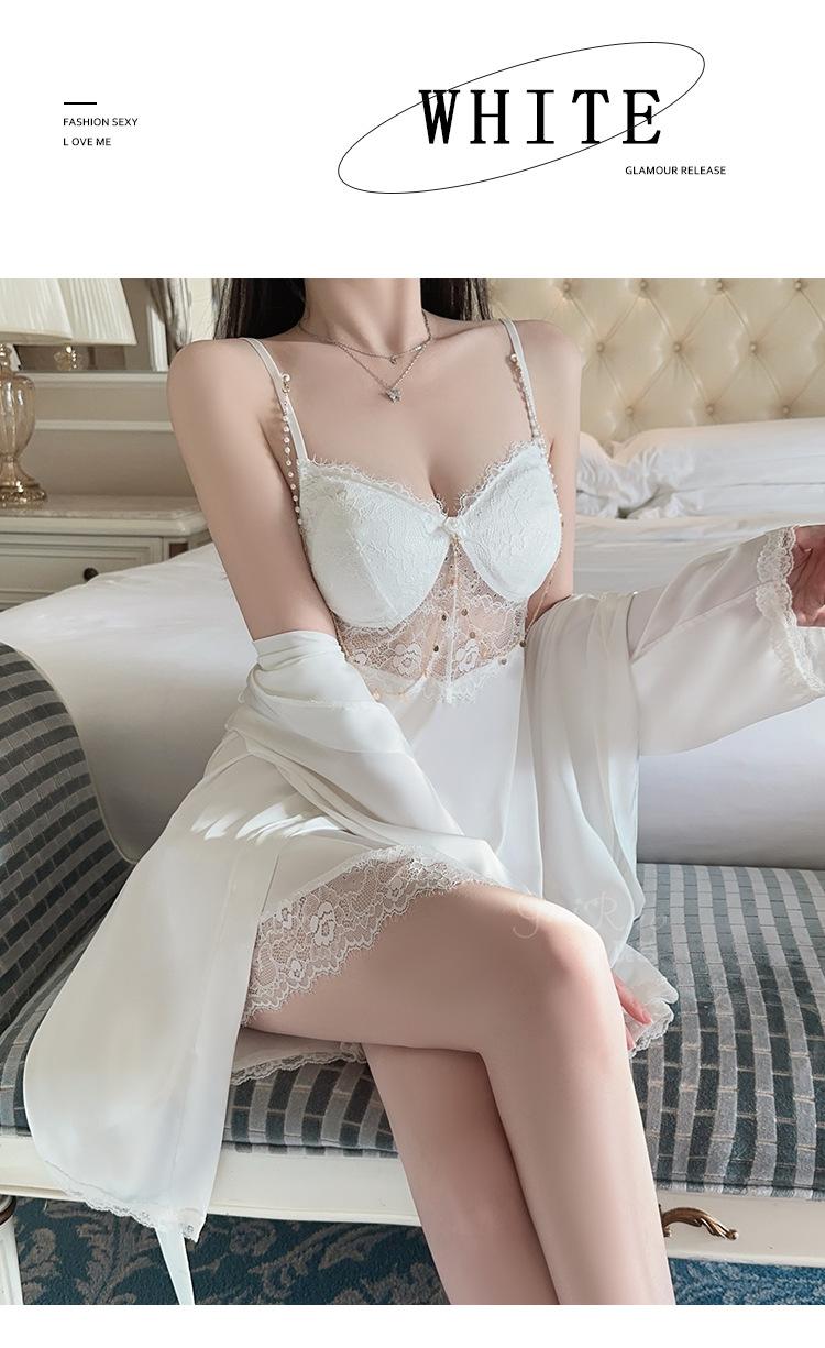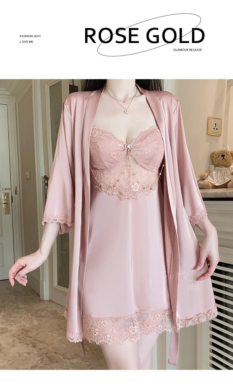 Dz Guiruo Intimates Lujo Accesible Cadena de Perlas Dulce Sexy Plus Almohadilla para Busto Camisón de Seda de Hielo Bata Exterior Conjunto para Estar en Casa 4694