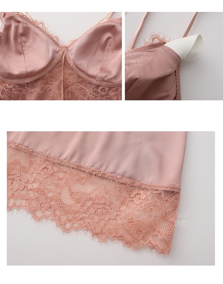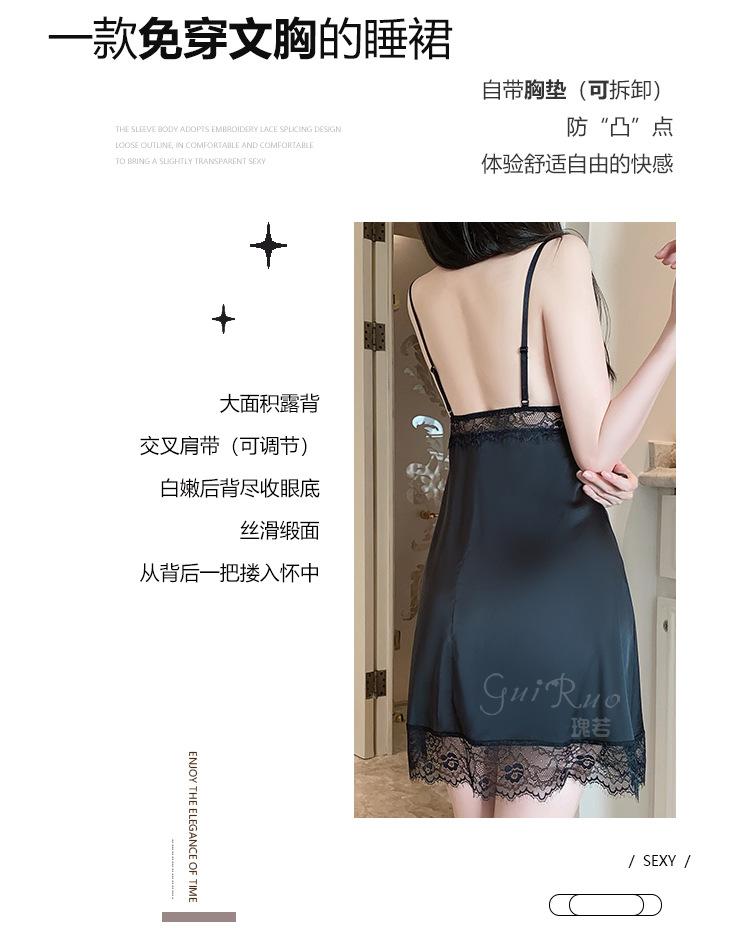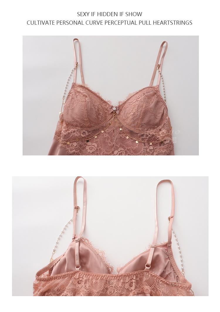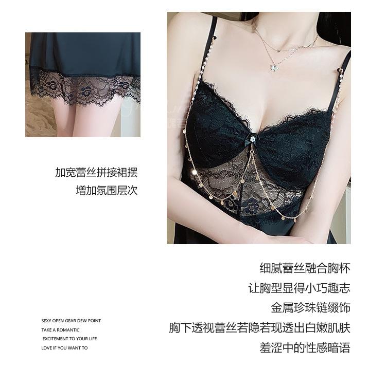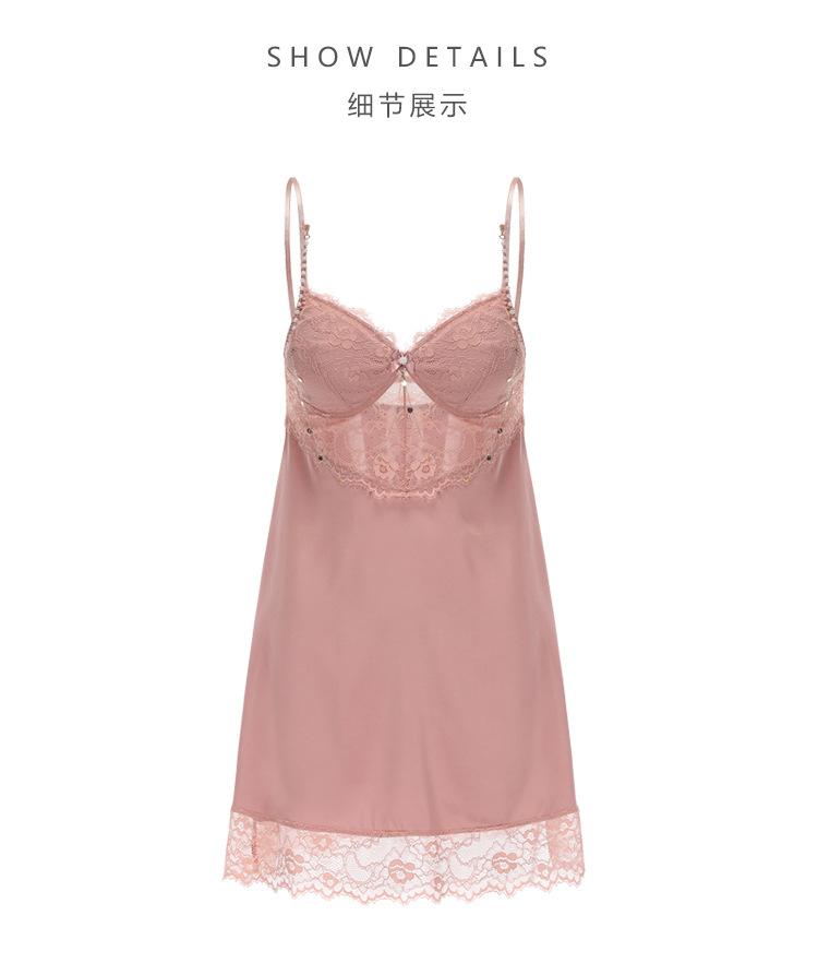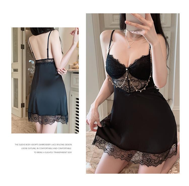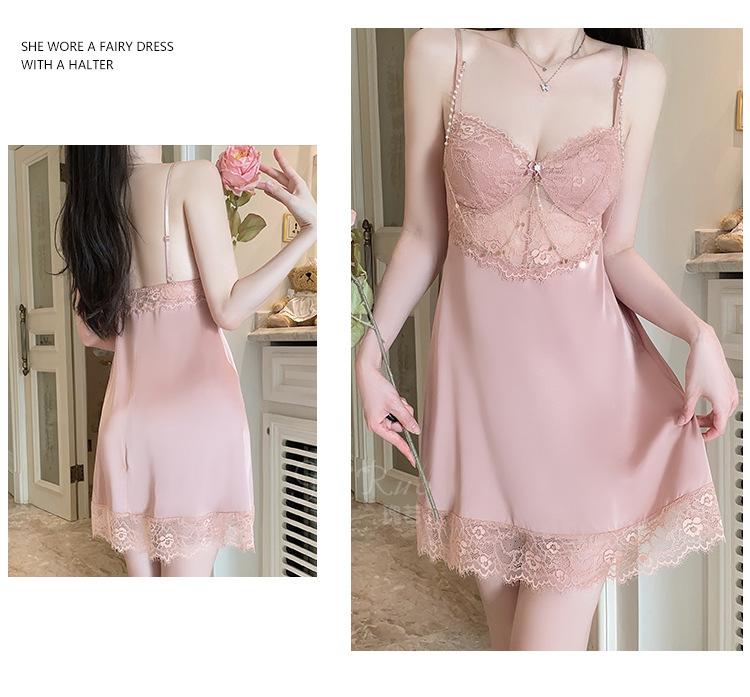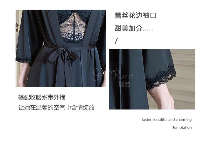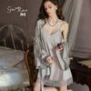 Dz Guiruo Intimates Lujo Accesible Cadena de Perlas Dulce Sexy Plus Almohadilla para Busto Camisón de Seda de Hielo Bata Exterior Conjunto para Estar en Casa 4694