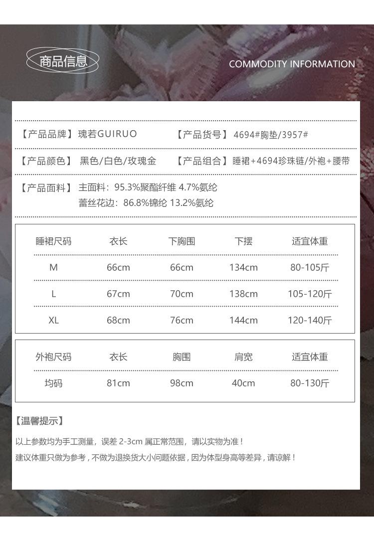 4694 black (nightgown + 4694 pearl chain), 3957 black (robe + belt), 4694 white (nightgown + 4694 pearl chain)...