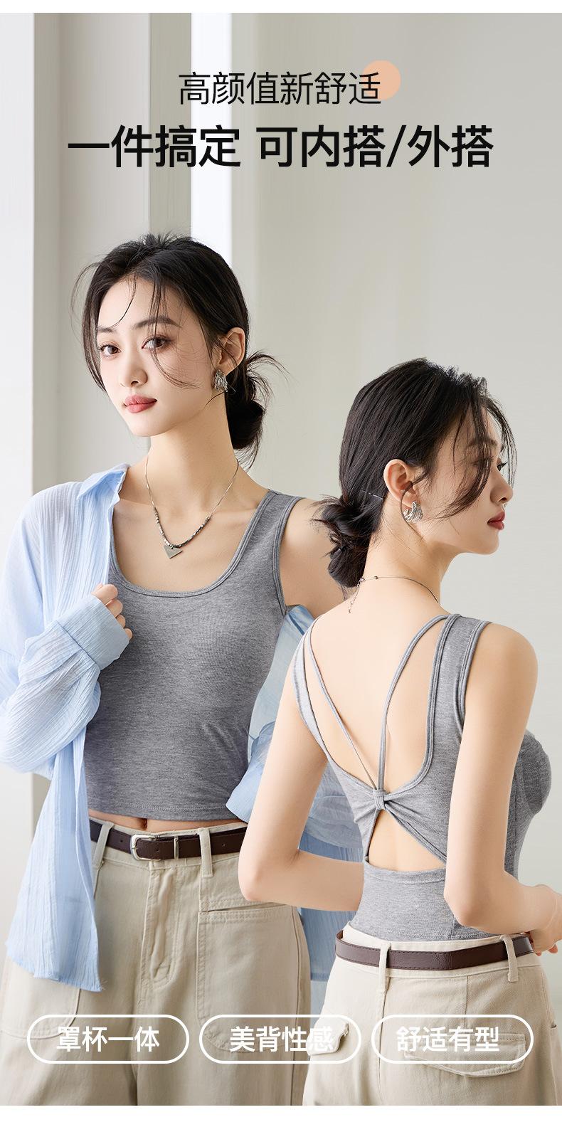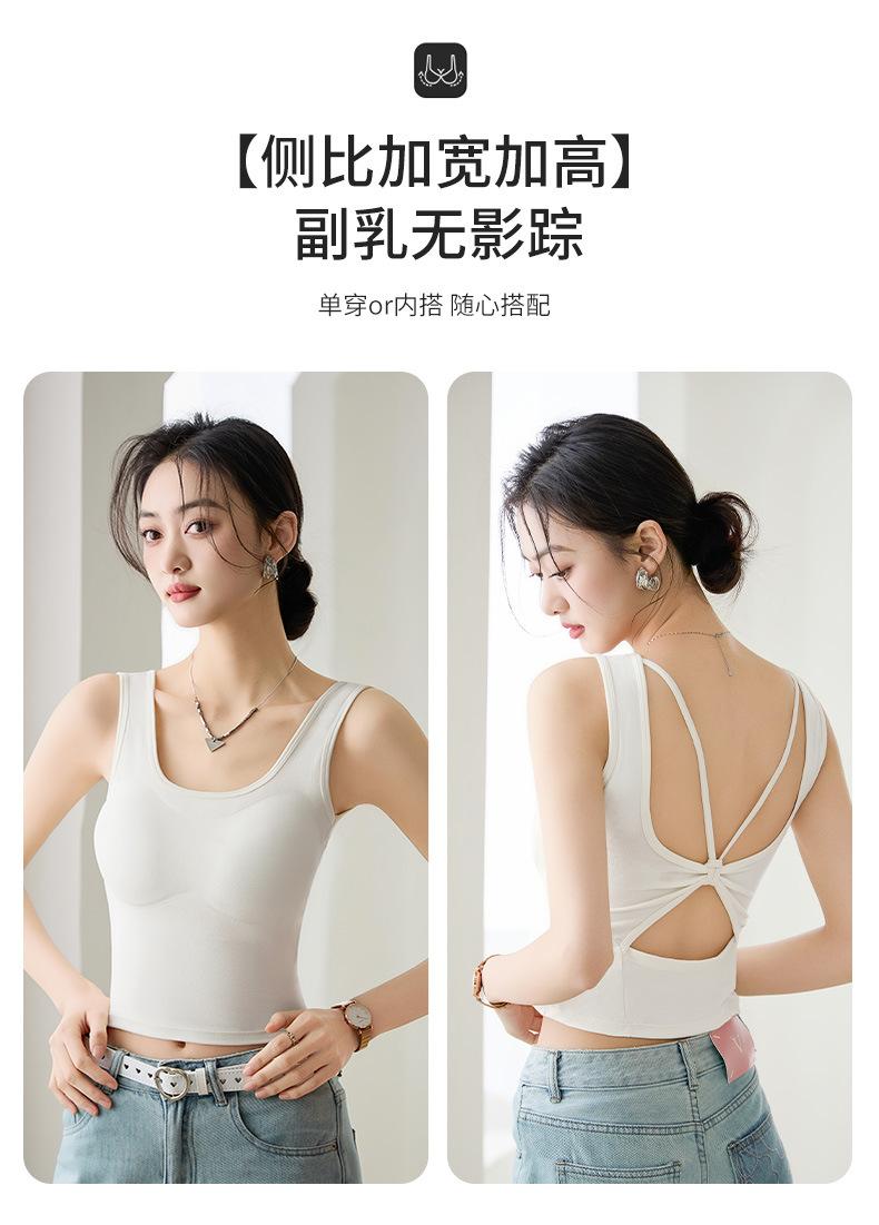 Ropa interior de verano con espalda hermosa, cruzada, hueca, sexy, ajustada, con hombros anchos, chaleco para chica caliente, copa fija de una pieza