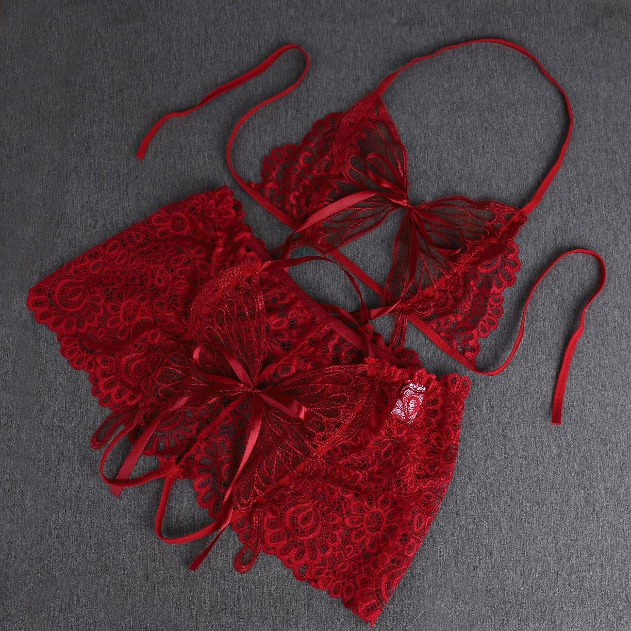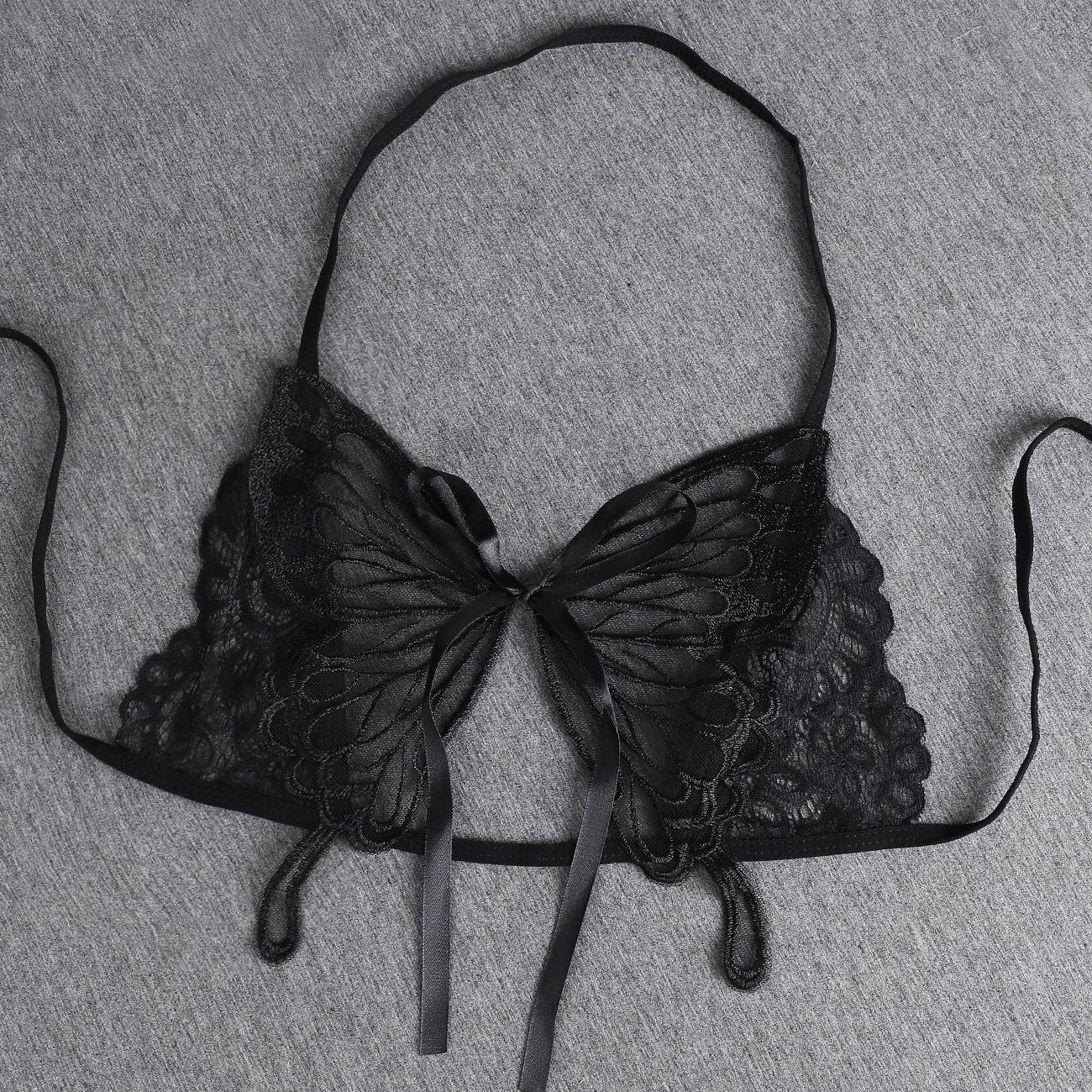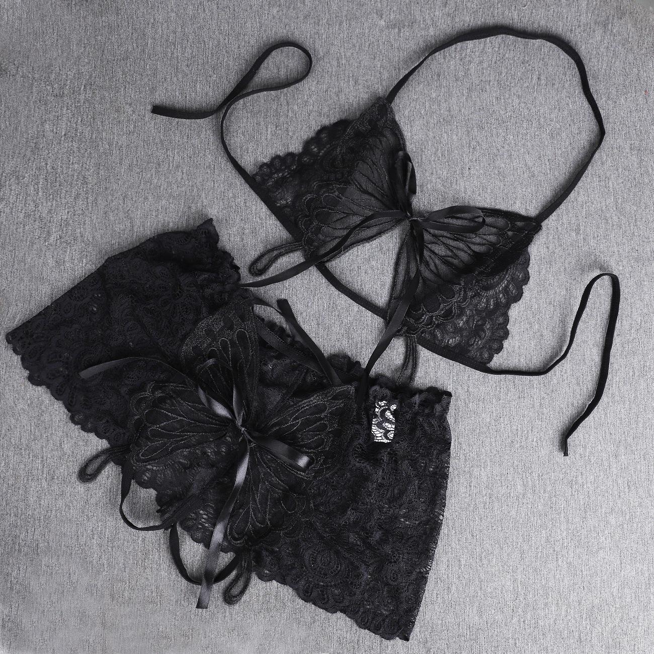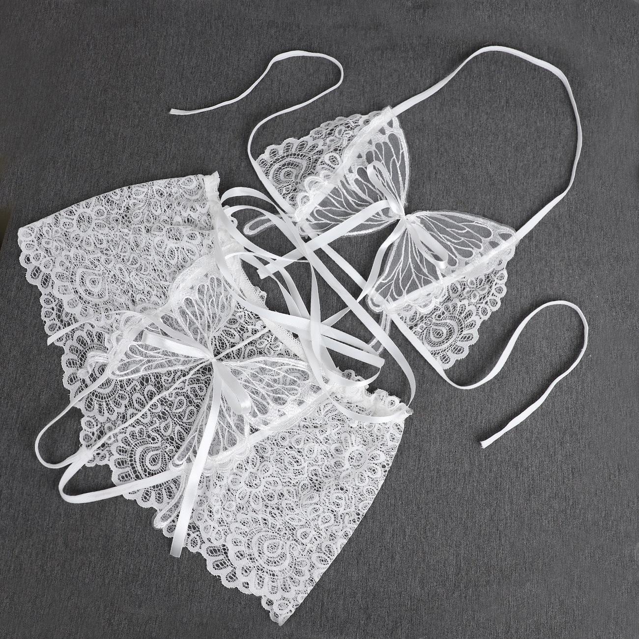 Ropa interior de encaje transfronteriza para mujer, tiro bajo, delgada, pura, sin entrepierna, sexy, bordado de mariposa, super hot para mujer