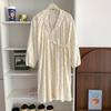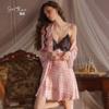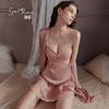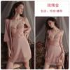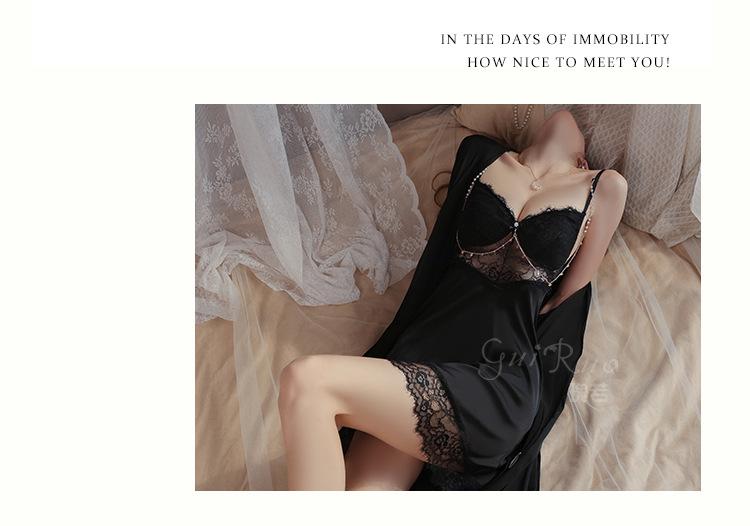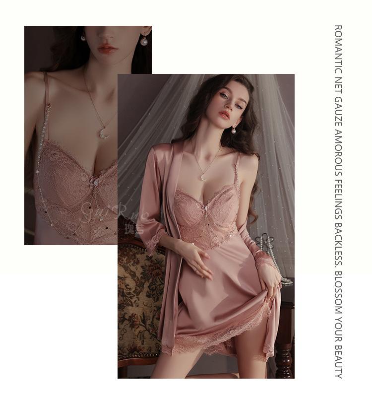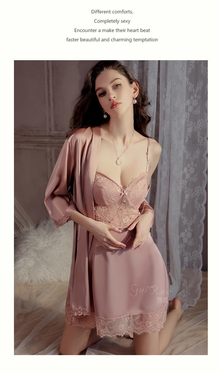 Pijama de Seda de Hielo Guiruo para Mujer Deseo Puro Push up Almohadilla para el Busto Camisón Sexy Cárdigan Bata Exterior Conjunto de Ropa para el Hogar 4694