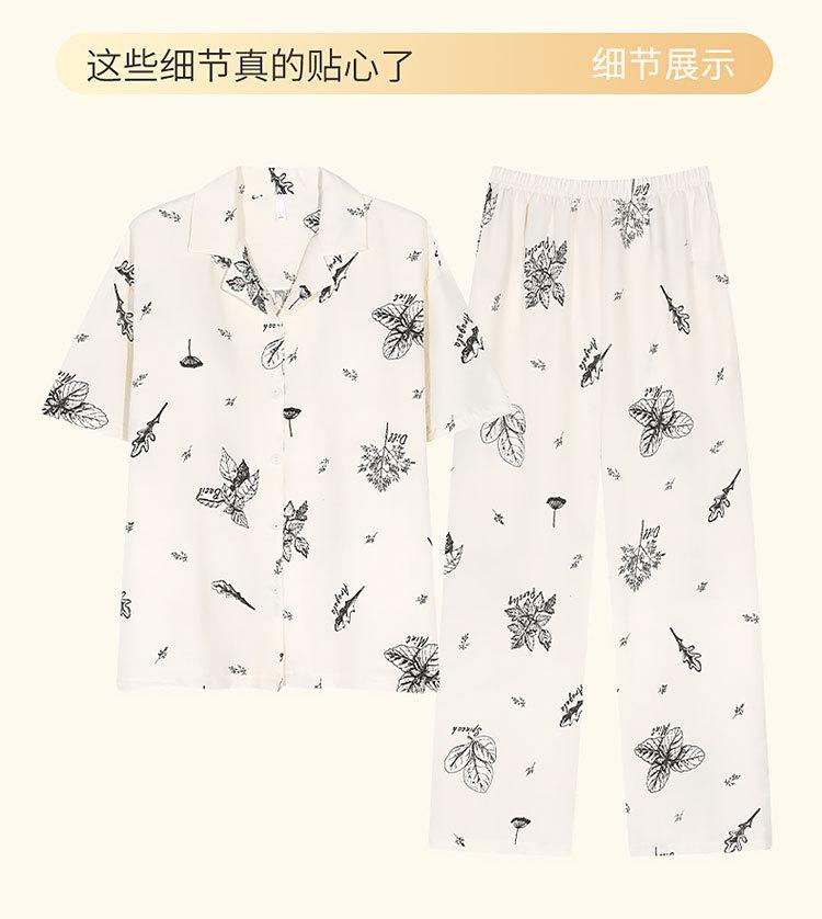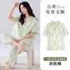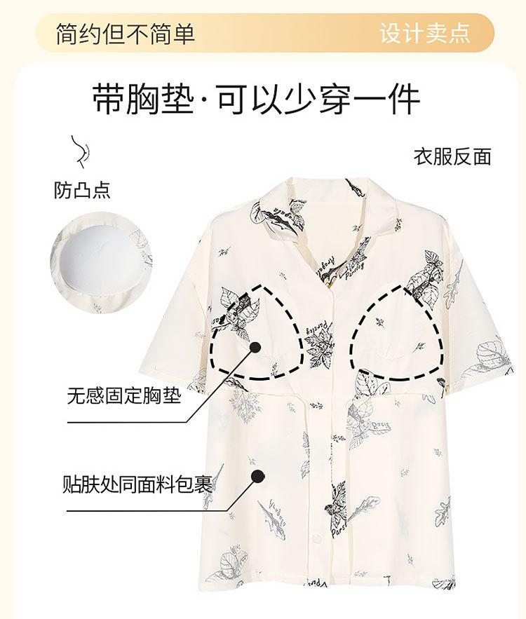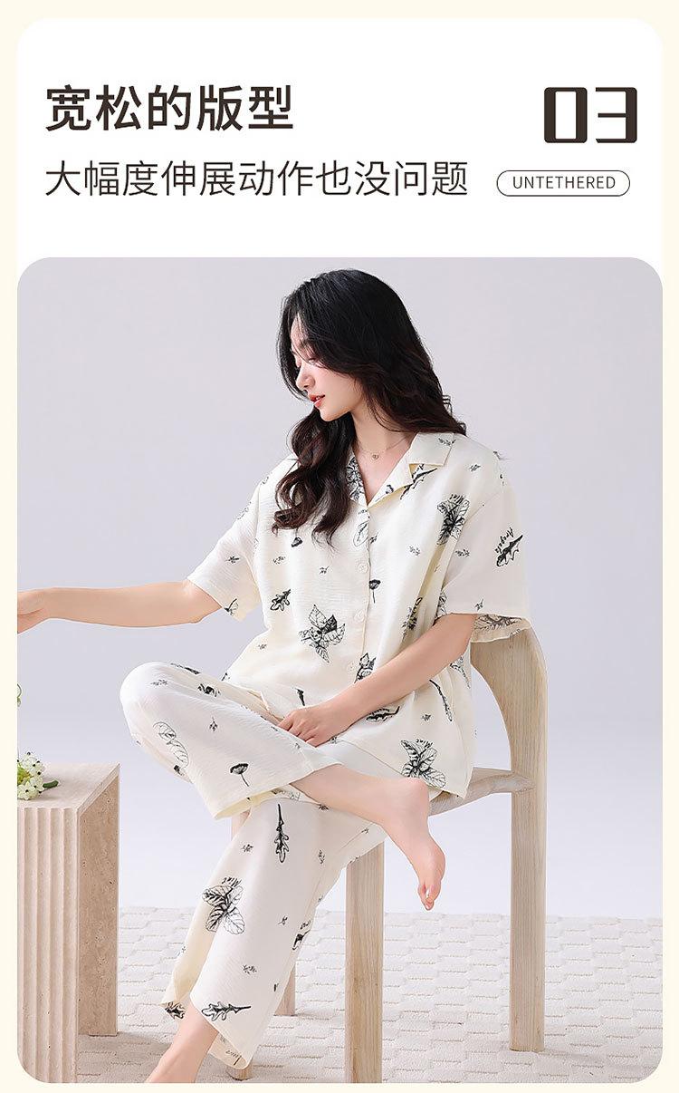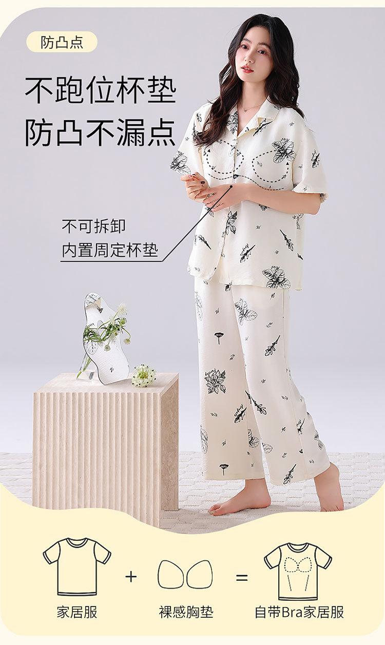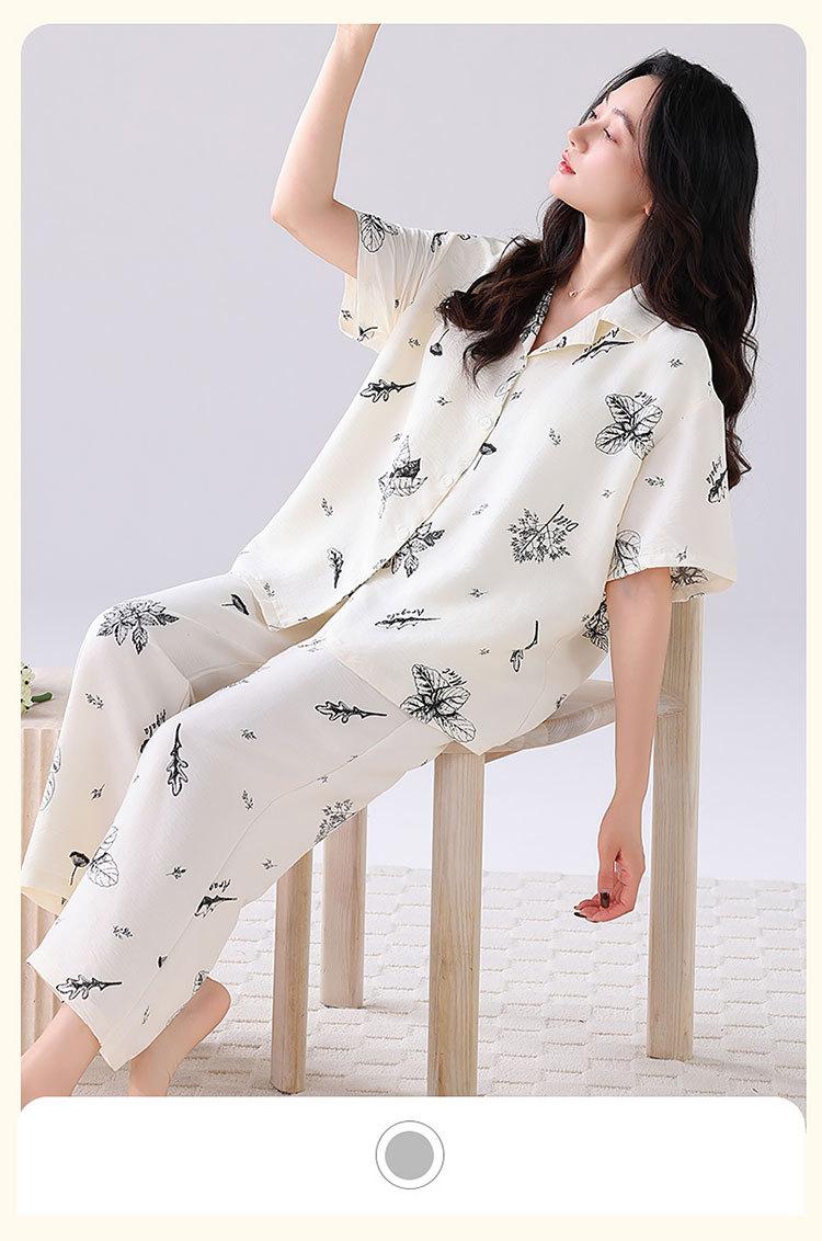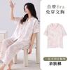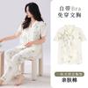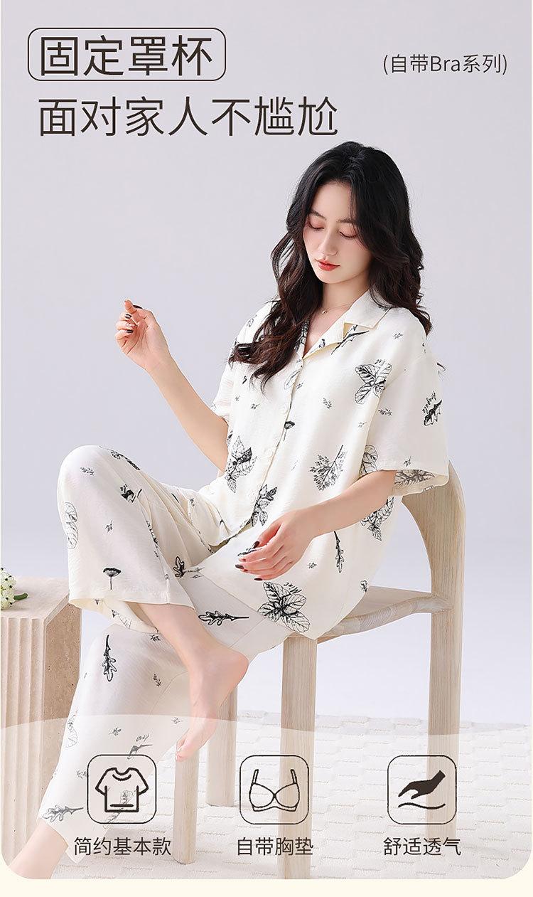 [Con Almohadilla en el Pecho] Pijama de Algodón Nube para Mujer Verano Manga Corta Pantalón Delgado Casual Holgado Ropa de Exterior Traje de Ropa para el Hogar