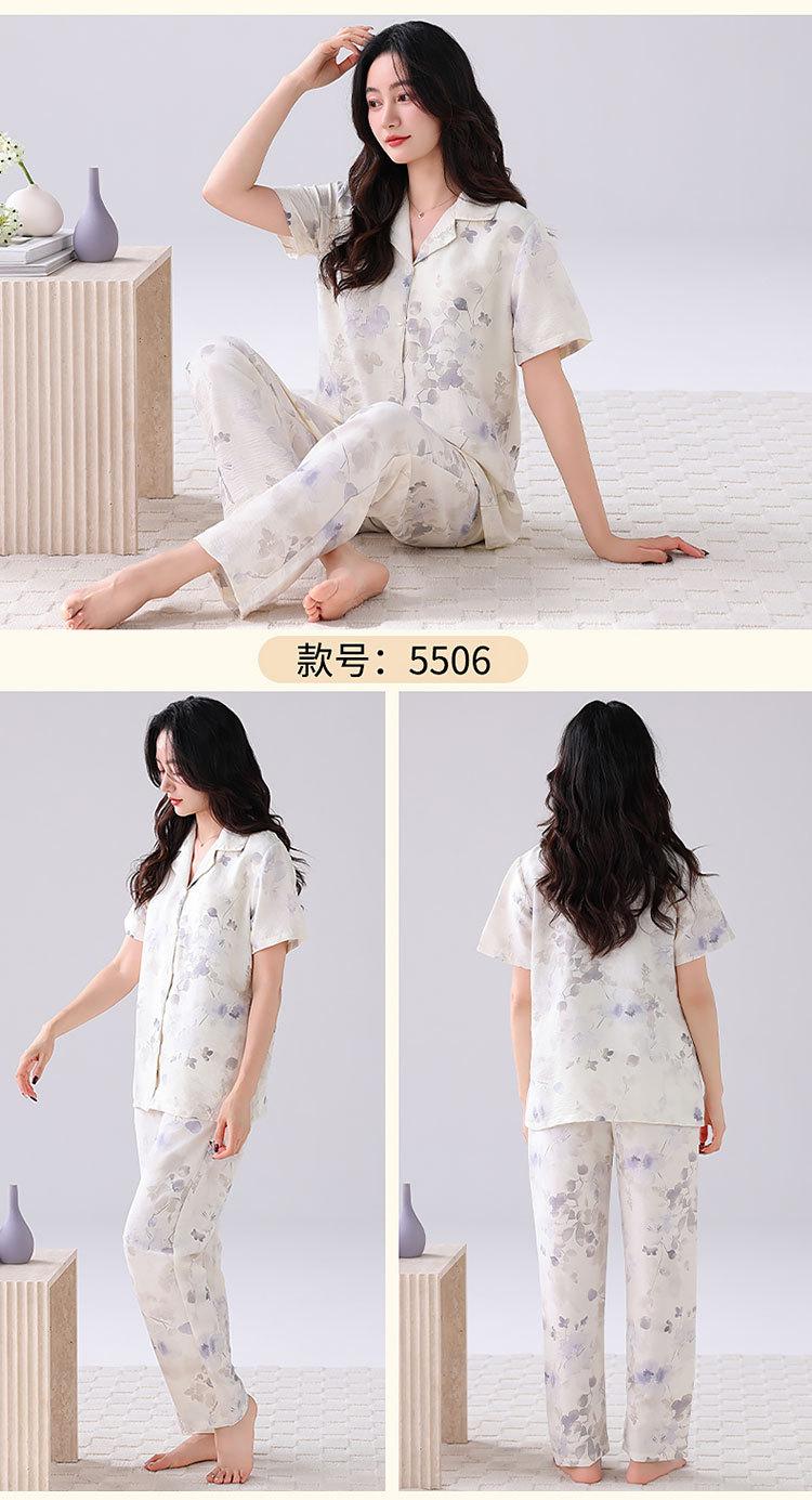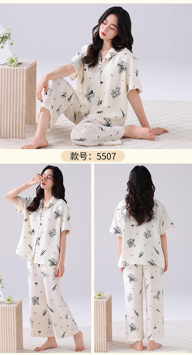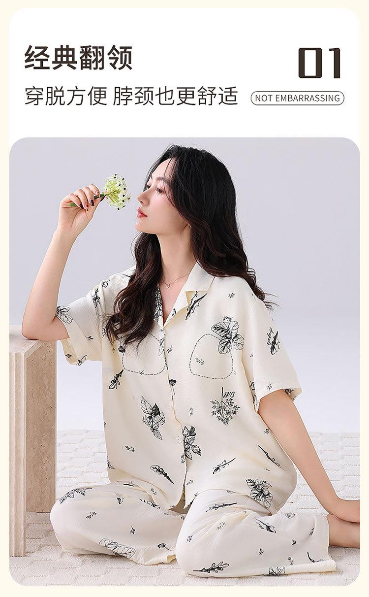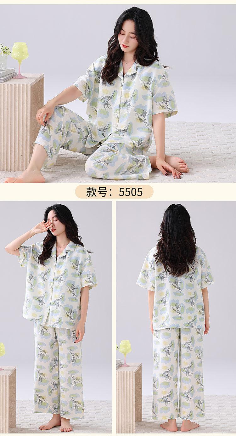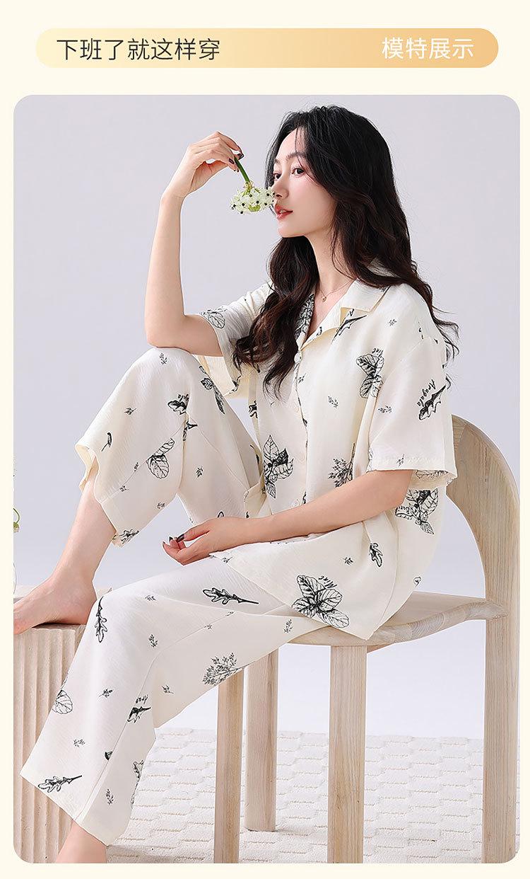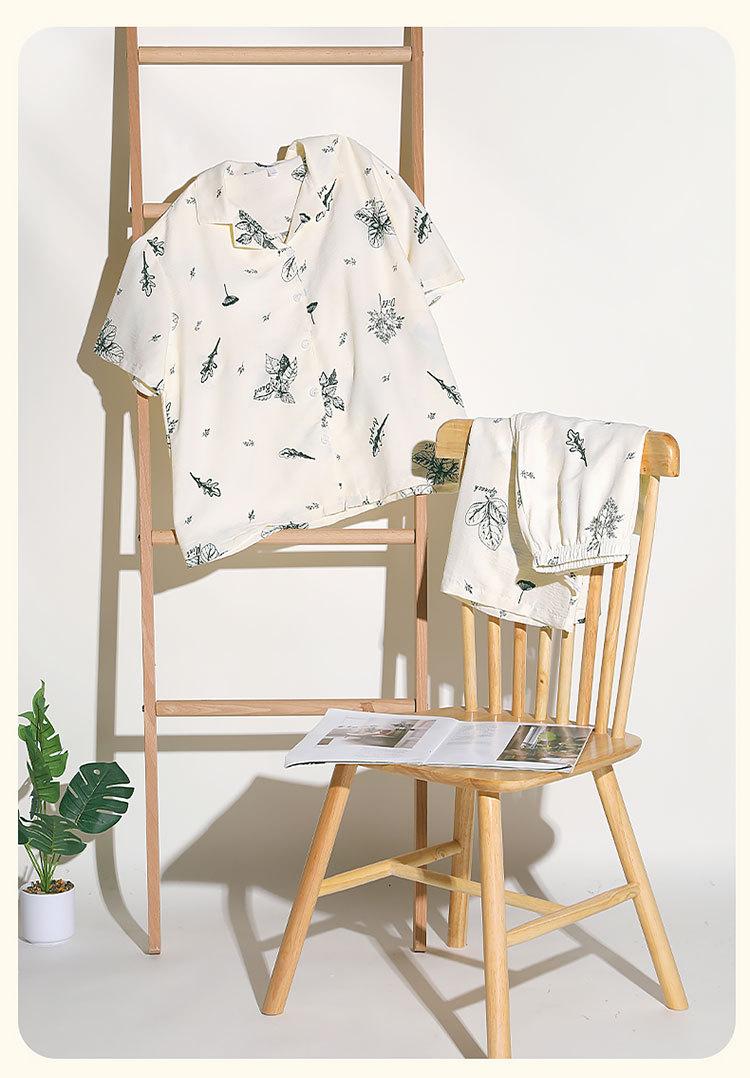 [Con Almohadilla en el Pecho] Pijama de Algodón Nube para Mujer Verano Manga Corta Pantalón Delgado Casual Holgado Ropa de Exterior Traje de Ropa para el Hogar