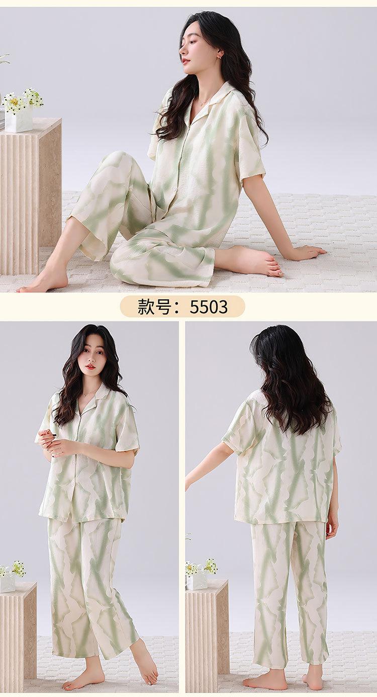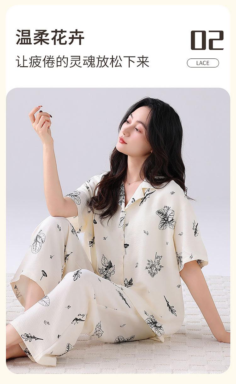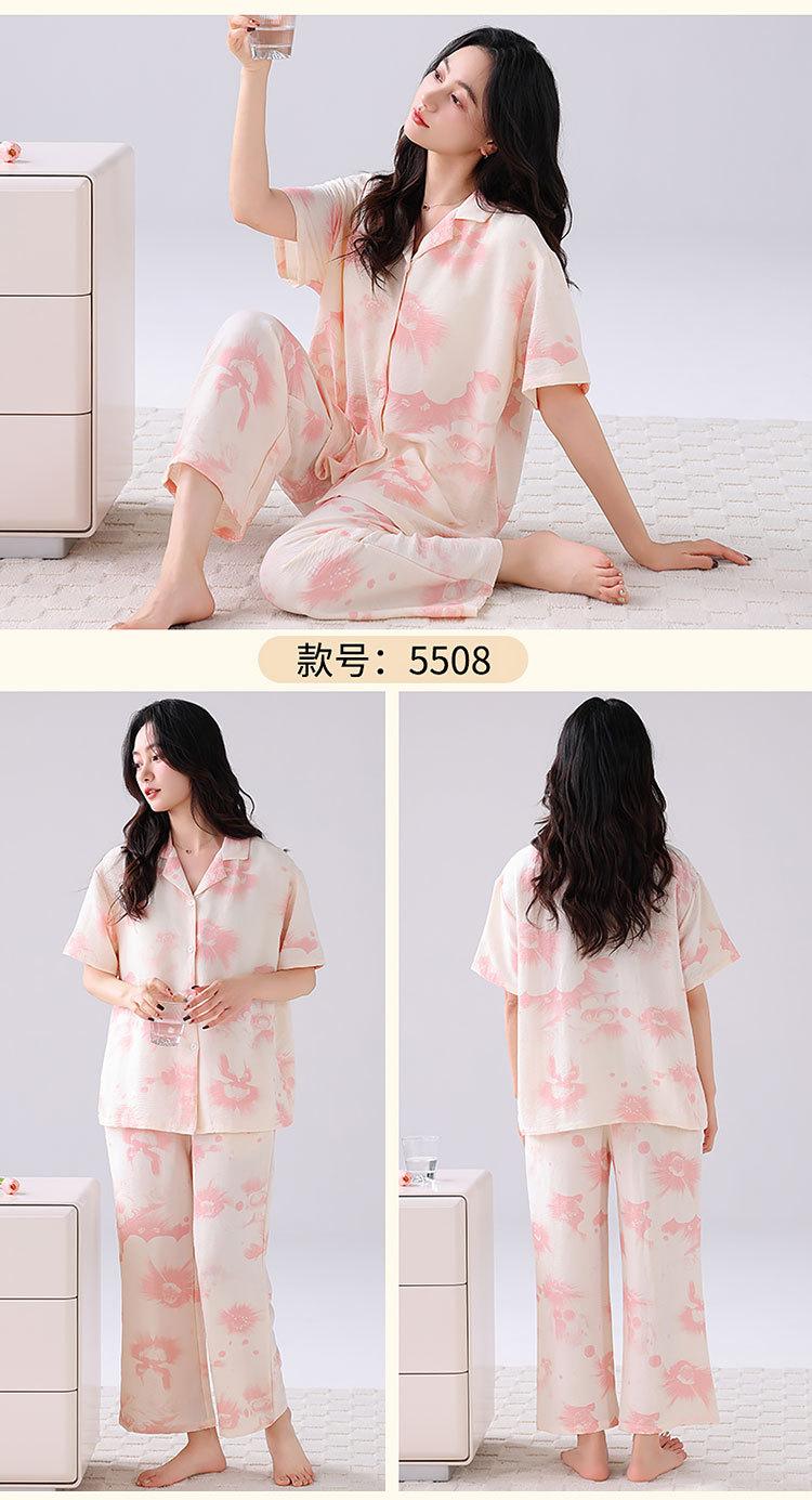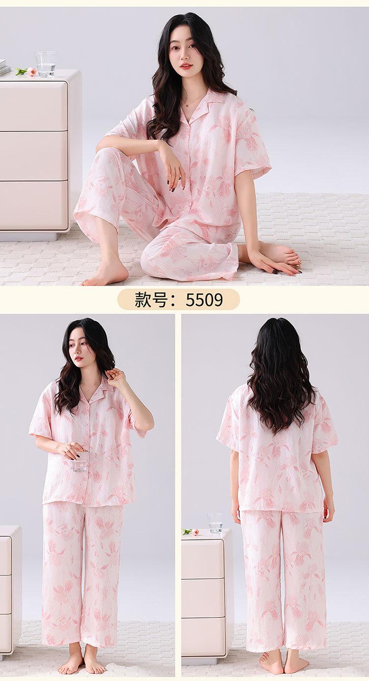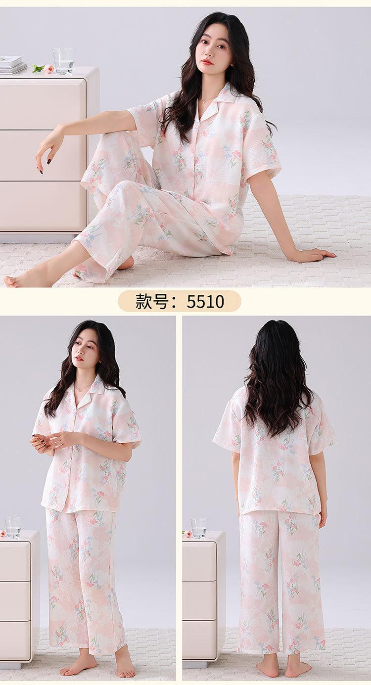 [Con Almohadilla en el Pecho] Pijama de Algodón Nube para Mujer Verano Manga Corta Pantalón Delgado Casual Holgado Ropa de Exterior Traje de Ropa para el Hogar
