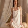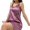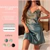 Verano Europeo y Americano Seda de Hielo Sexy Camisón Falda Descubierta Ropa de Casa para Mujer Pijama Nuevo Transpirable Cruzado Delgado