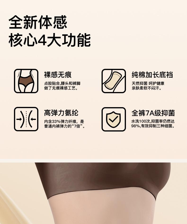 Calzones sin costuras de entrepierna extendida 7A para mujer, para todo el año, yoga de una pieza con glúteos de durazno, entrepierna de algodón puro, calzones de talle medio