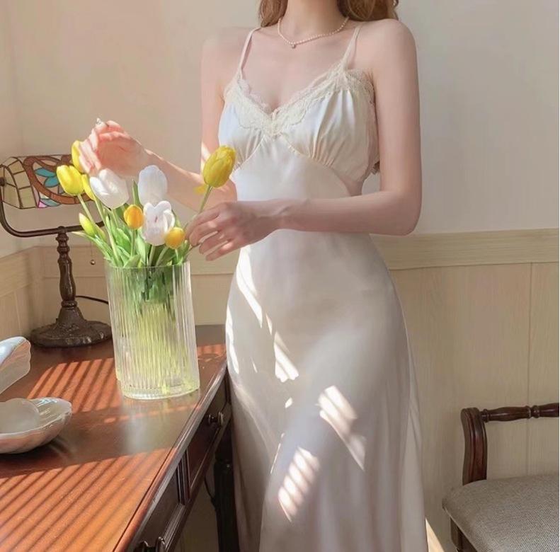 Camisón de seda helada para mujer, nuevo estilo, primavera y verano, sexy, con tirantes finos, diseño de puro deseo, pijama de seda helada, 2025