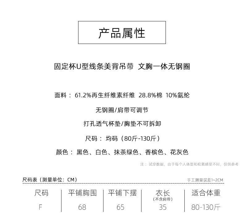 Primavera Nuevo Línea en U Hermoso Espalda Ropa Interior Sujetador de Mujer de Una Pieza con Almohadilla en el Pecho Base Interna Verano Camisola Pequeña