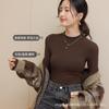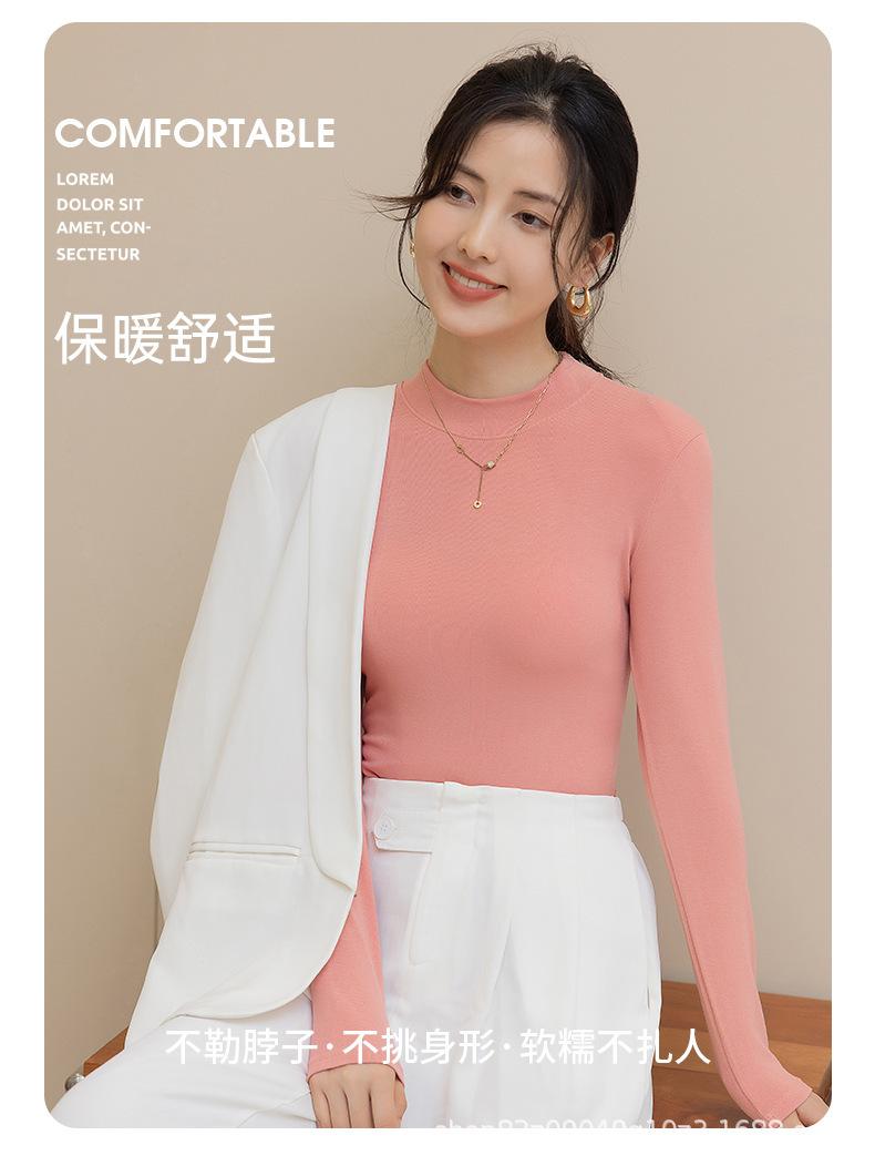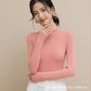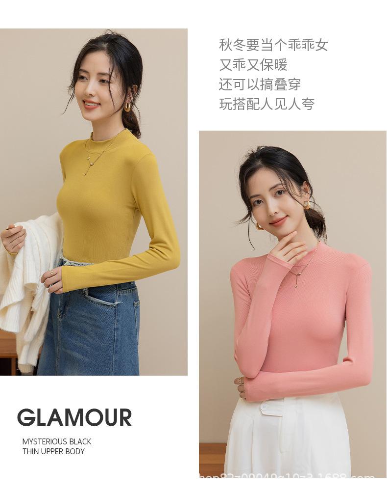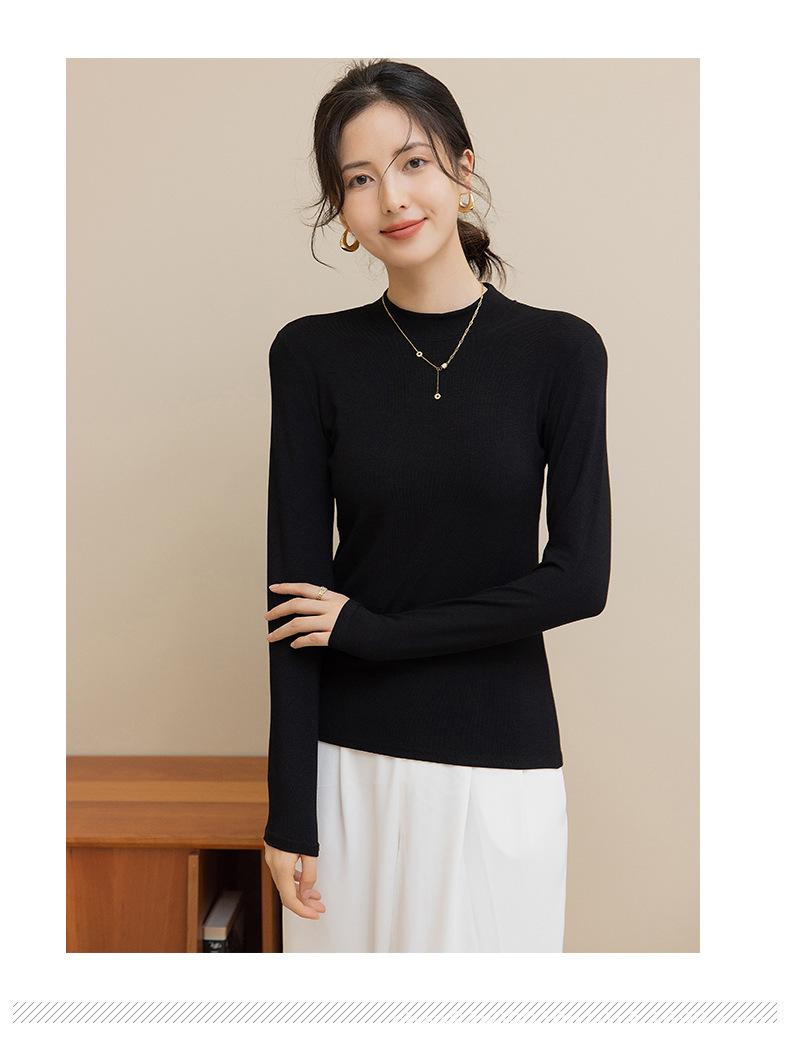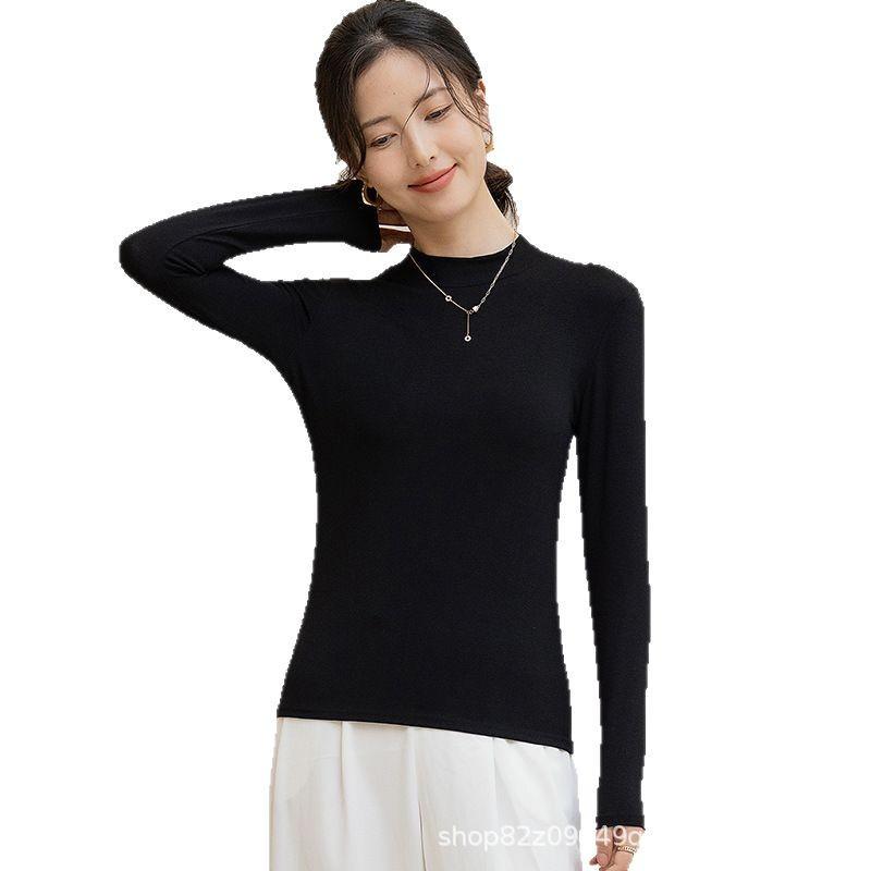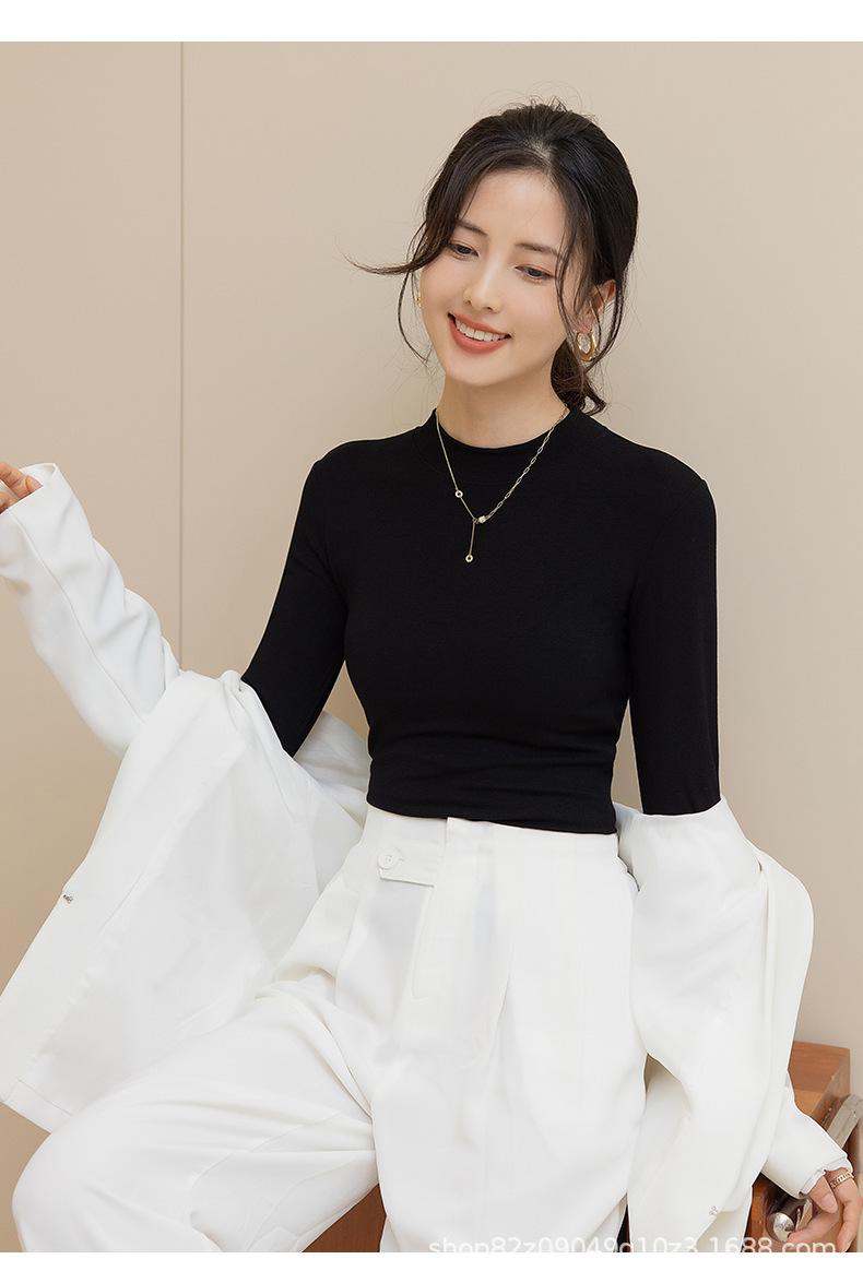 Camisa básica de cuello medio alto para mujer, estilo coreano, ajustada, de color sólido, de manga larga, cómoda y cálida, 2025