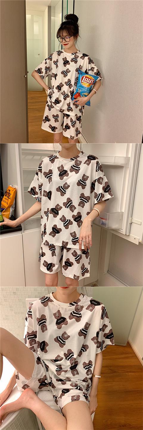 Pijamas para Mujer 2025 Nuevo Dibujo Animado Manga Corta Verano Lindo Estilo Popular Ropa de Casa Traje de Verano Se Puede Usar Afuera