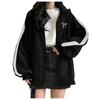 Chaqueta para mujer otoño e invierno nueva manga corta con forro polar gruesa talla grande holgada combinación de colores europea y americana suéter con cremallera venta al por mayor de fábrica