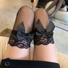 Medias de seda negras transparentes con lazo de color piel sexy estilo Mu Ruan Yujie, calcetines finos de encaje puro por encima de la rodilla para primavera y verano.