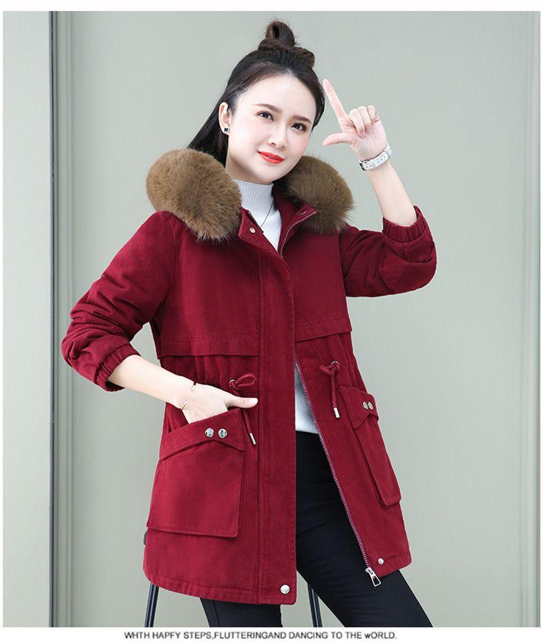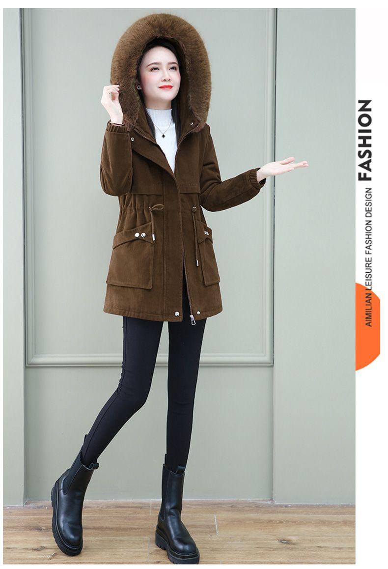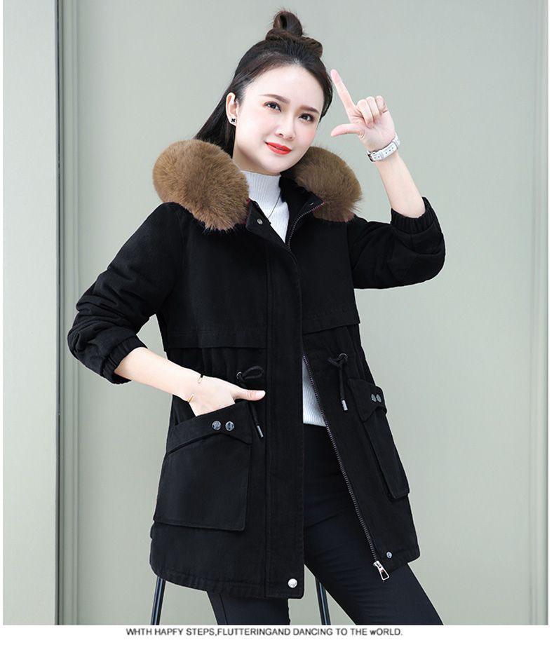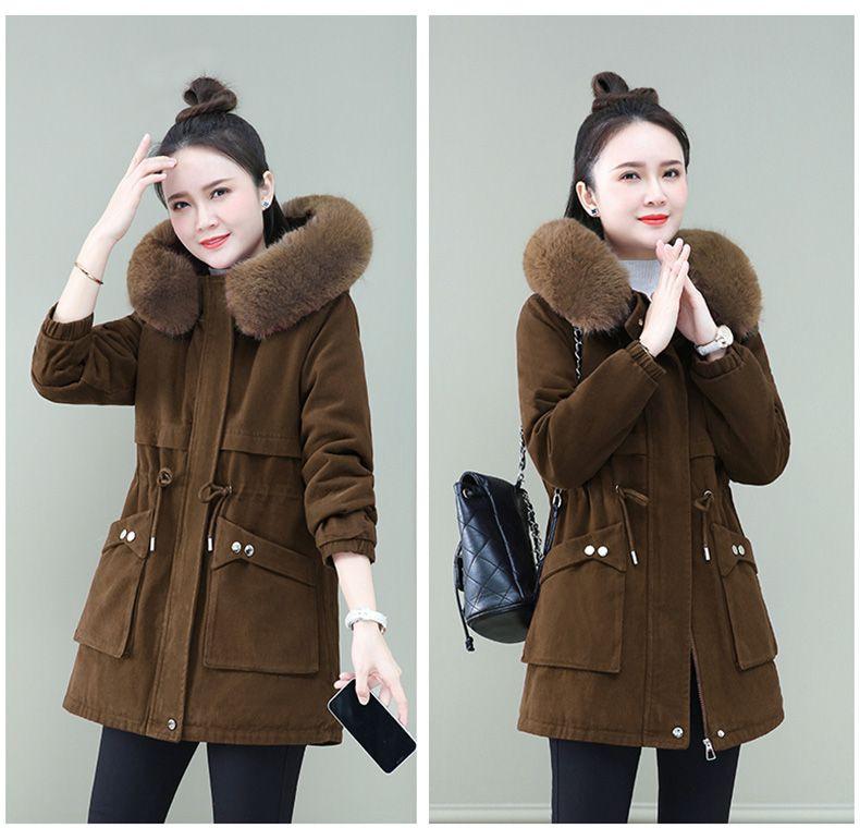 Parka larga acolchada de algodón invierno 2023 nuevo abrigo acolchado de algodón holgado con forro polar para mujer abrigo acolchado de terciopelo de cordero