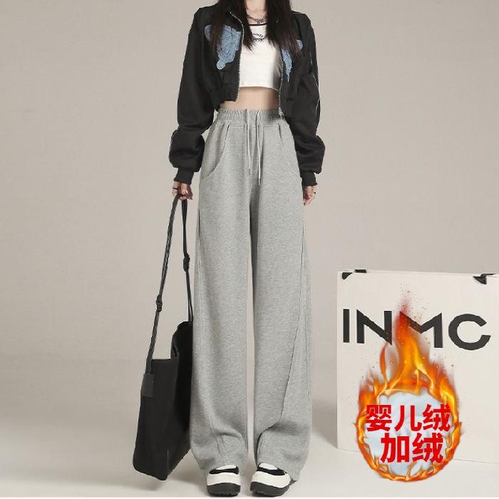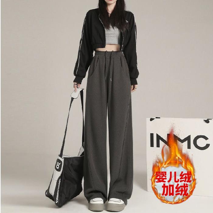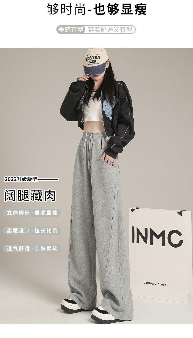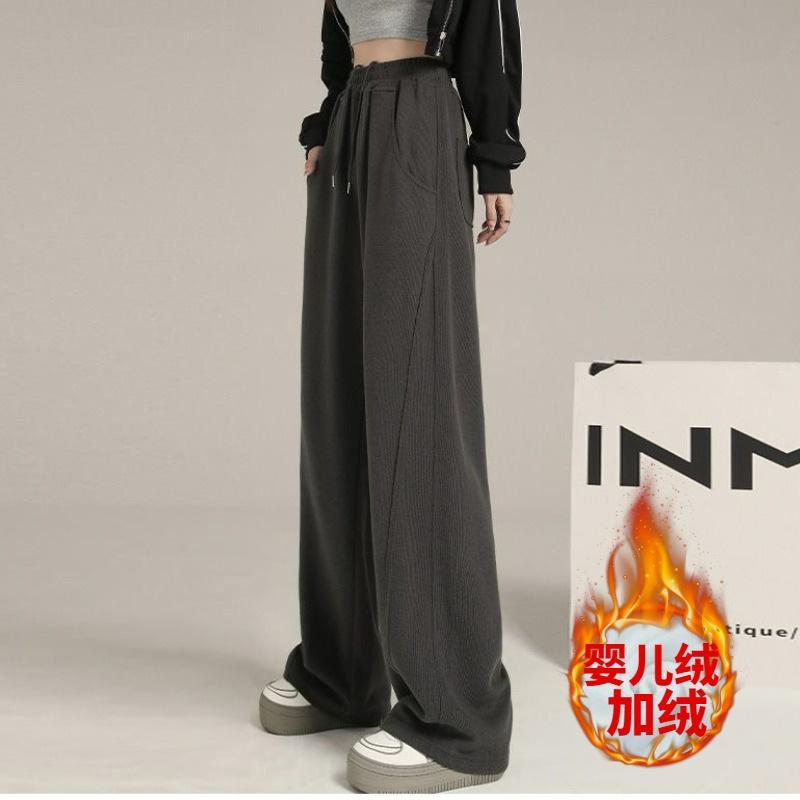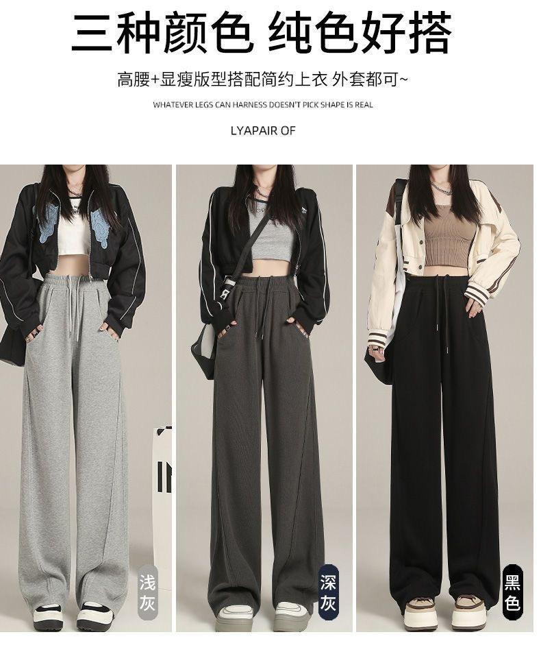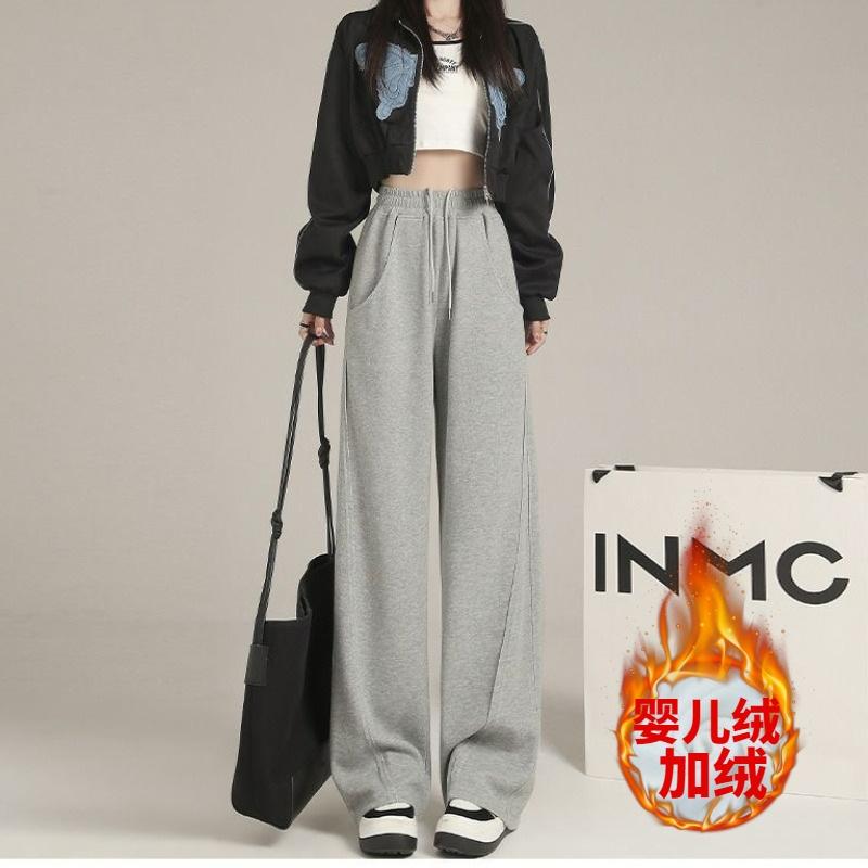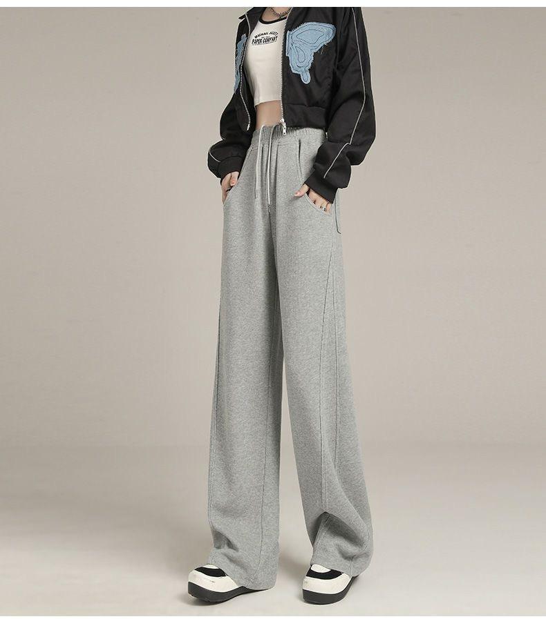Pantalones deportivos americanos grises transfronterizos para mujer, otoño e invierno nuevos, cintura alta, holgados, adelgazantes, casuales, de pierna recta, pierna ancha
