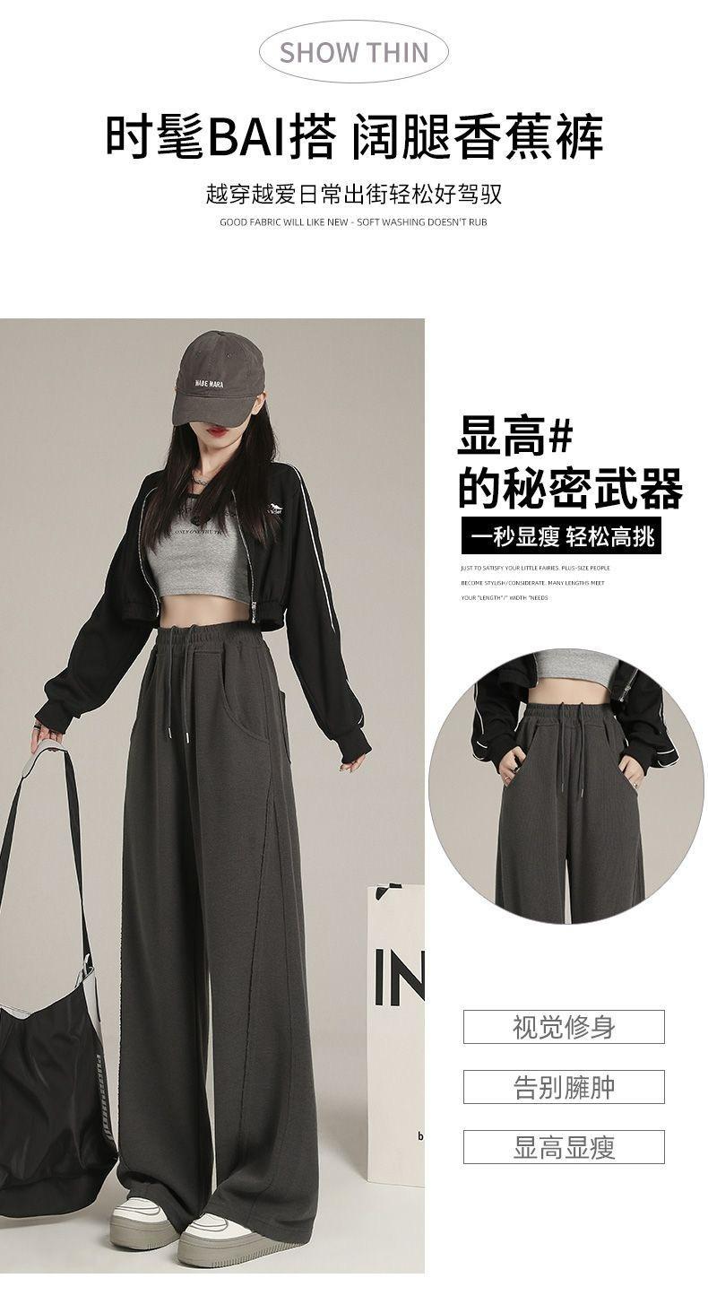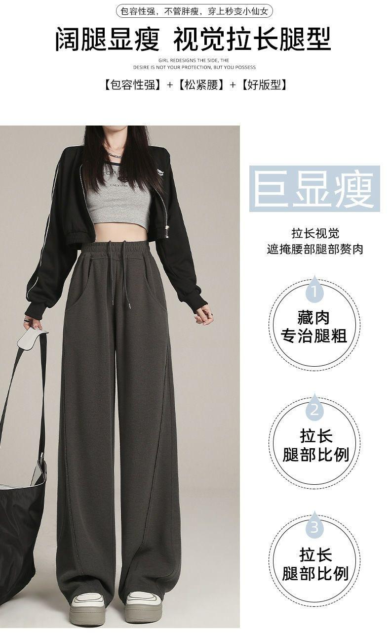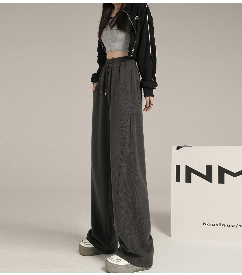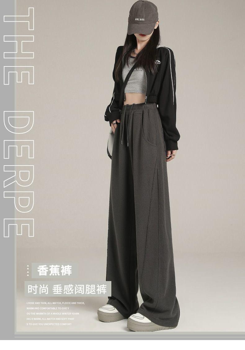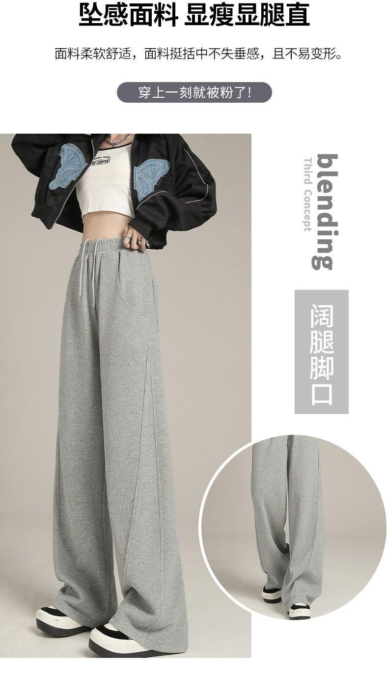 Pantalones deportivos americanos grises transfronterizos para mujer, otoño e invierno nuevos, cintura alta, holgados, adelgazantes, casuales, de pierna recta, pierna ancha