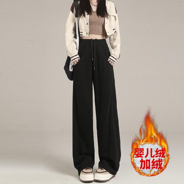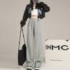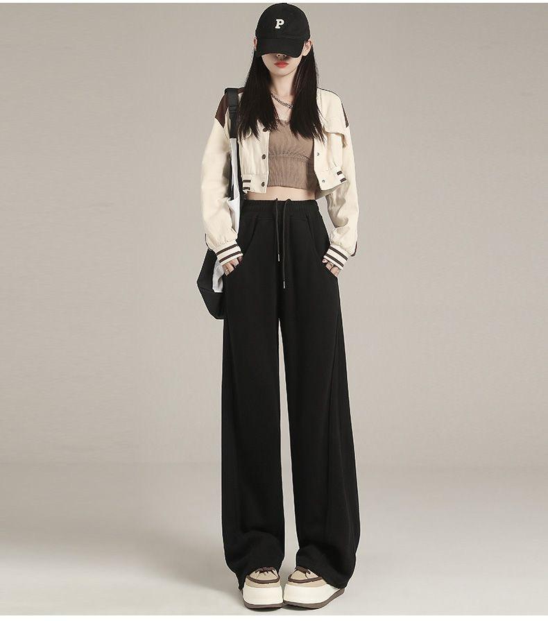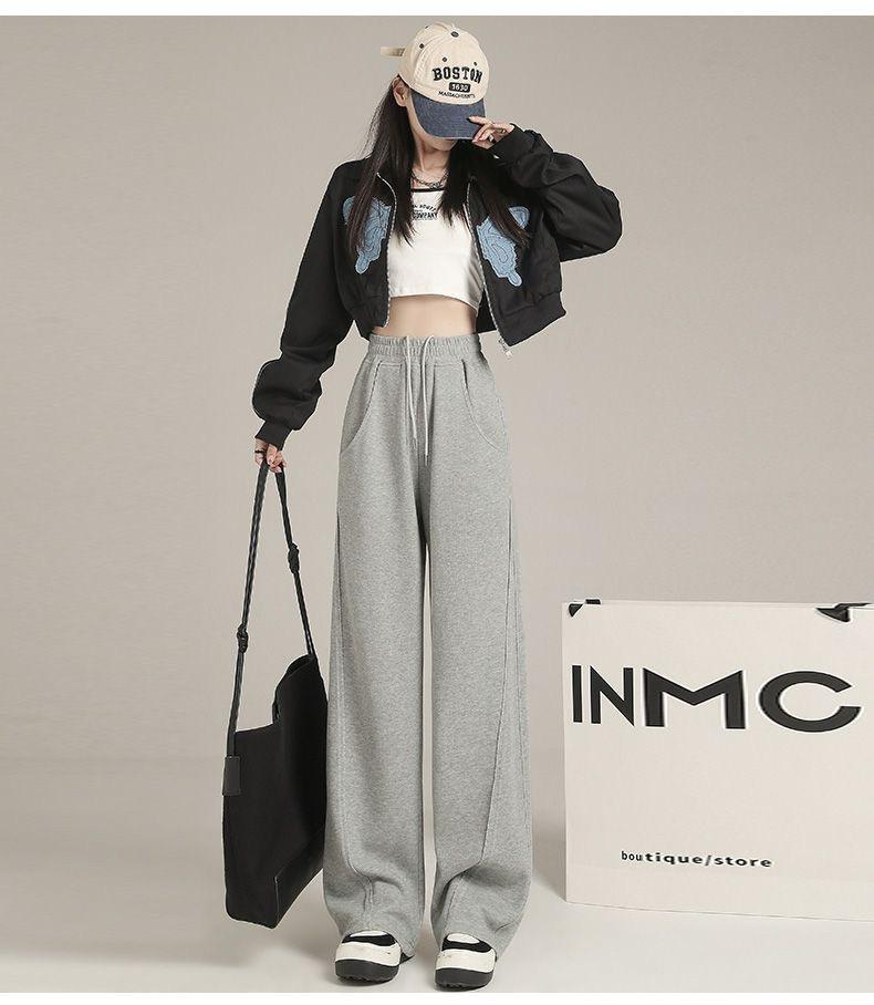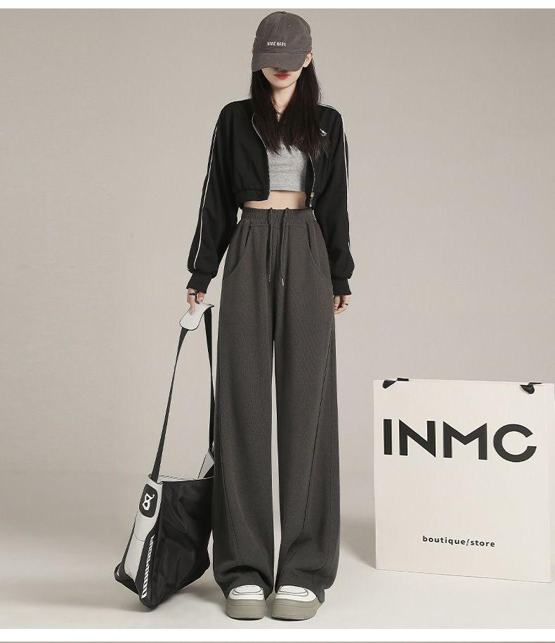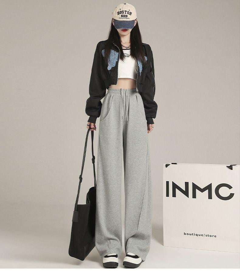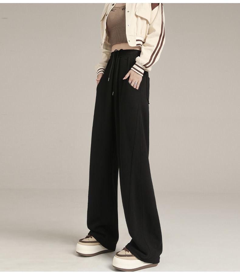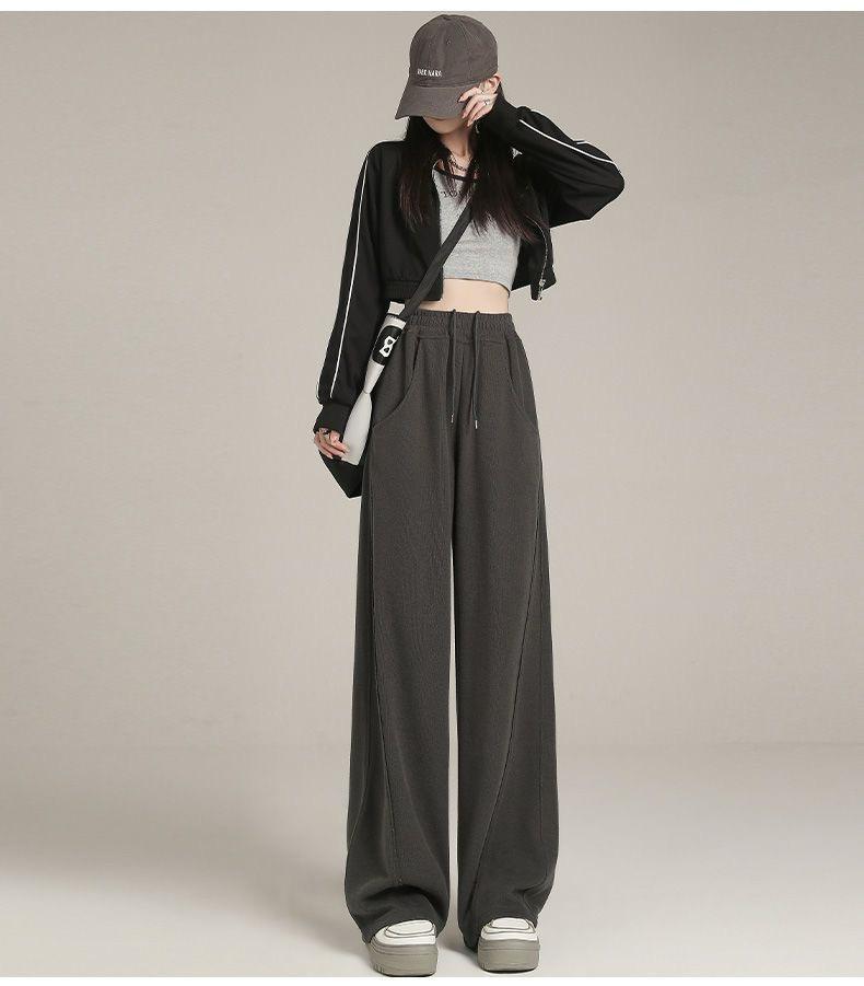 Pantalones deportivos americanos grises transfronterizos para mujer, otoño e invierno nuevos, cintura alta, holgados, adelgazantes, casuales, de pierna recta, pierna ancha