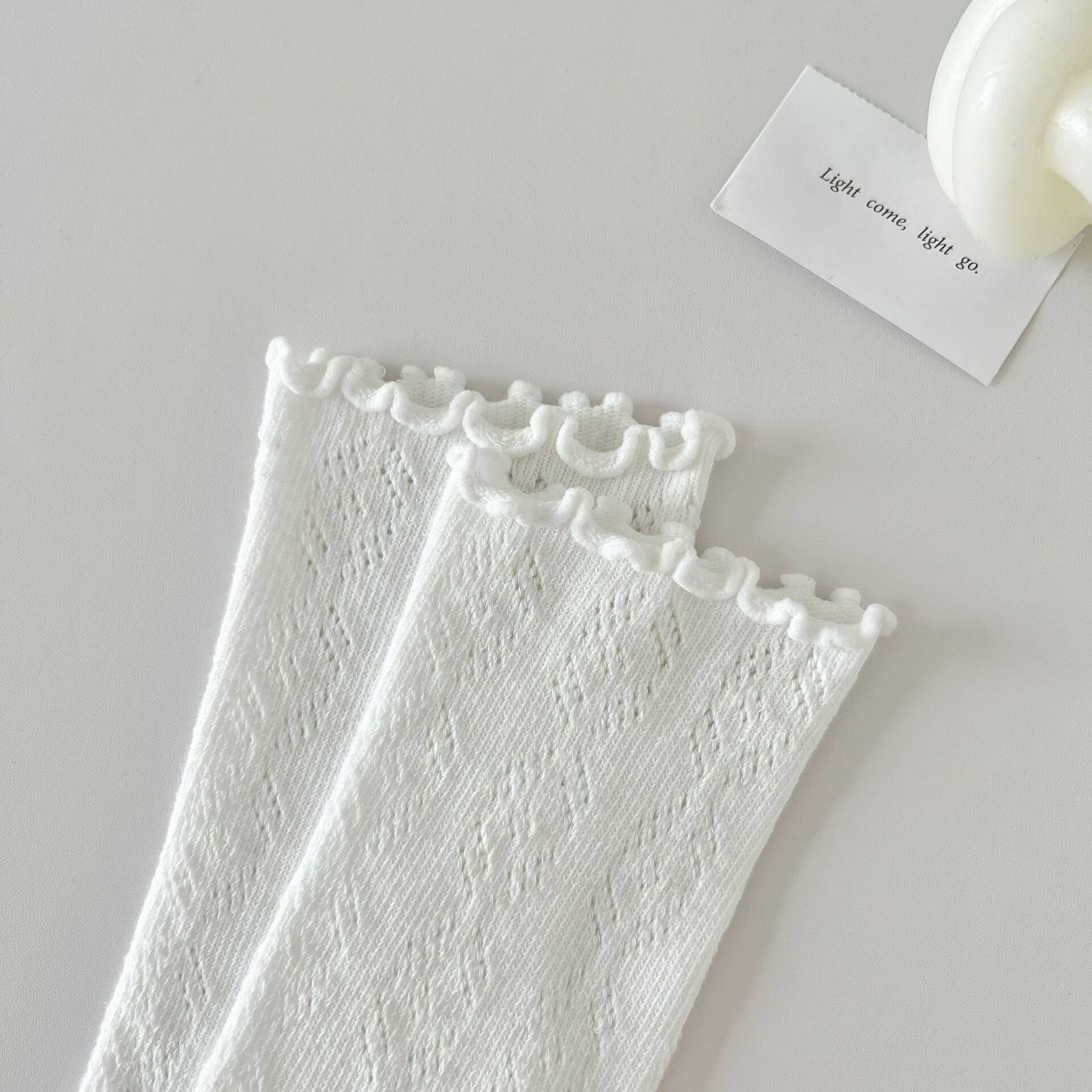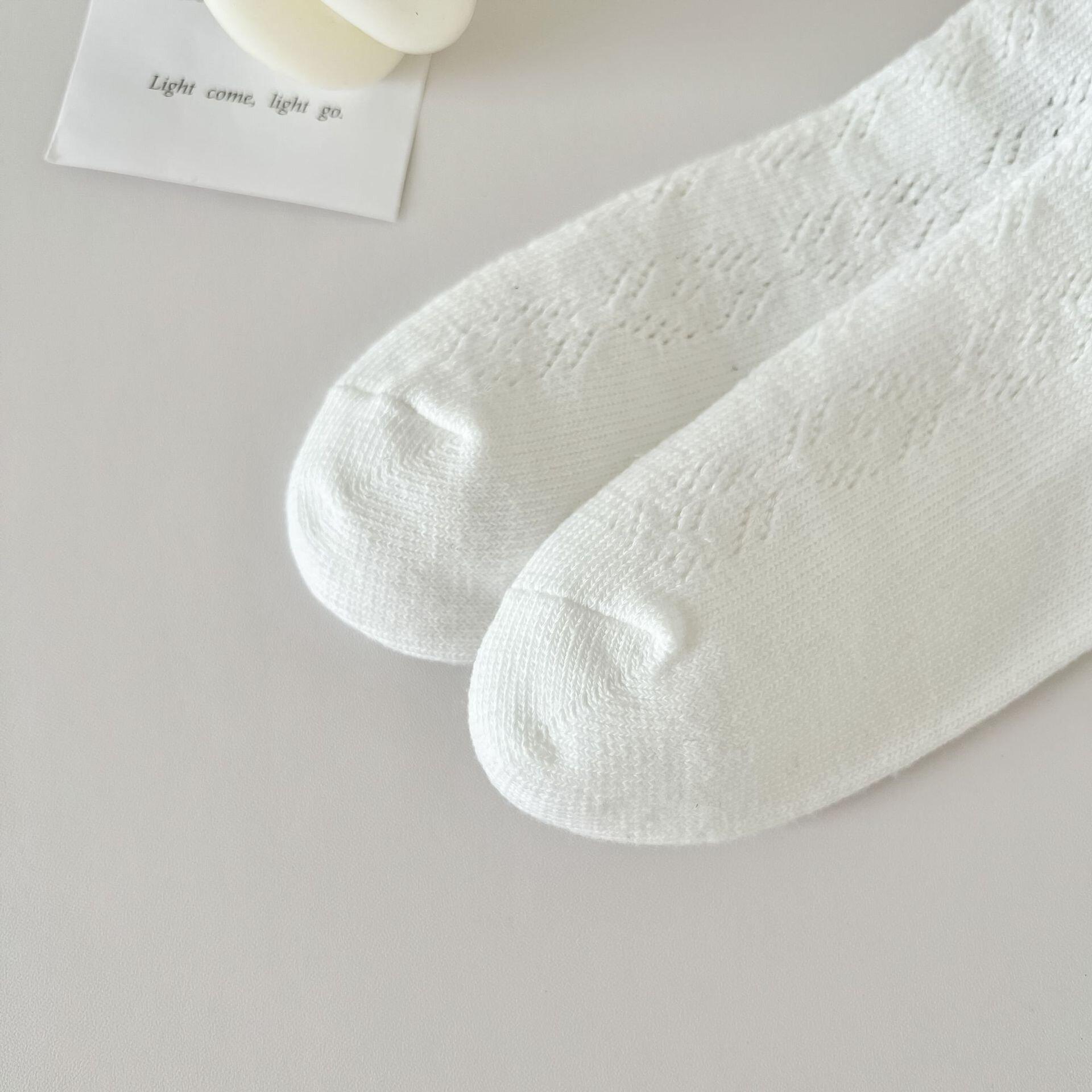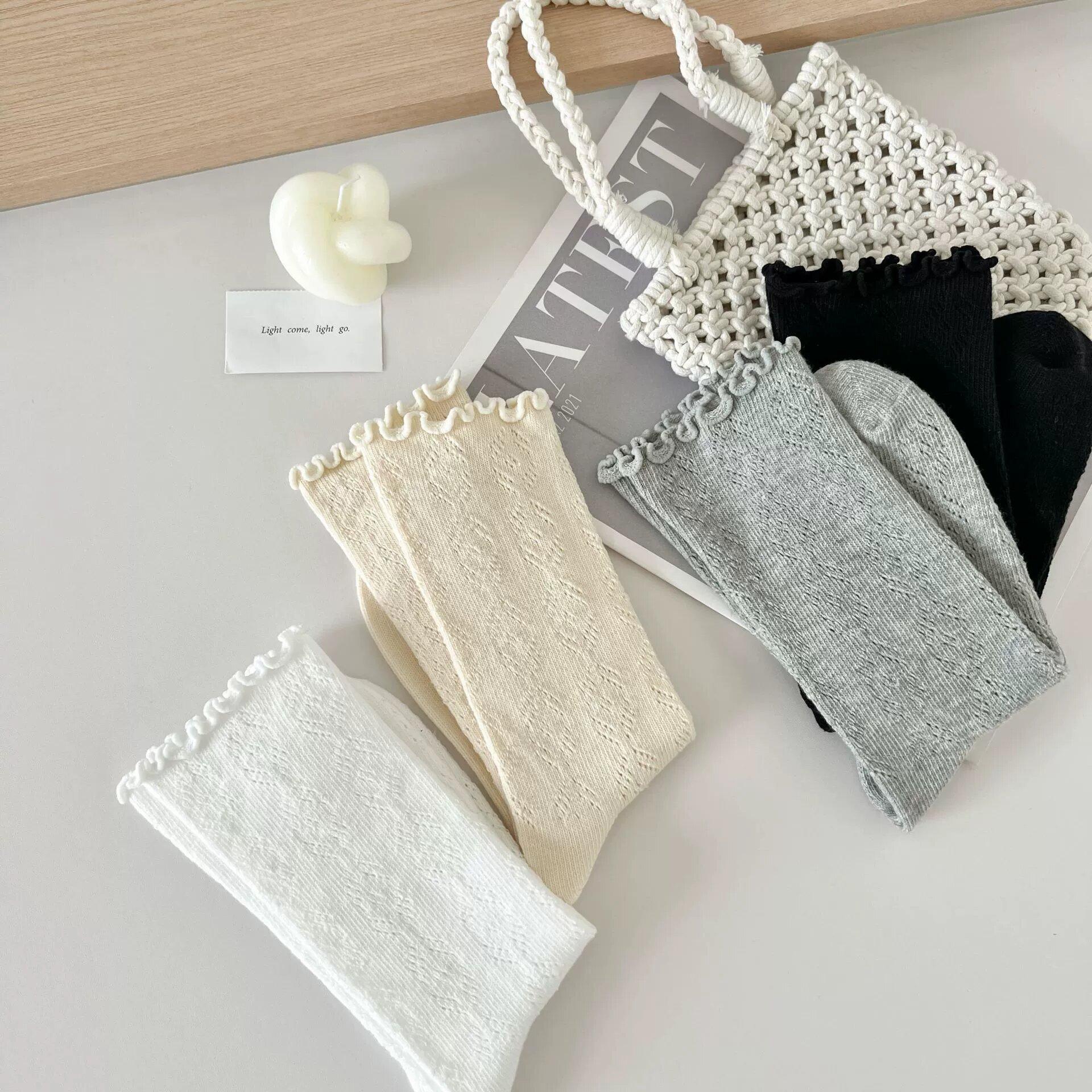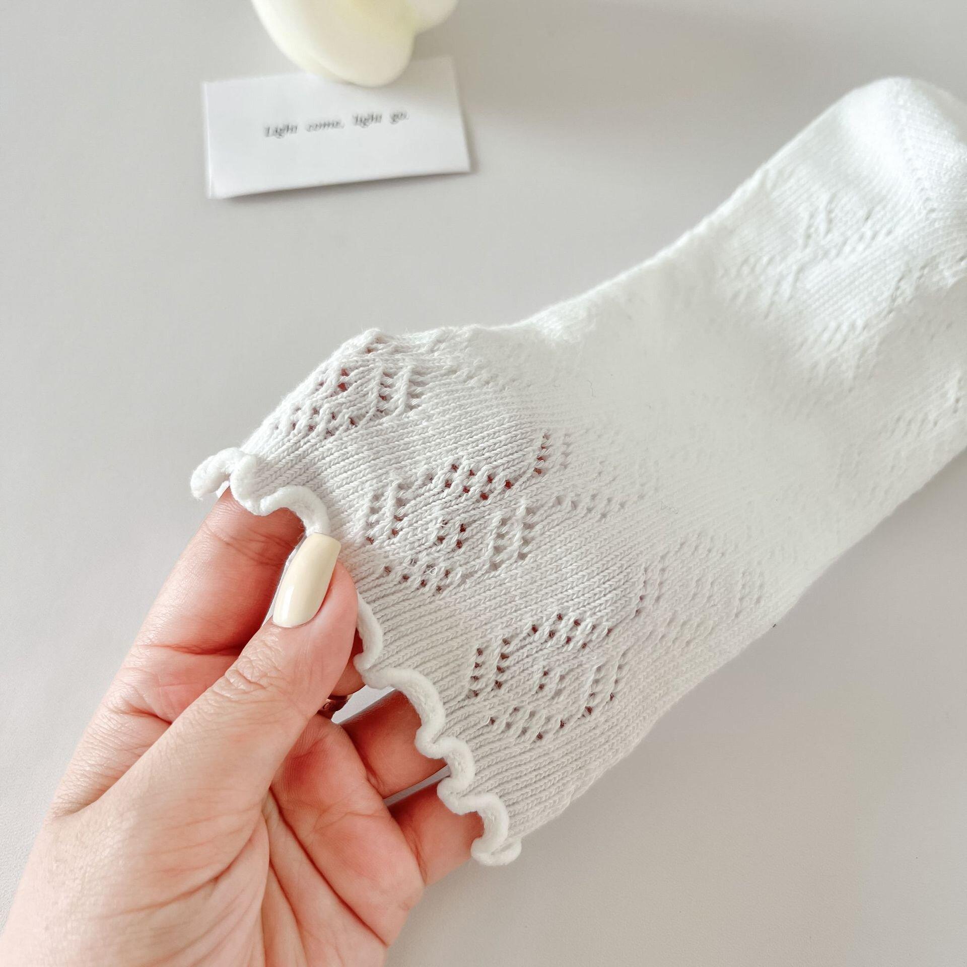 Calcetines de malla calados de verano para mujer, de encaje, finos, transpirables, combinables, con orejas, sencillos y dulces, de tubo medio.