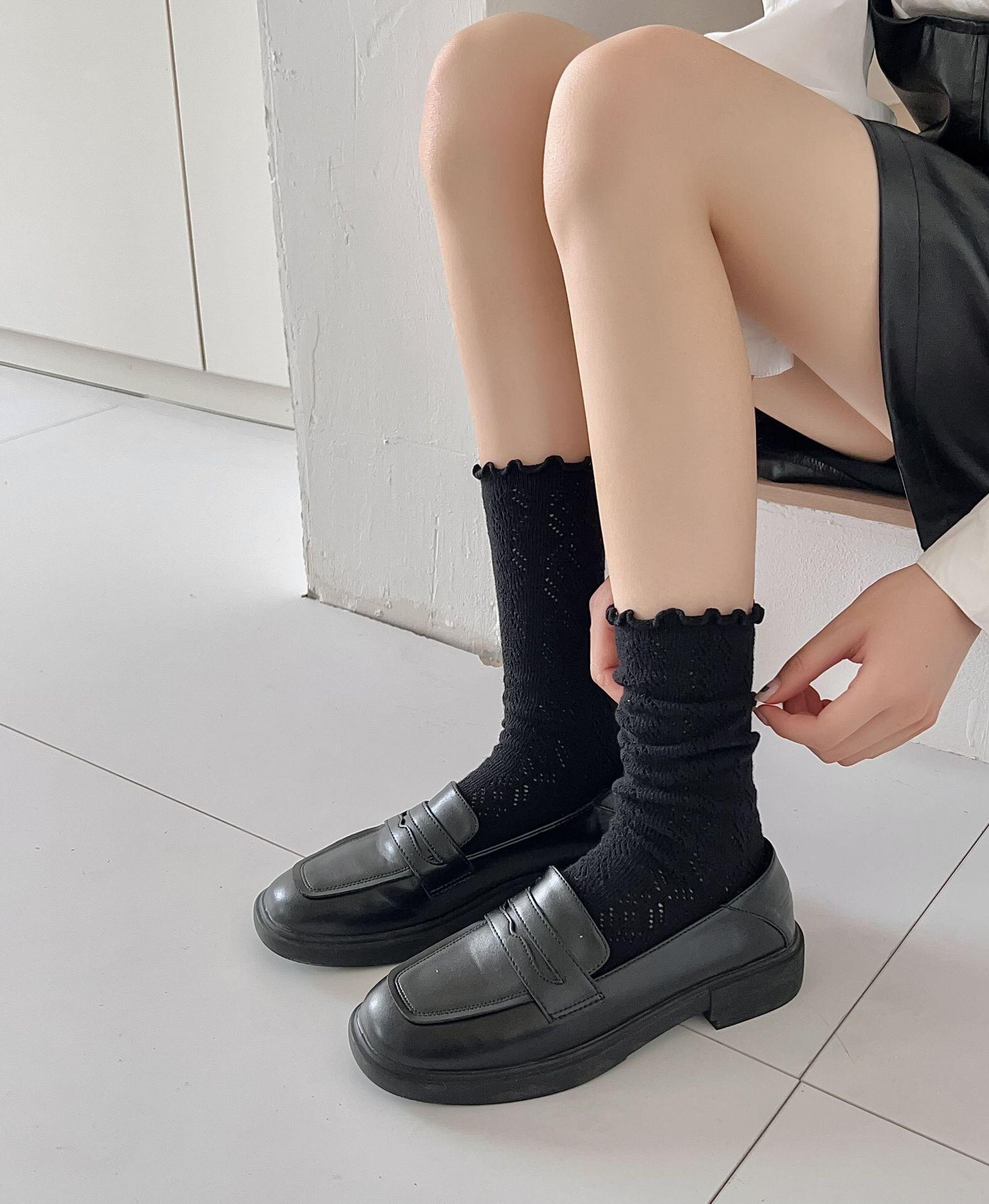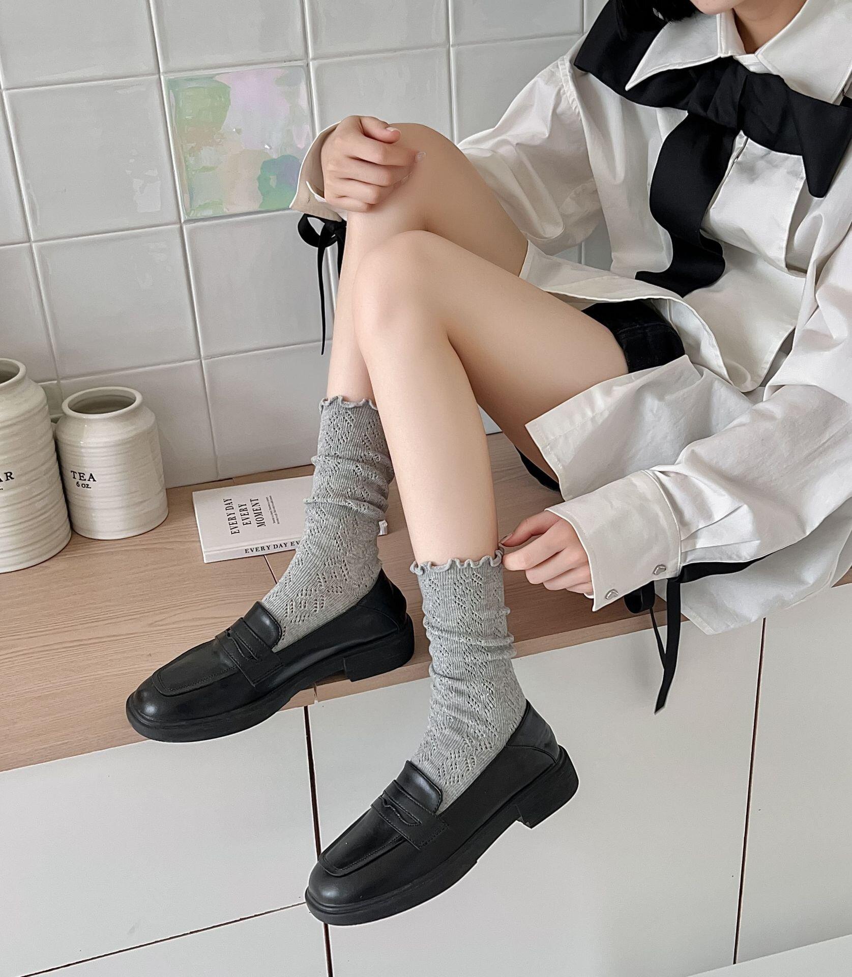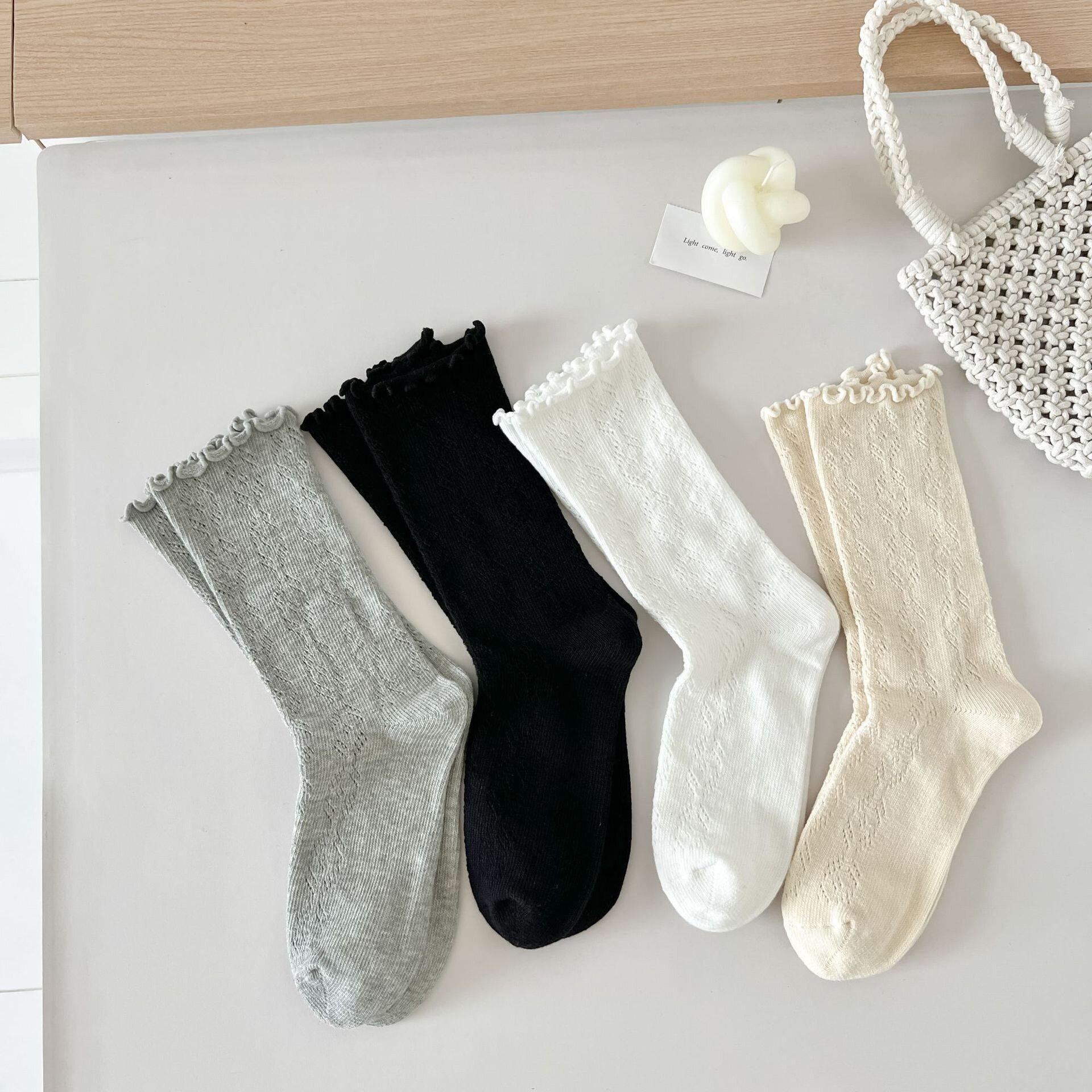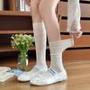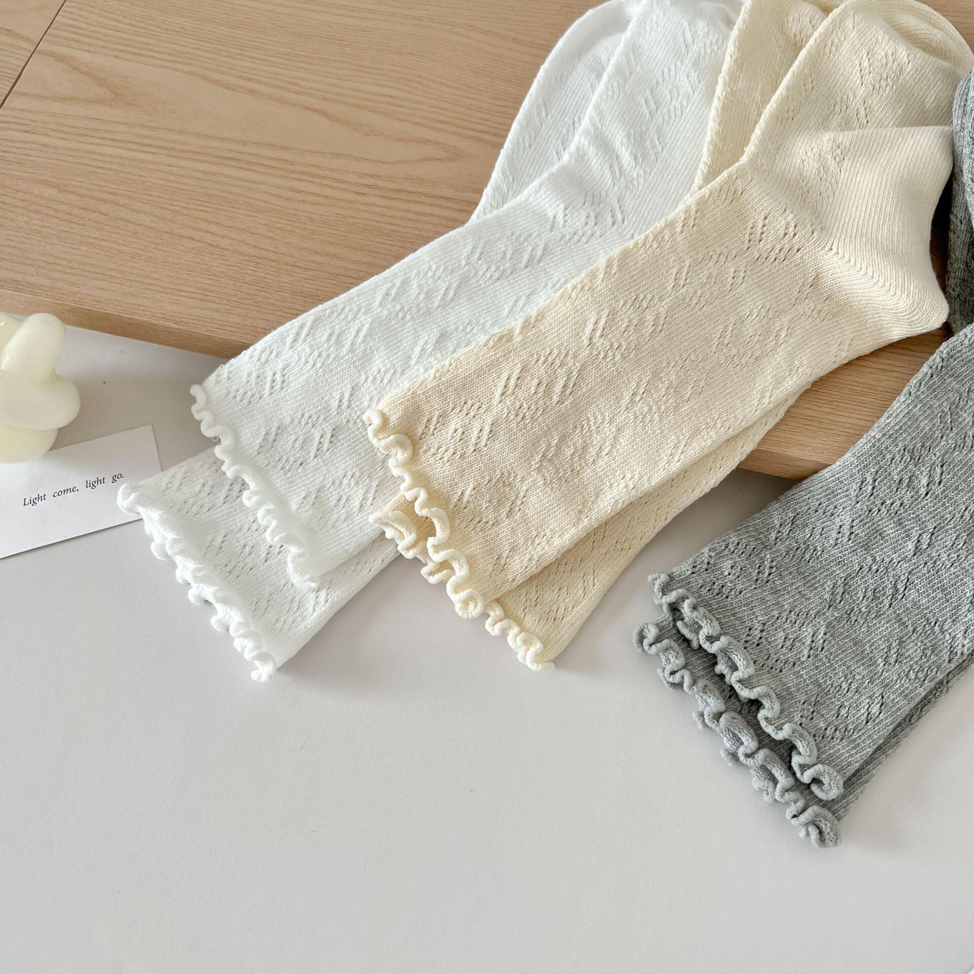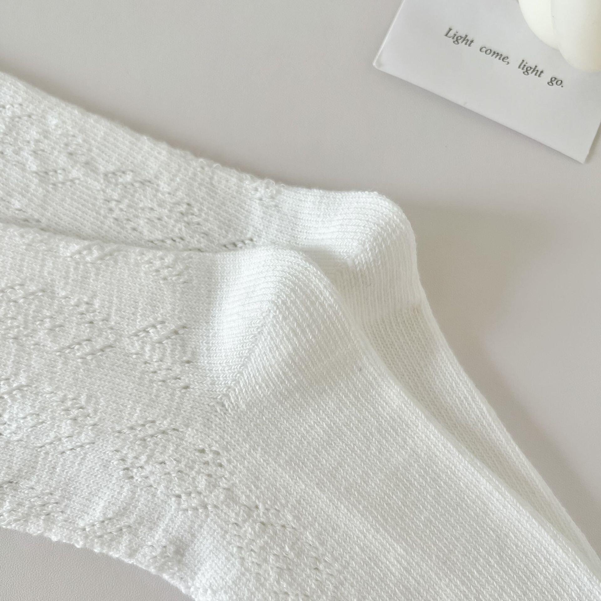 Calcetines de malla calados de verano para mujer, de encaje, finos, transpirables, combinables, con orejas, sencillos y dulces, de tubo medio.