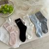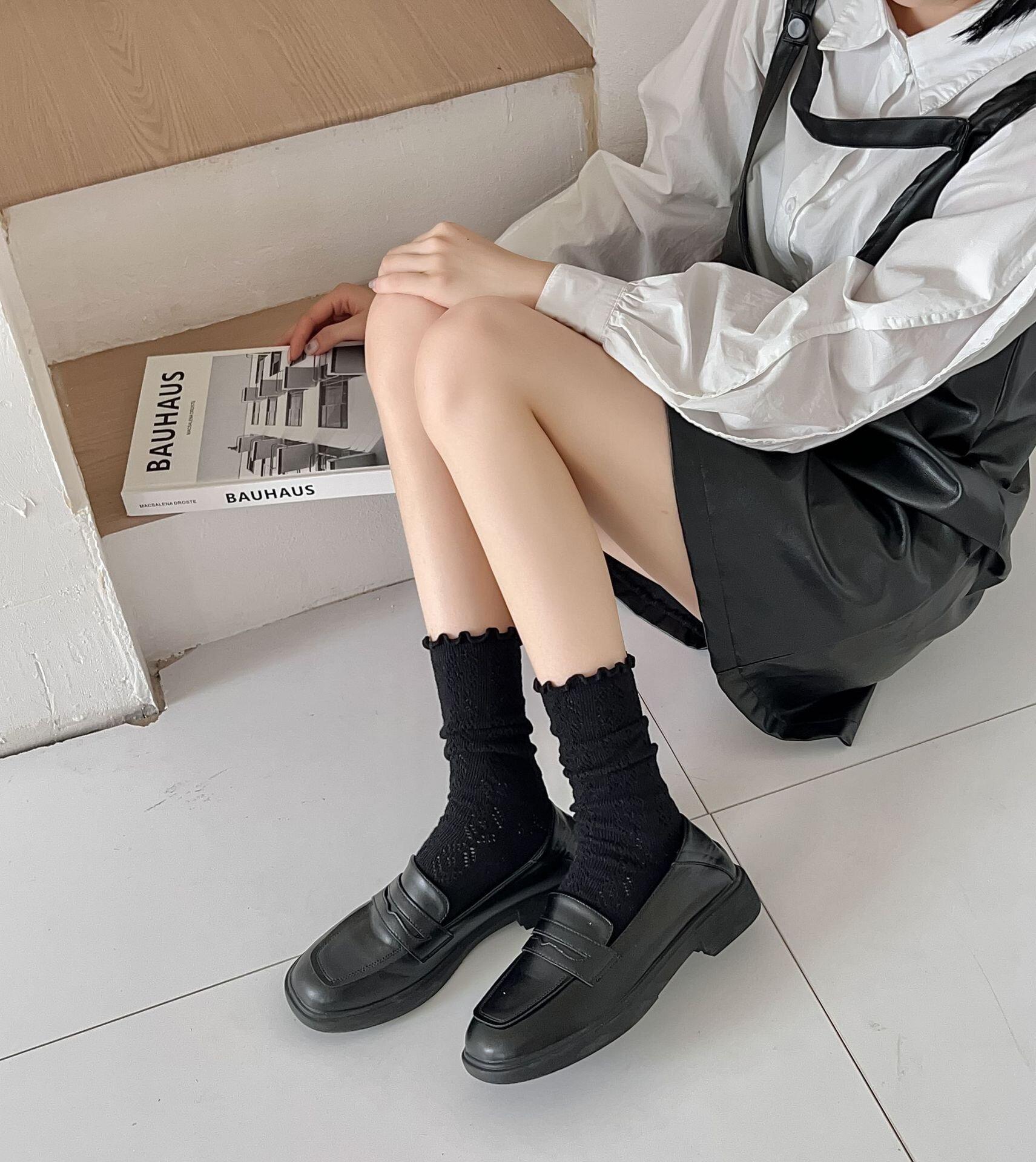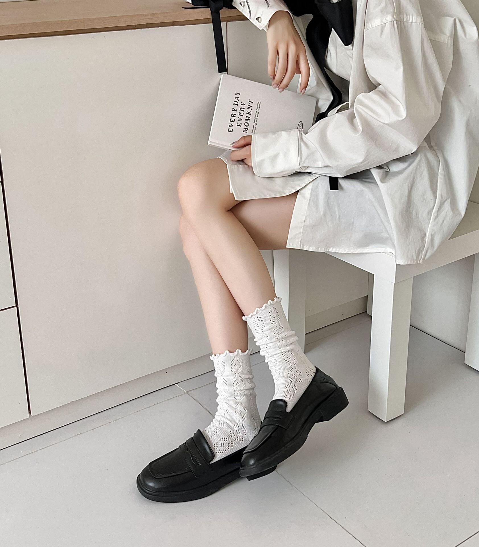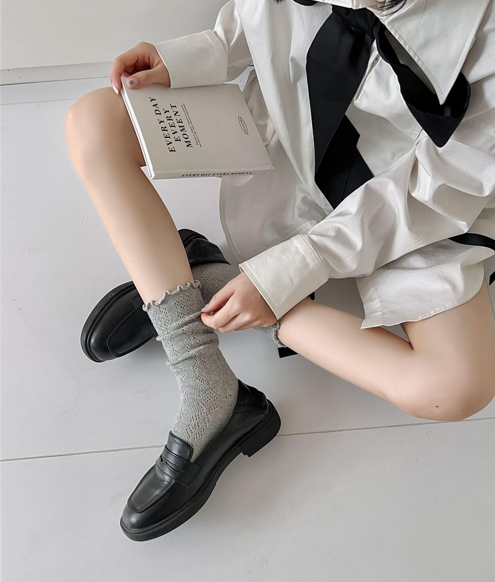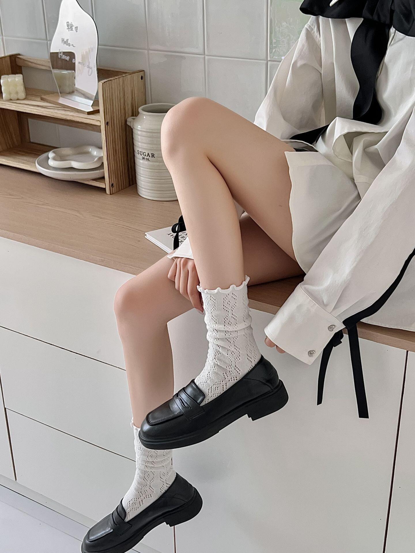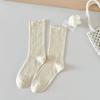 Calcetines de malla calados de verano para mujer, de encaje, finos, transpirables, combinables, con orejas, sencillos y dulces, de tubo medio.