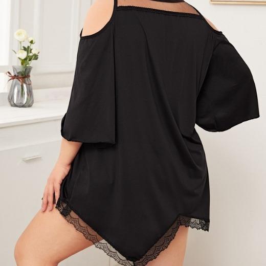 Camisón Sexy Transfronterizo Europeo y Americano Top Suelto Suave con Escote Profundo Vestido de Hombro Estilo Coreano