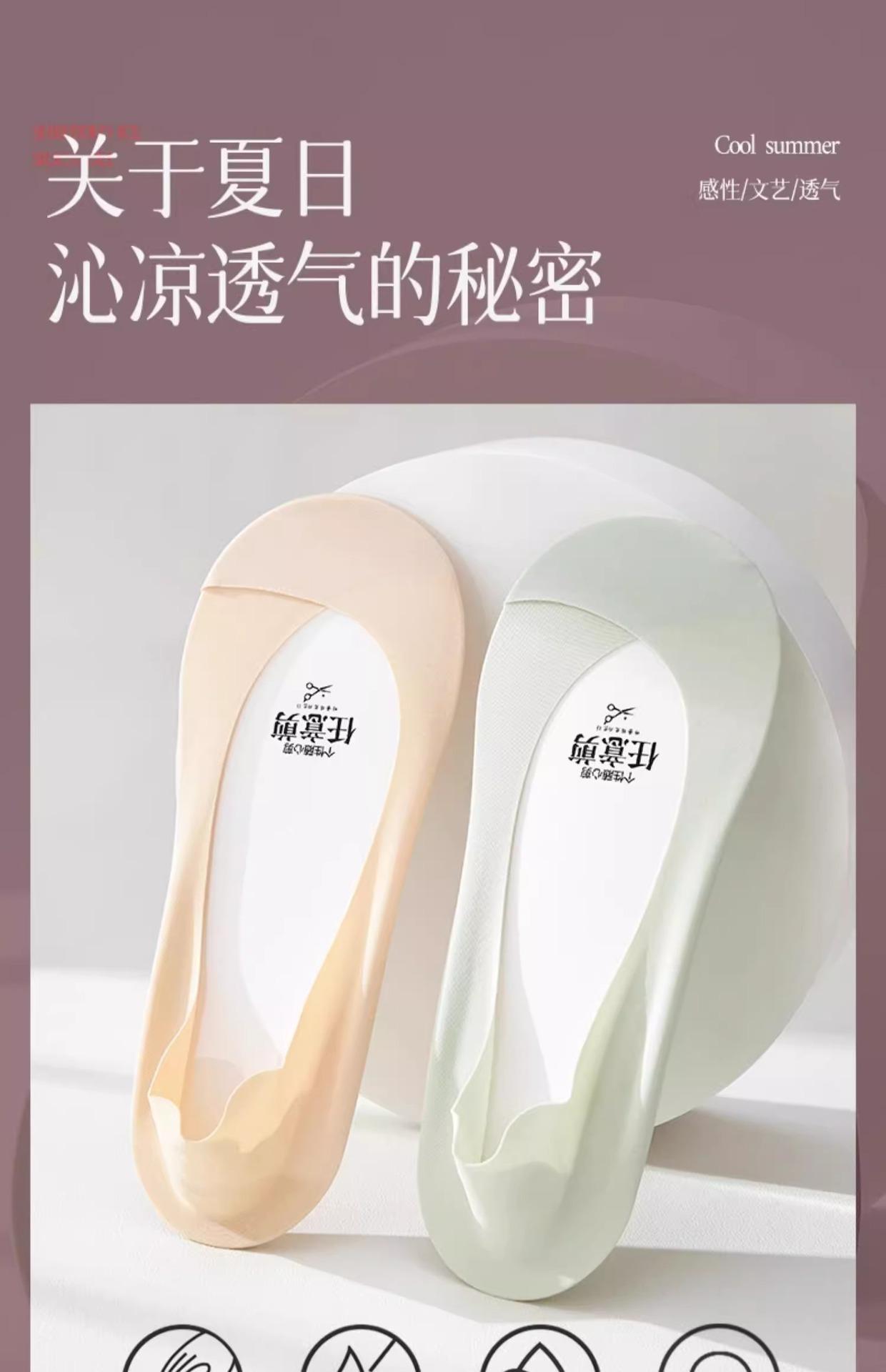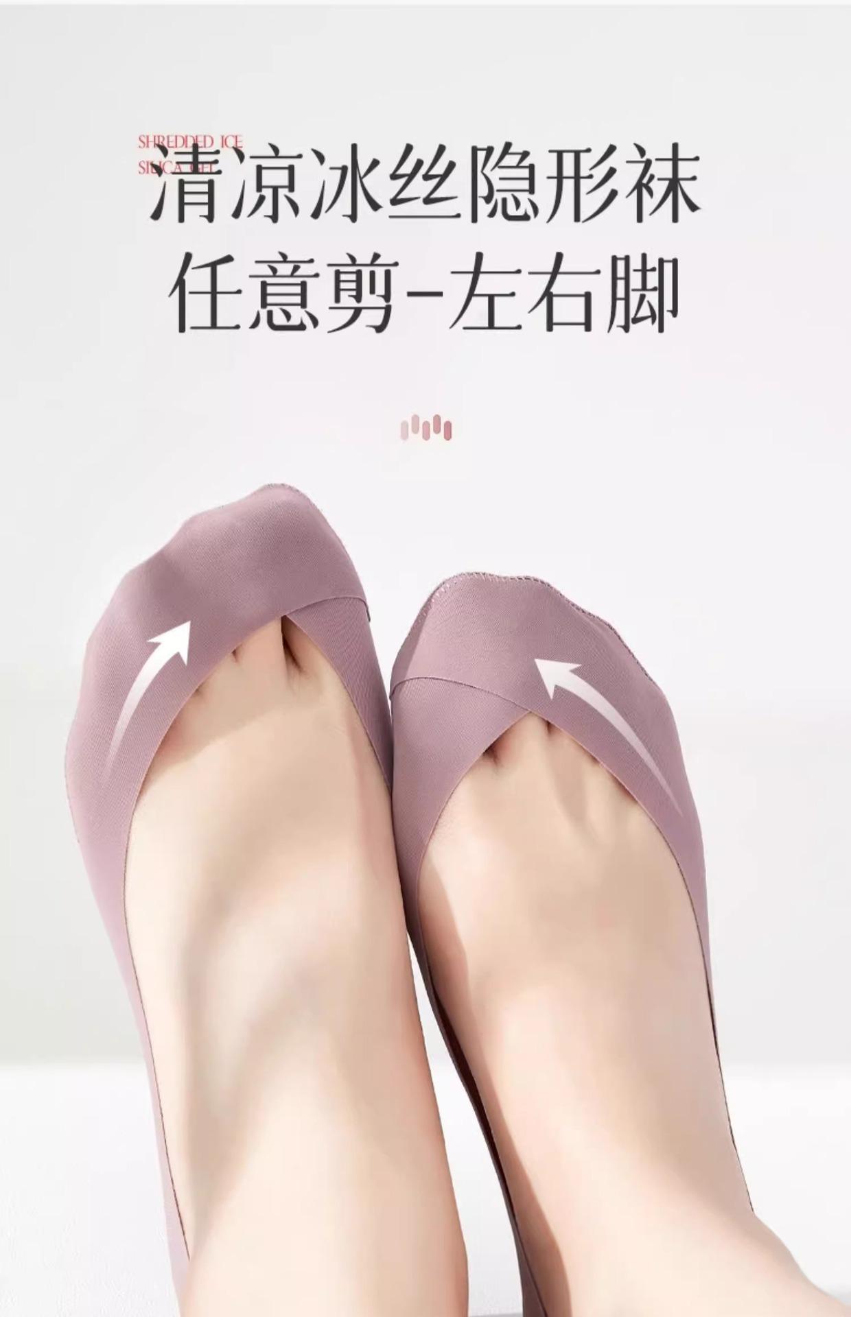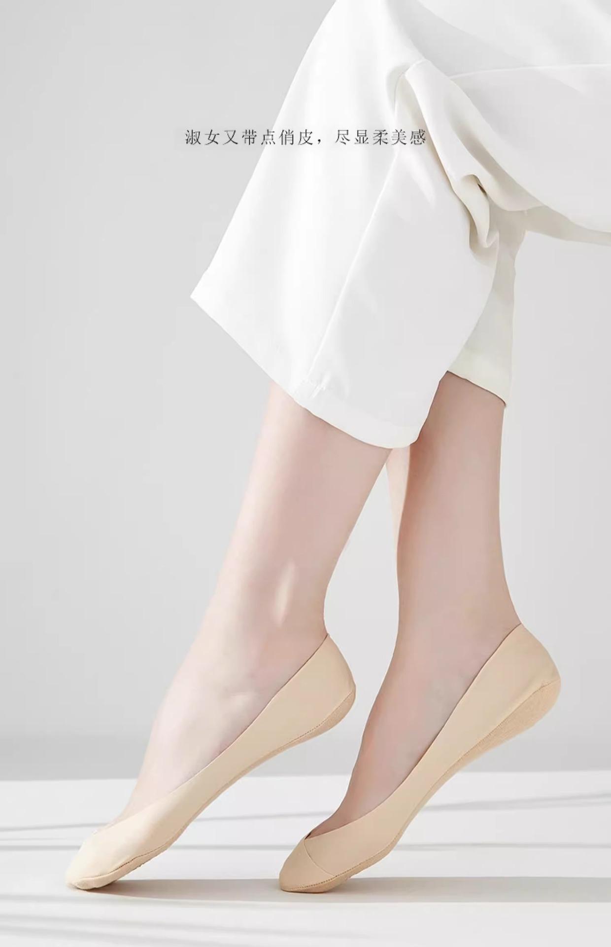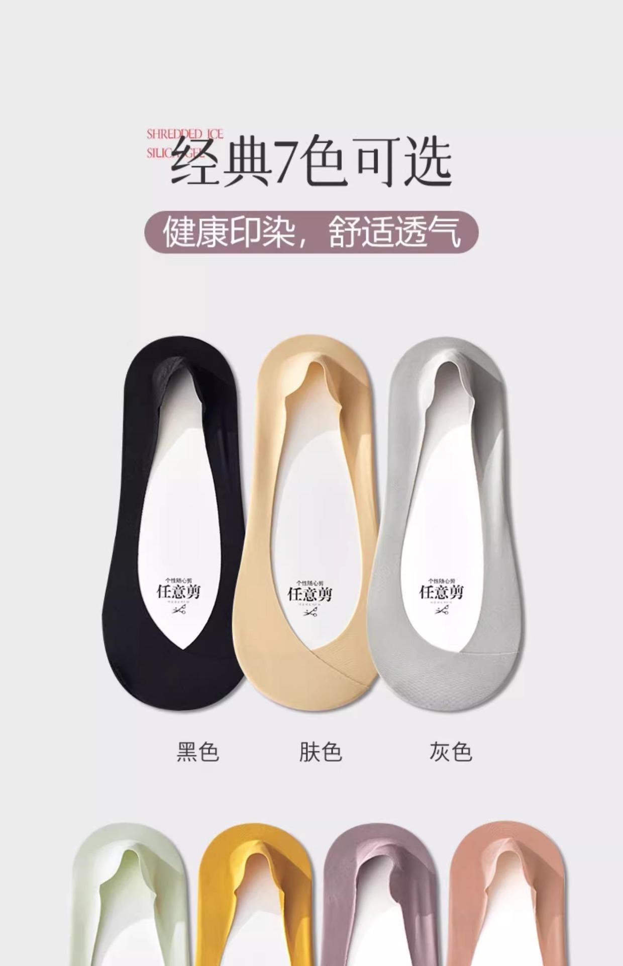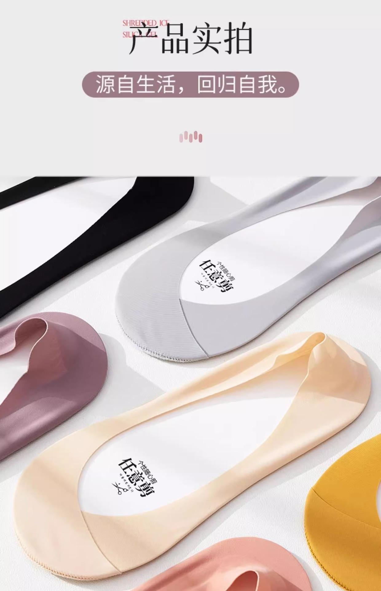 Calcetines de Seda de Hielo para Mujer Verano Silicona Antideslizante Ins Marea Calcetines Invisibles Fondo de Algodón Calcetines para Tacones Altos Boca Baja Corte Bajo Calcetines de Barco