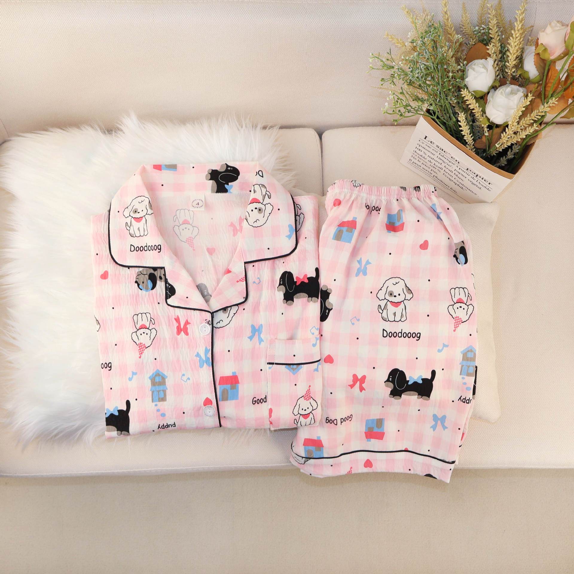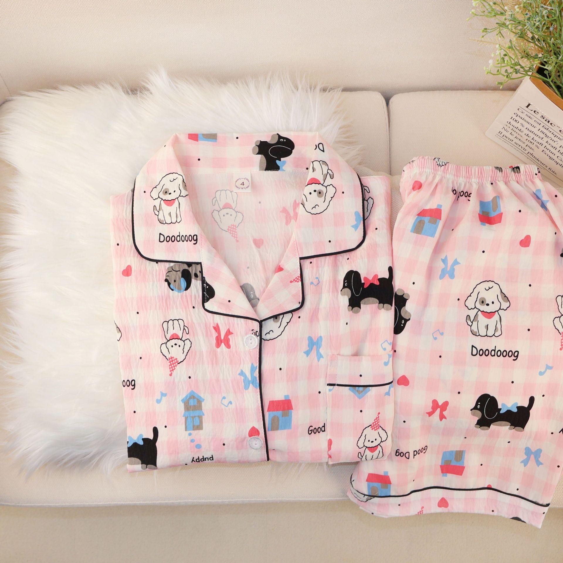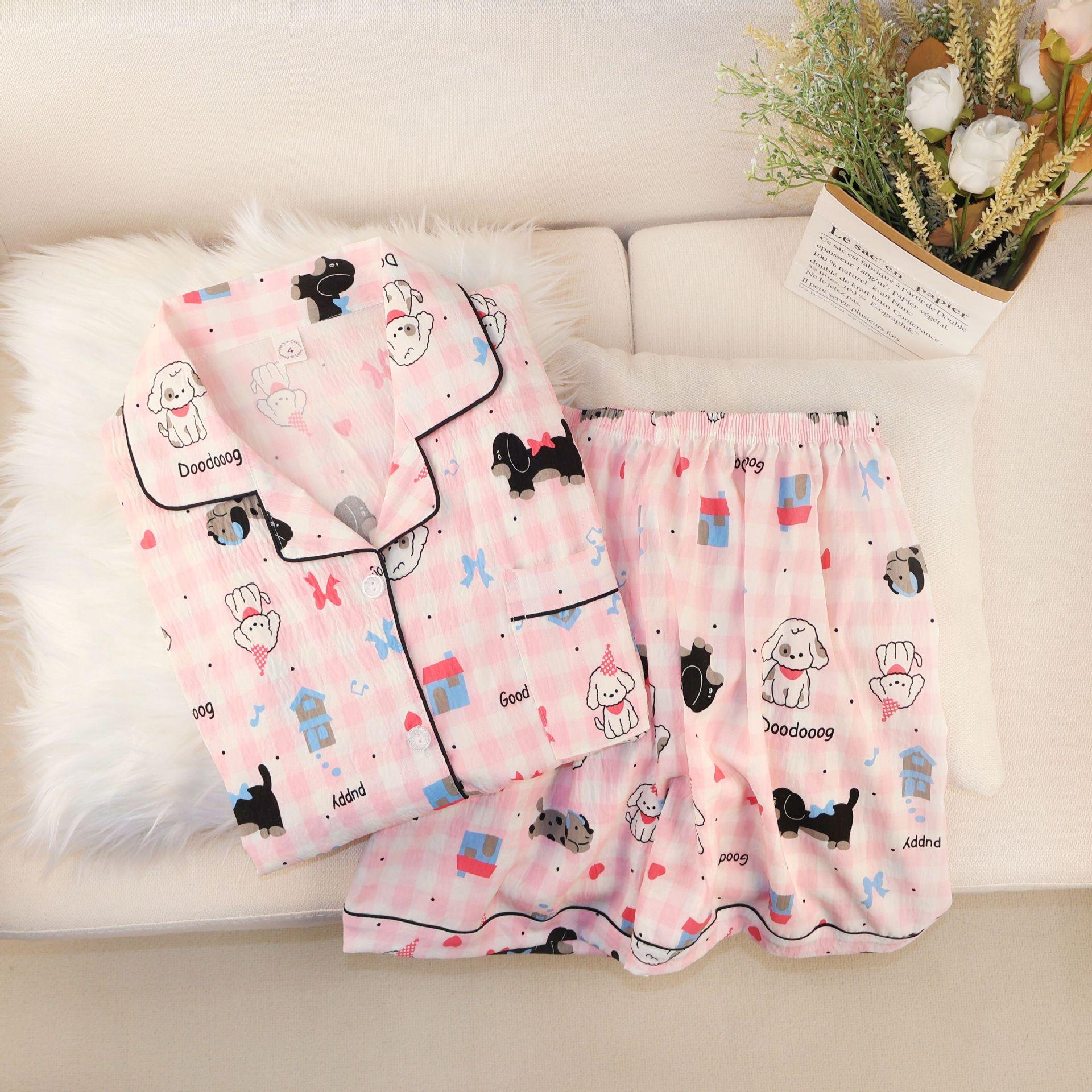 Pijama corto de algodón con estampado de nubes para mujer, ropa de dormir de manga corta, para el hogar, para exteriores, novedad de verano