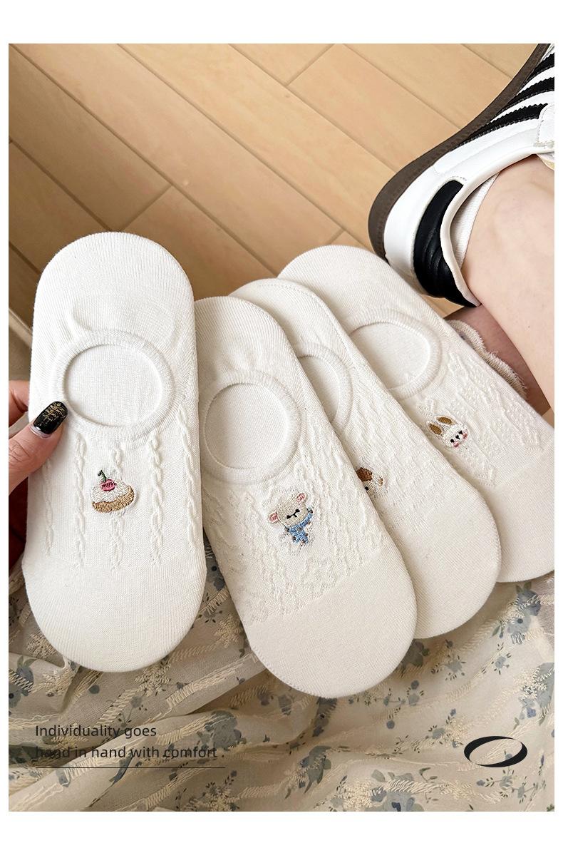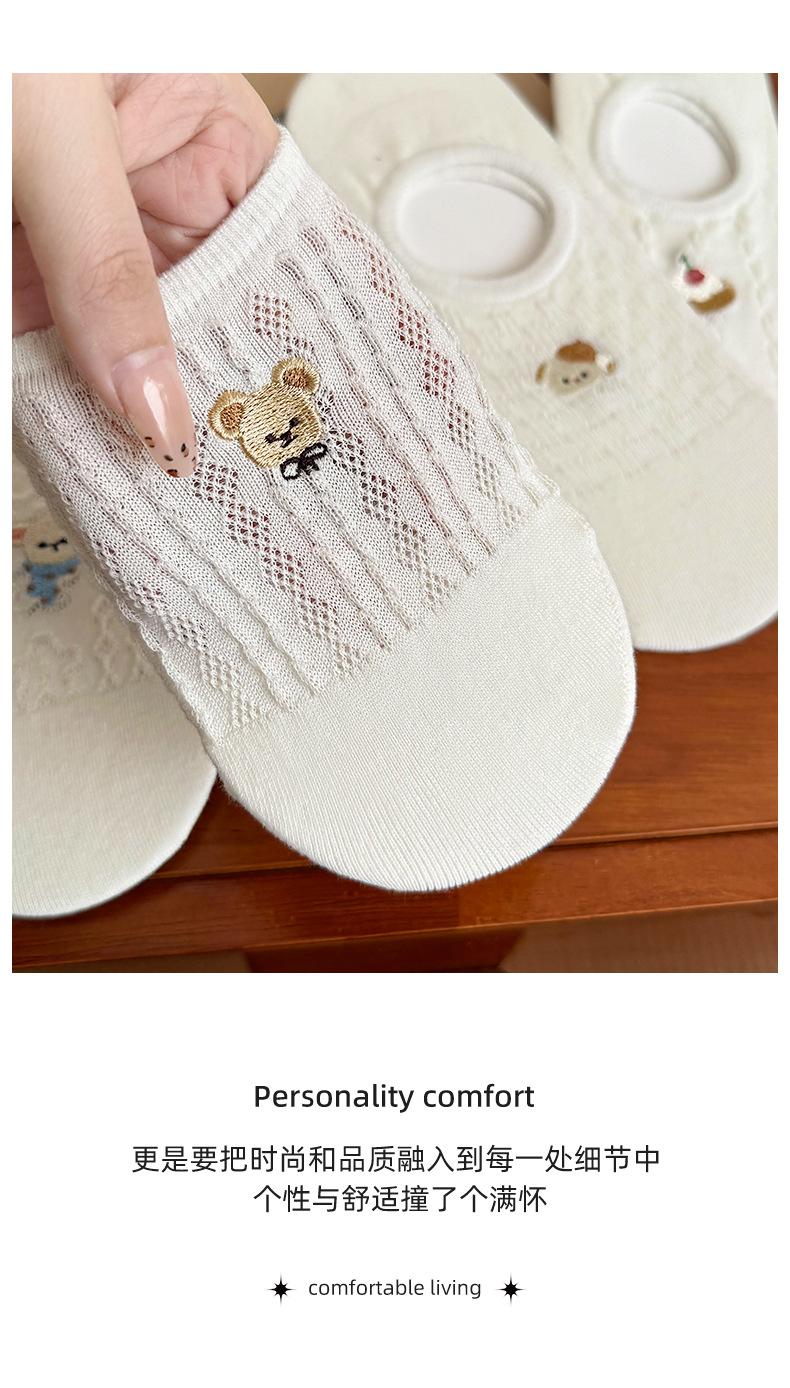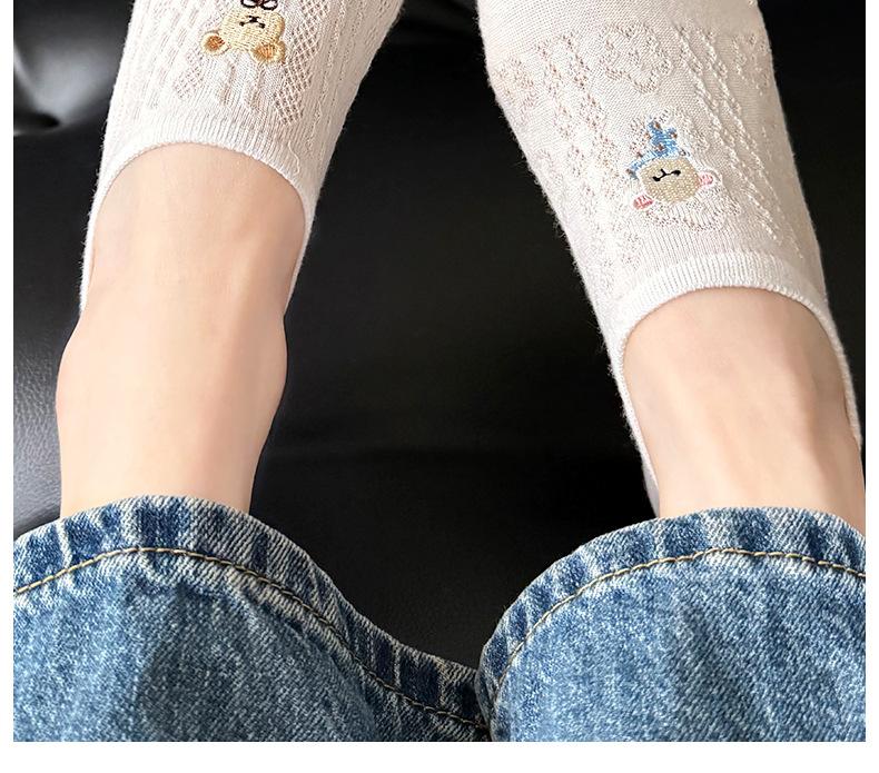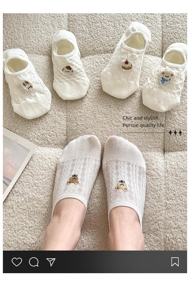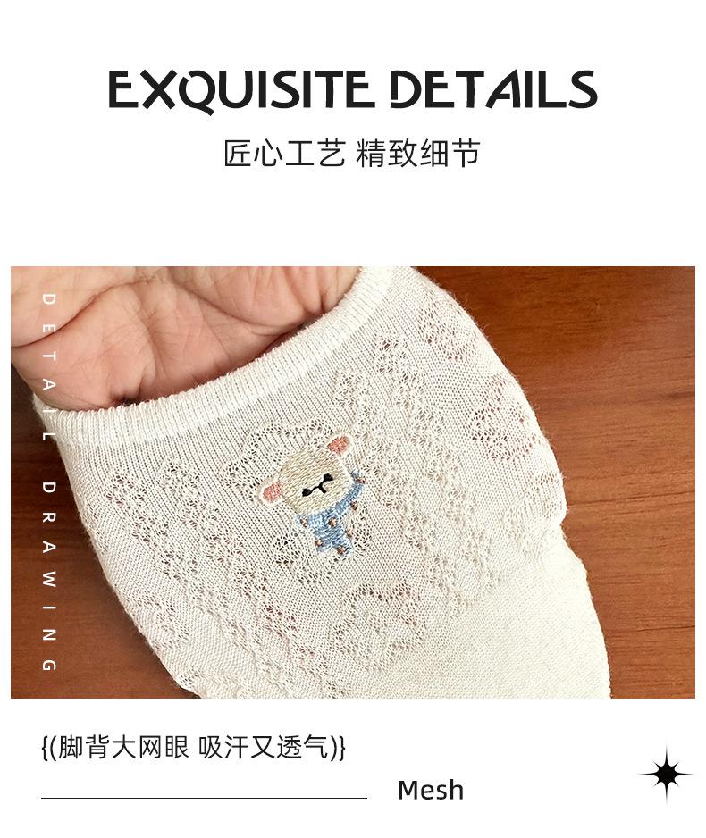 Calcetines cortos de malla transpirable para mujer, de primavera y verano, estilo universitario, blancos, náuticos, invisibles, japoneses, con bonitos bordados.