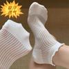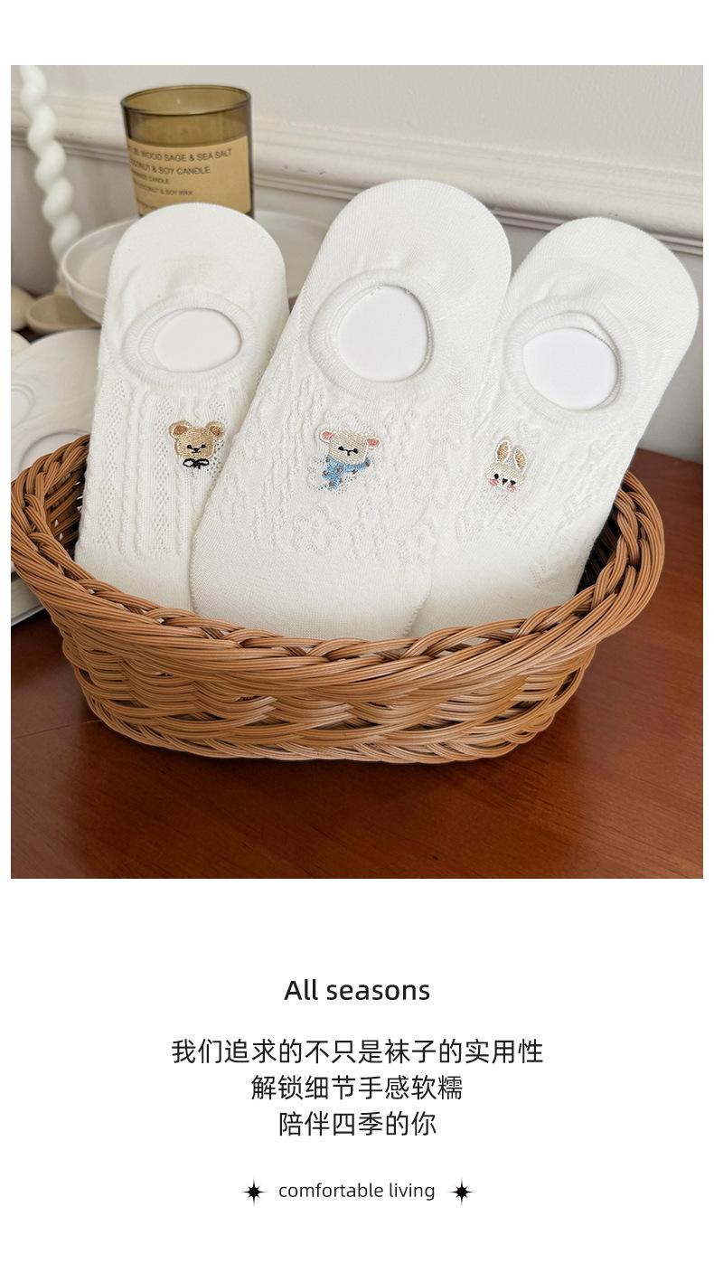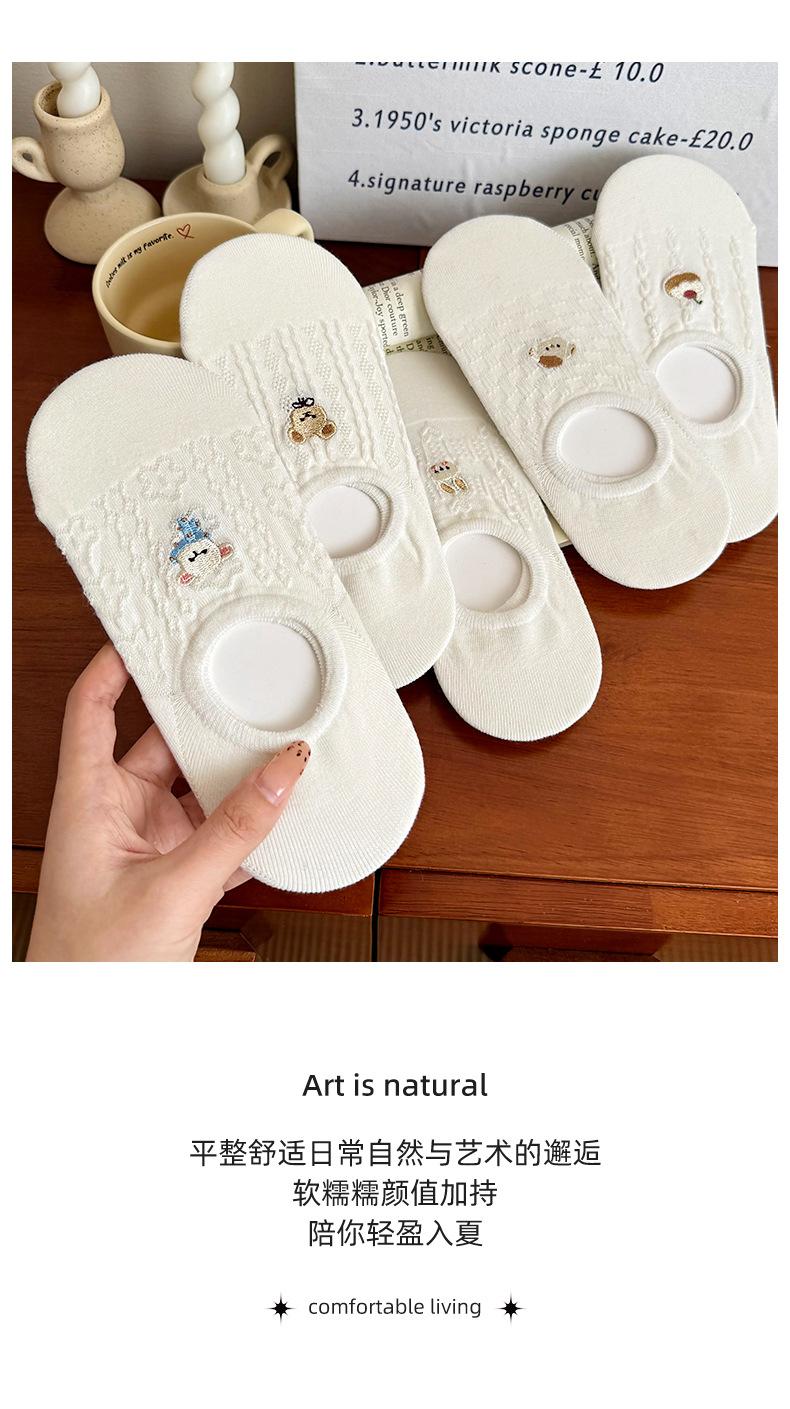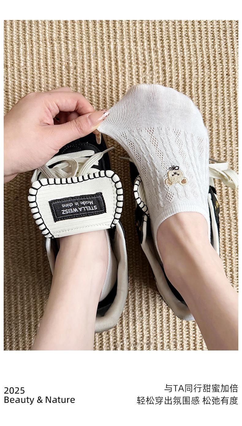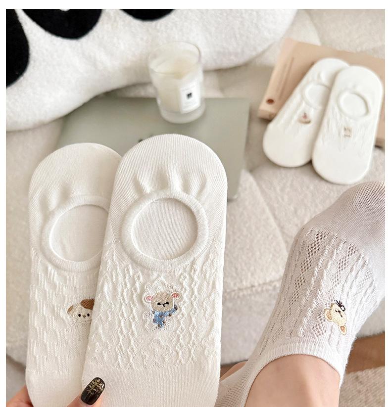 Calcetines cortos de malla transpirable para mujer, de primavera y verano, estilo universitario, blancos, náuticos, invisibles, japoneses, con bonitos bordados.