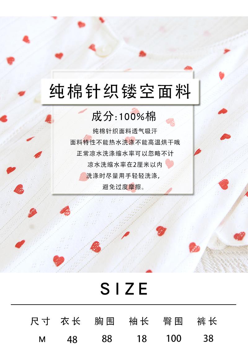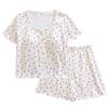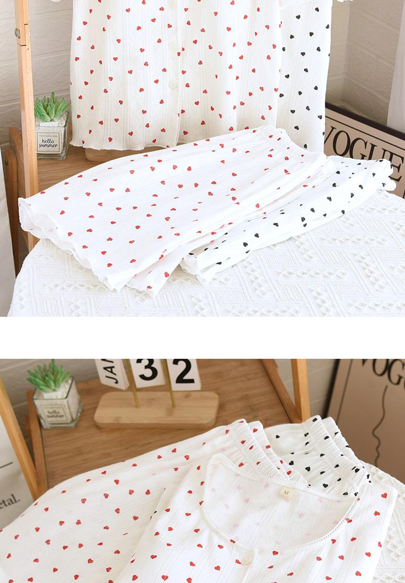 Pijama de Verano de Algodón Puro para Mujer Estilo Princesa Dulce Cárdigan Manga Corta Shorts Amor Dos Piezas Transfronterizo Delgada Ropa para el Hogar