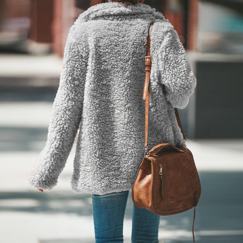Abrigo de felpa europeo y americano de otoño e invierno 2019 eBay Amazon, cárdigan de manga larga de color liso con solapa