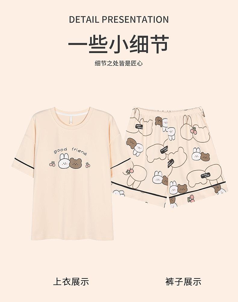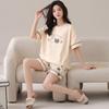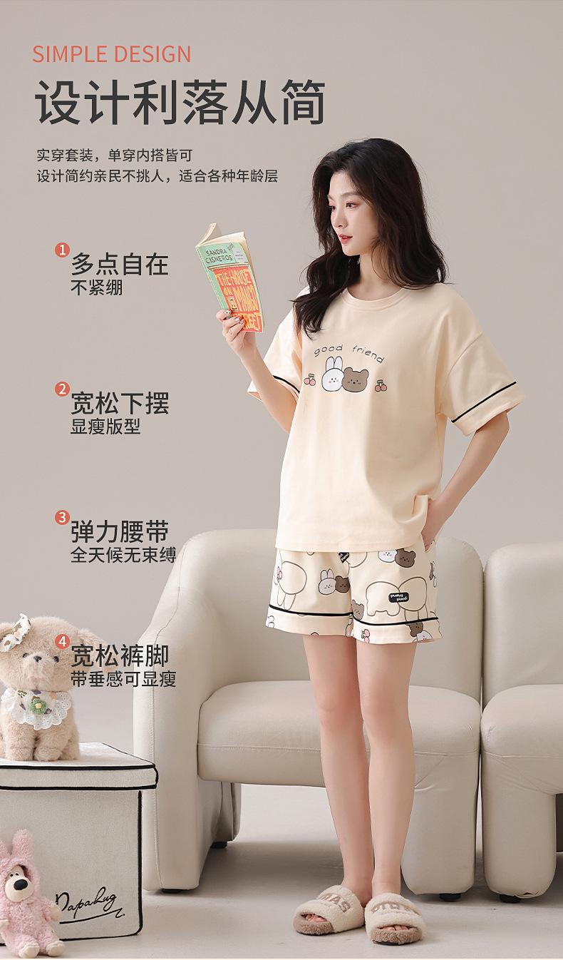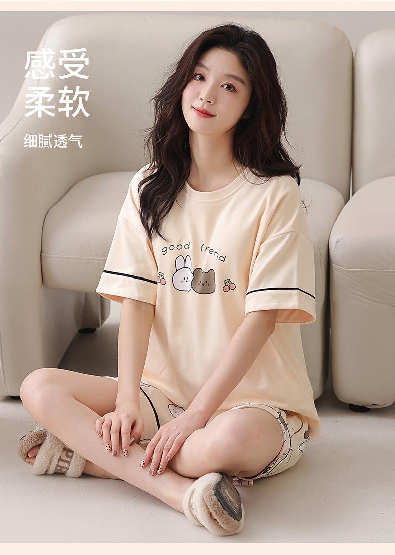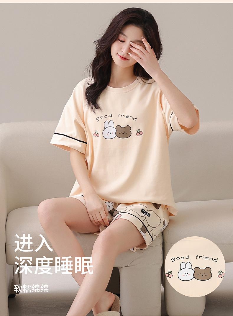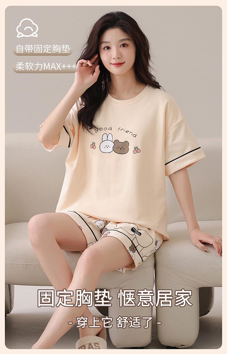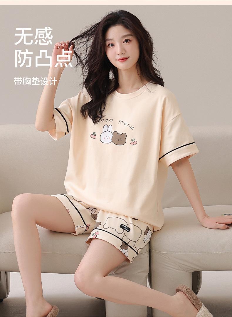 [Algodón puro] Pijamas de mujer de verano de manga corta, pantalones cortos de primavera y otoño con almohadilla para el pecho, ropa de hogar de estilo coreano, conjunto de dos piezas dulce