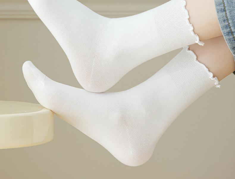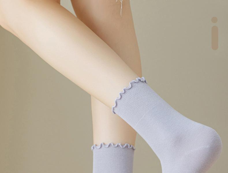 Calcetines Encaje para Mujer Modernos Primavera y Verano Delgados Color Sólido Algodón Lindo Japonés Morandi Verano JK Calcetines de Media Caña