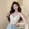 Dulce Spice Girl Lazo Estampado Encaje Encaje Tirantes Chaleco Pequeño de Mujer Ajustado Corto Espalda Hermosa Sin Tirantes Sin Mangas Top