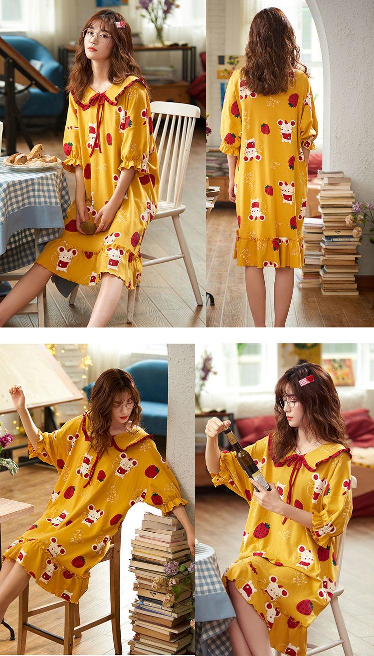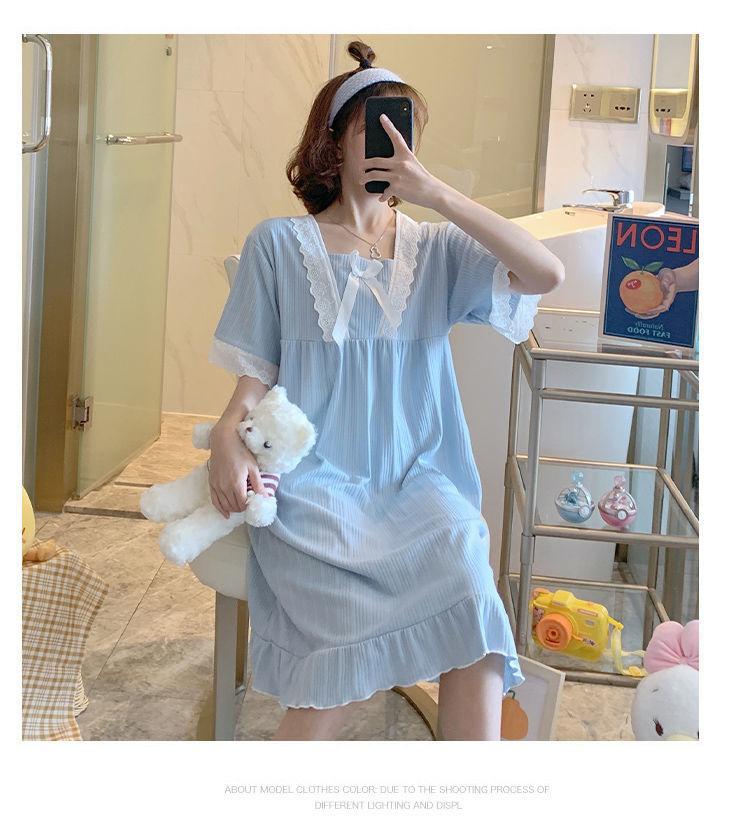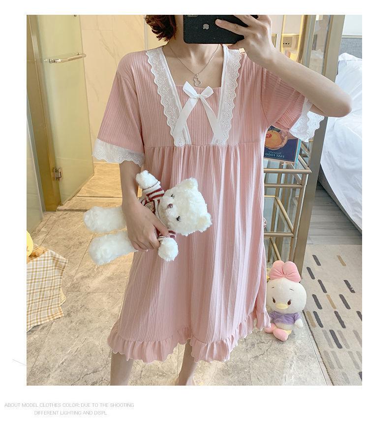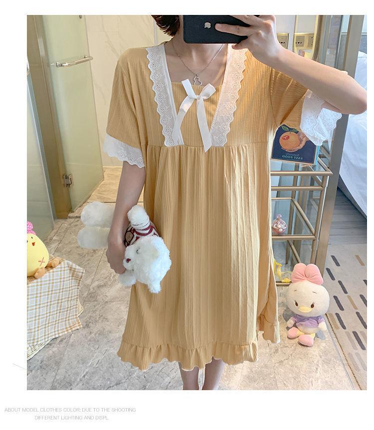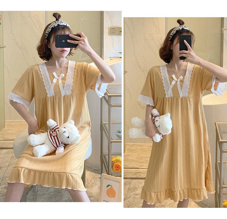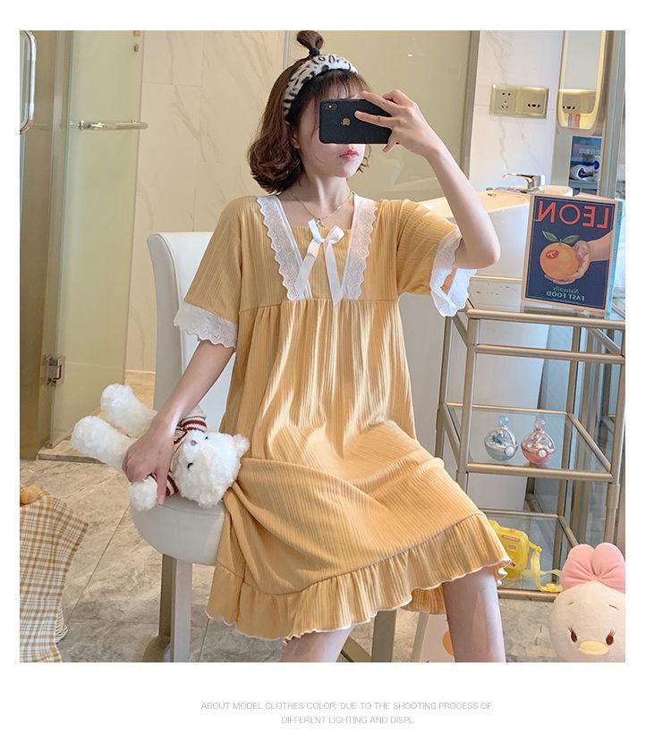 Gran Oferta Camisón para Mujer Verano Delgado Manga Corta Niña Dulce Nuevo Talla Grande Estilo Princesa Camisón