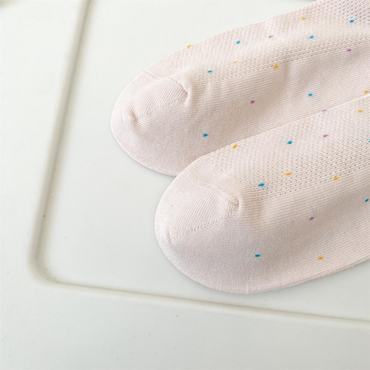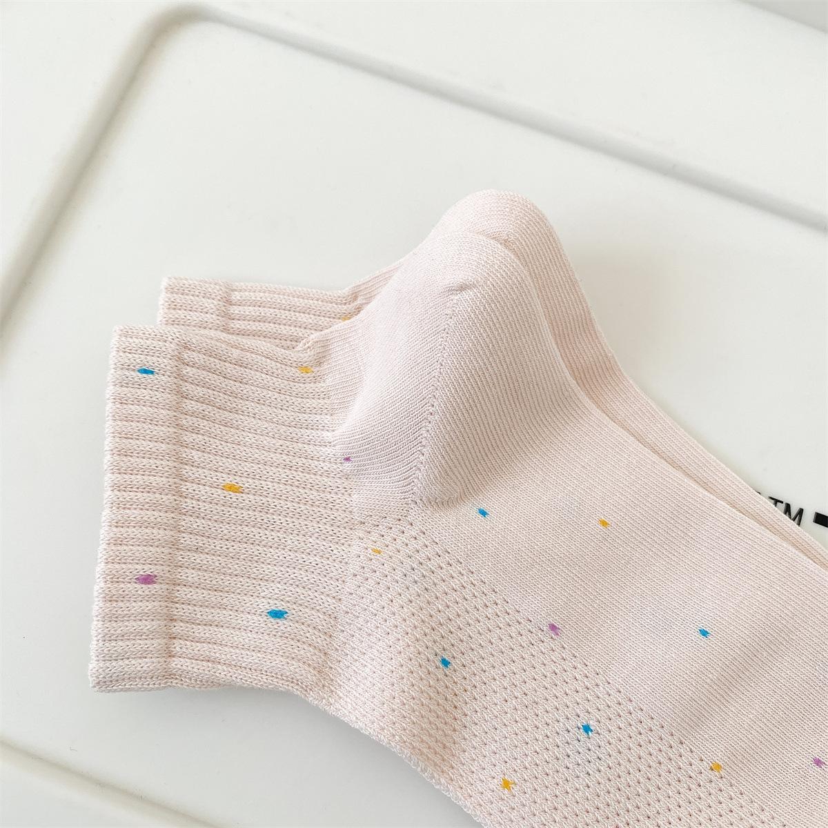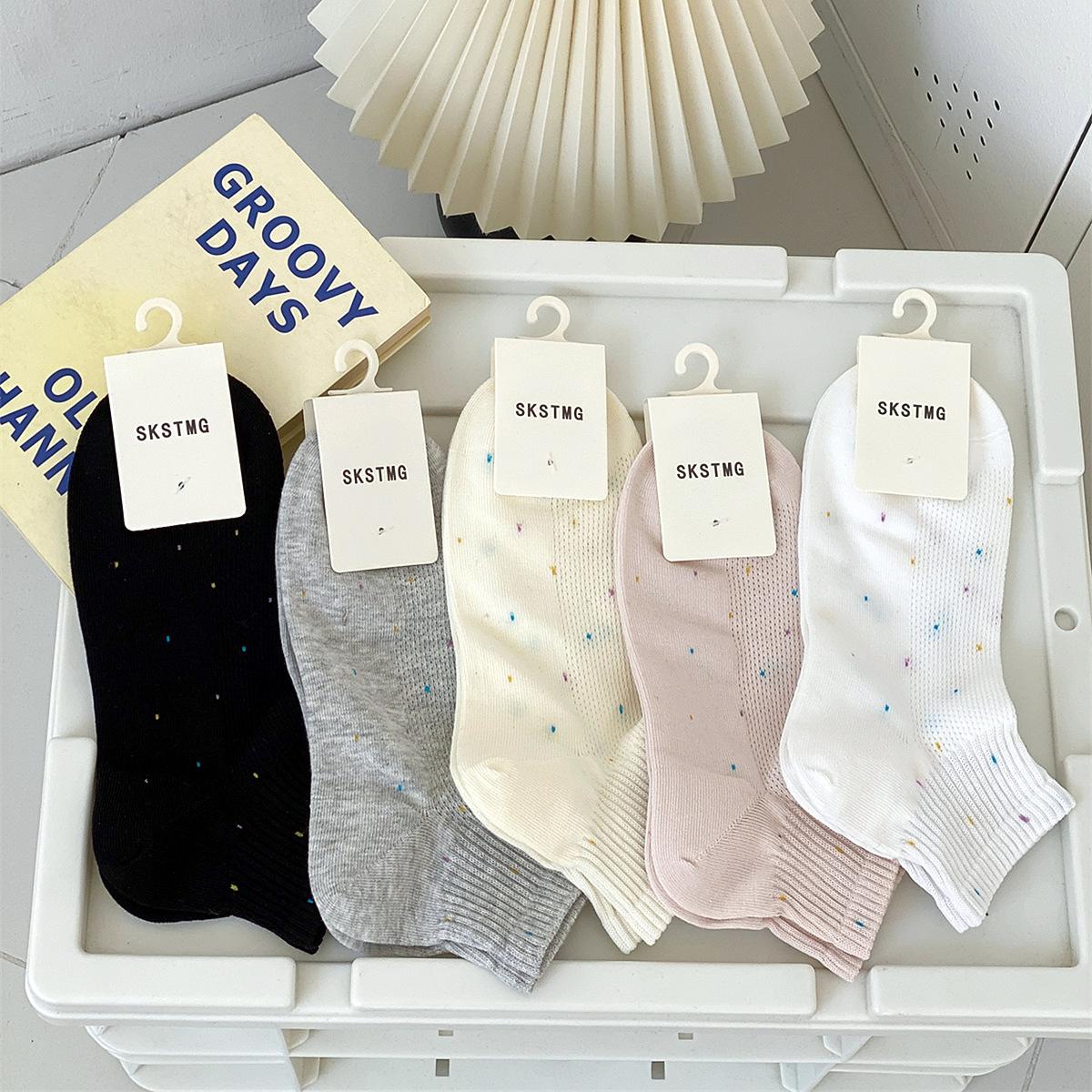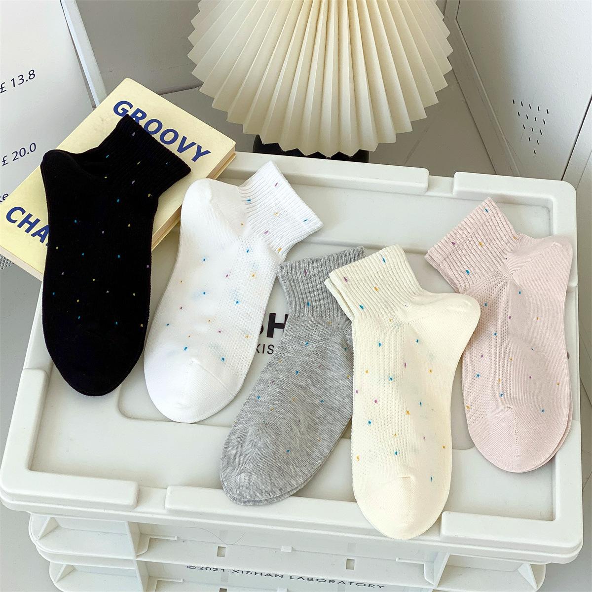 Calcetines de mujer nuevos de primavera y verano, calcetines náuticos de lunares coloridos, de malla fina de algodón, transpirables y absorbentes del sudor, de hilo de lunares japoneses, calcetines cortos de mujer.