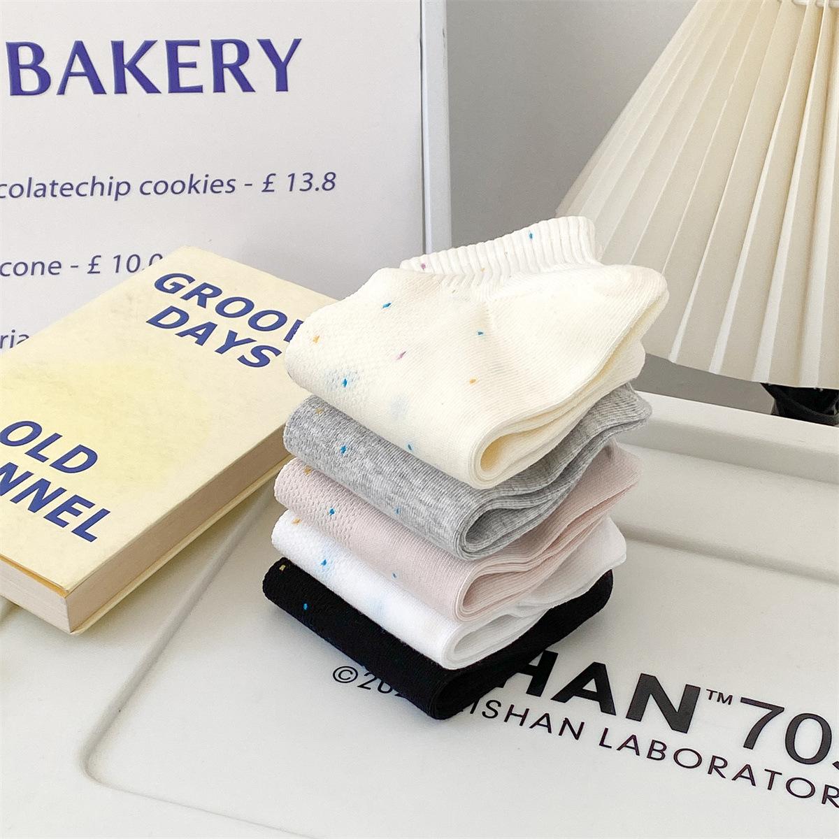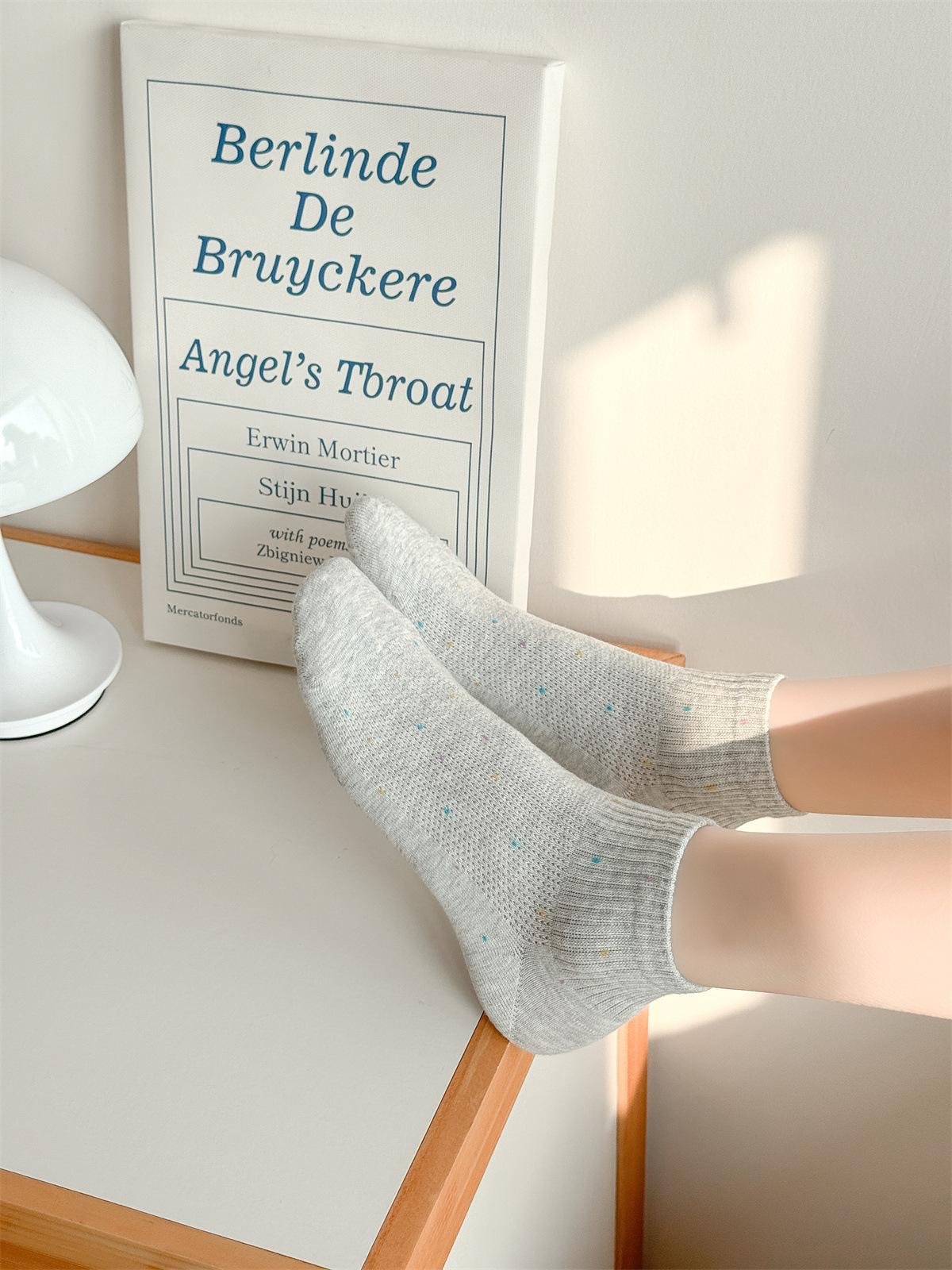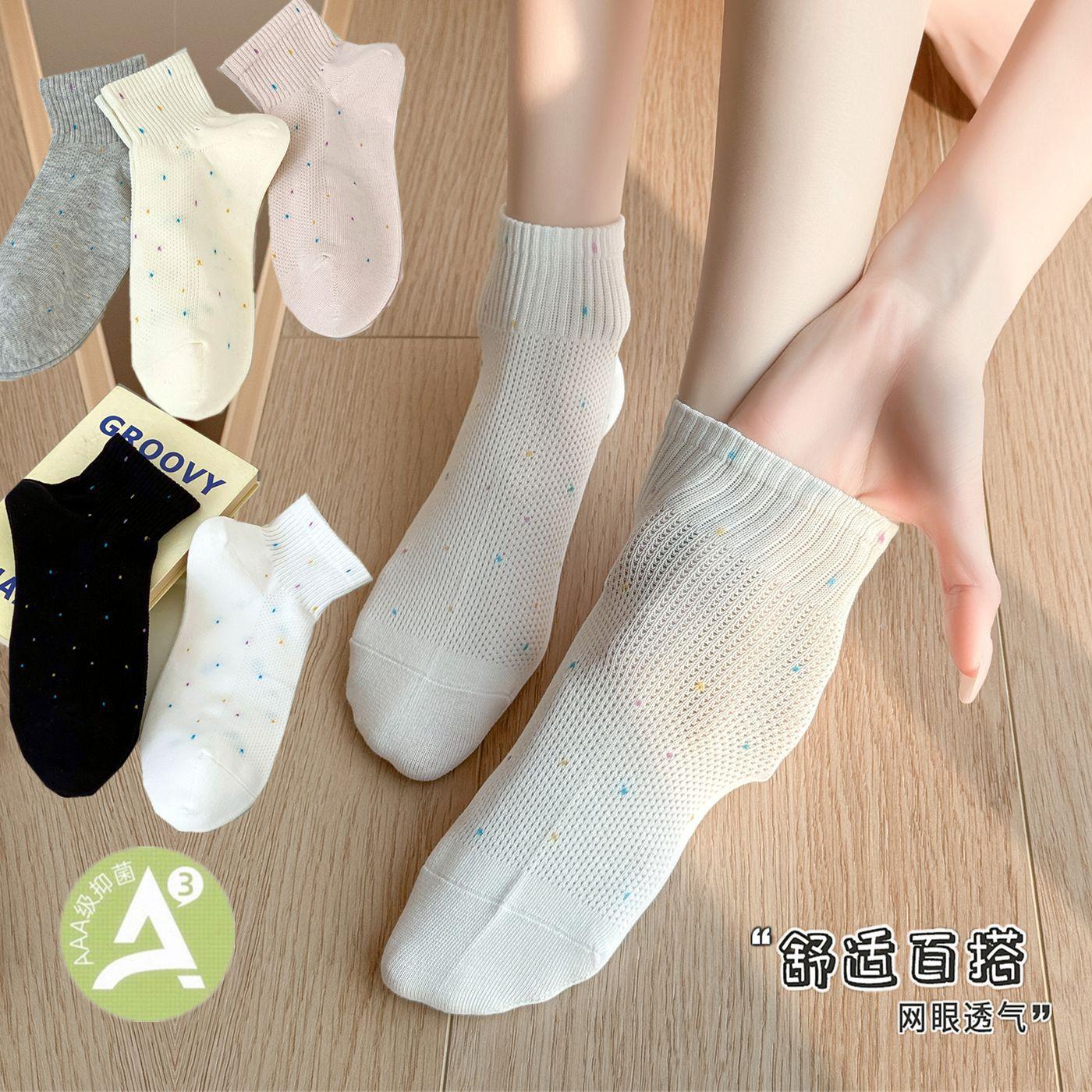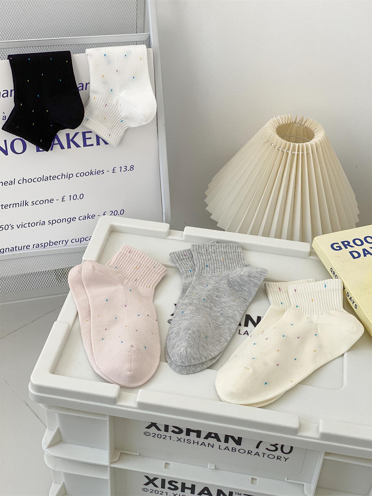 Calcetines de mujer nuevos de primavera y verano, calcetines náuticos de lunares coloridos, de malla fina de algodón, transpirables y absorbentes del sudor, de hilo de lunares japoneses, calcetines cortos de mujer.