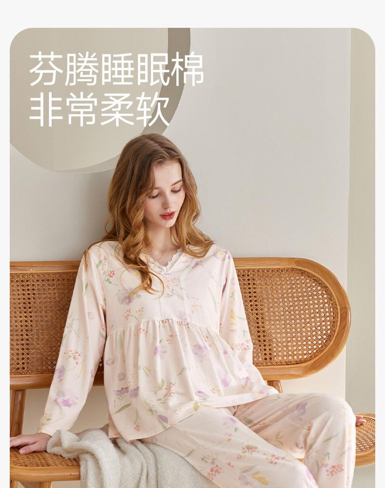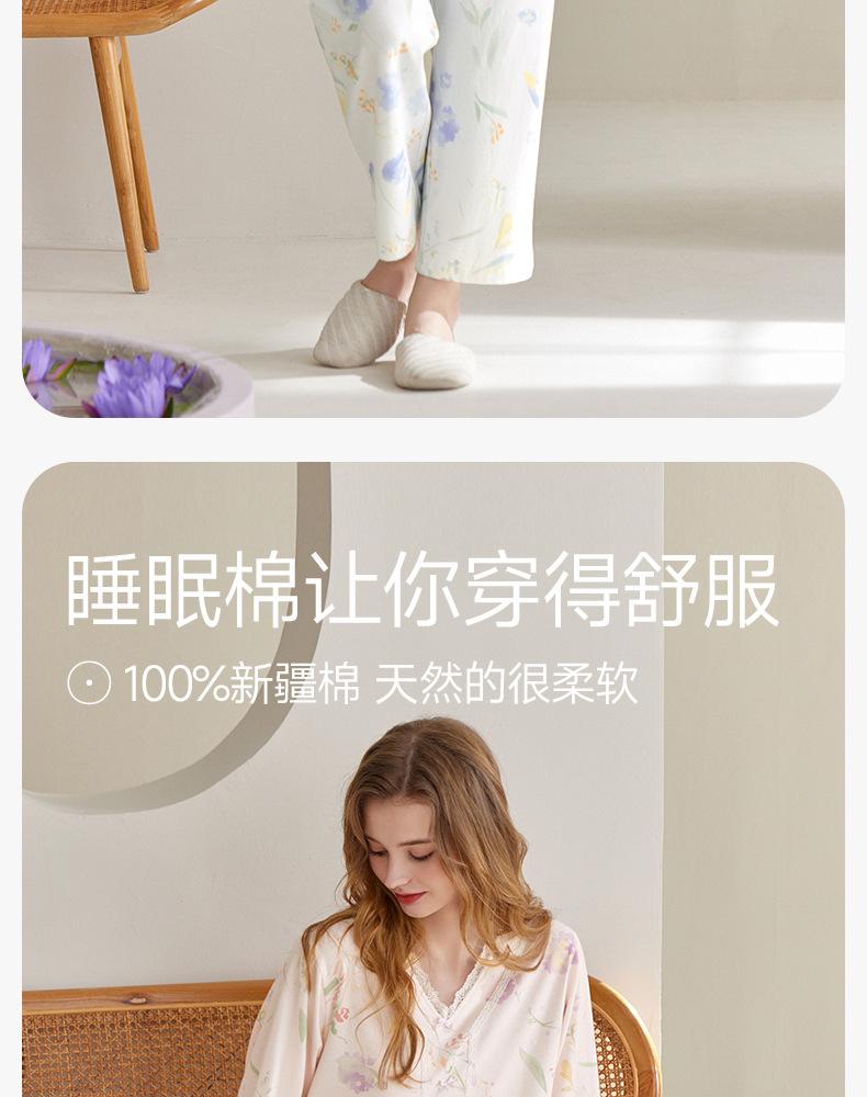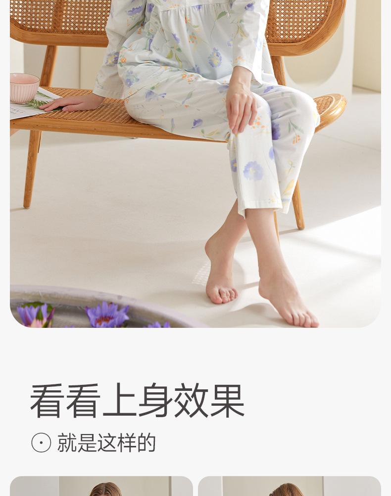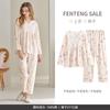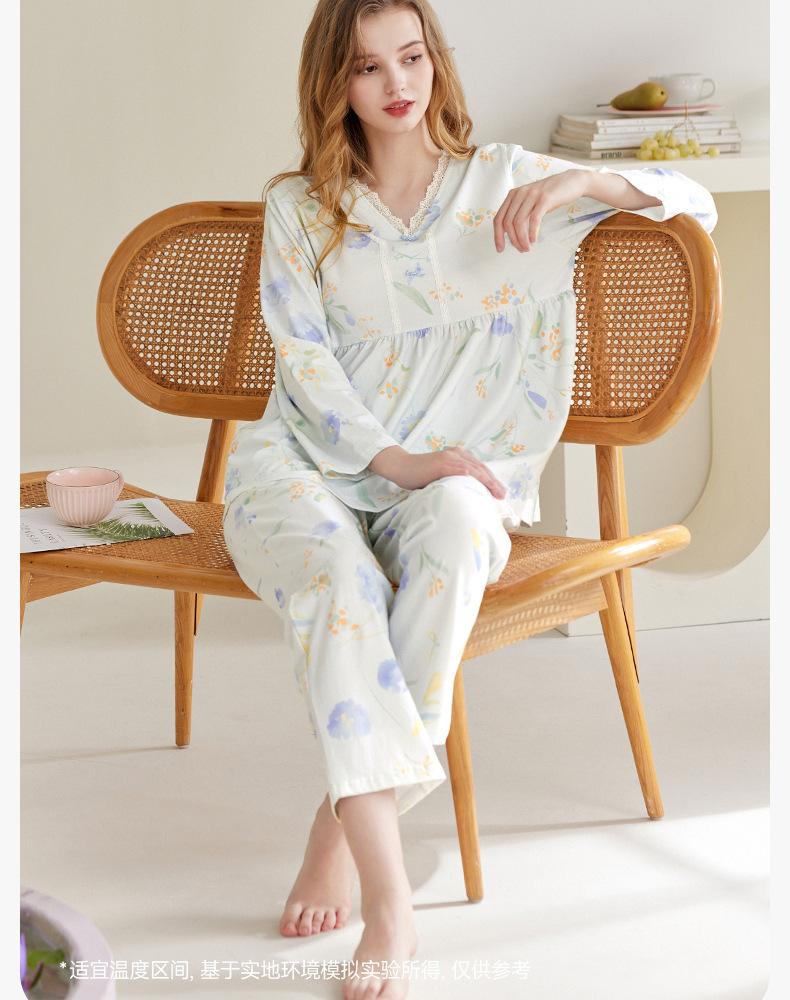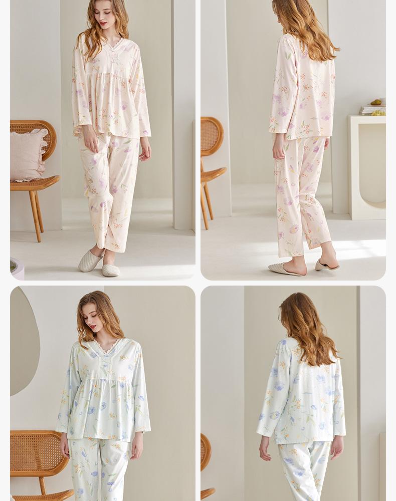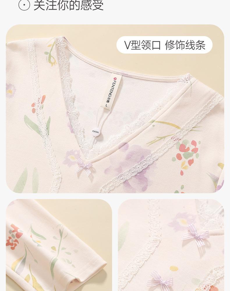 [Algodón para Dormir] Pijama de Mujer Primavera y Otoño Algodón Puro Manga Larga Cuello en V Traje Floral Algodón Casual Ropa de Casa para Mujer