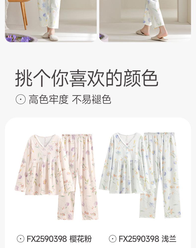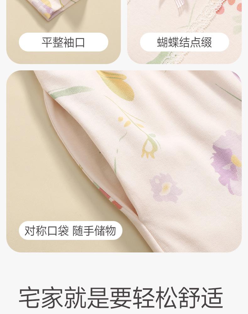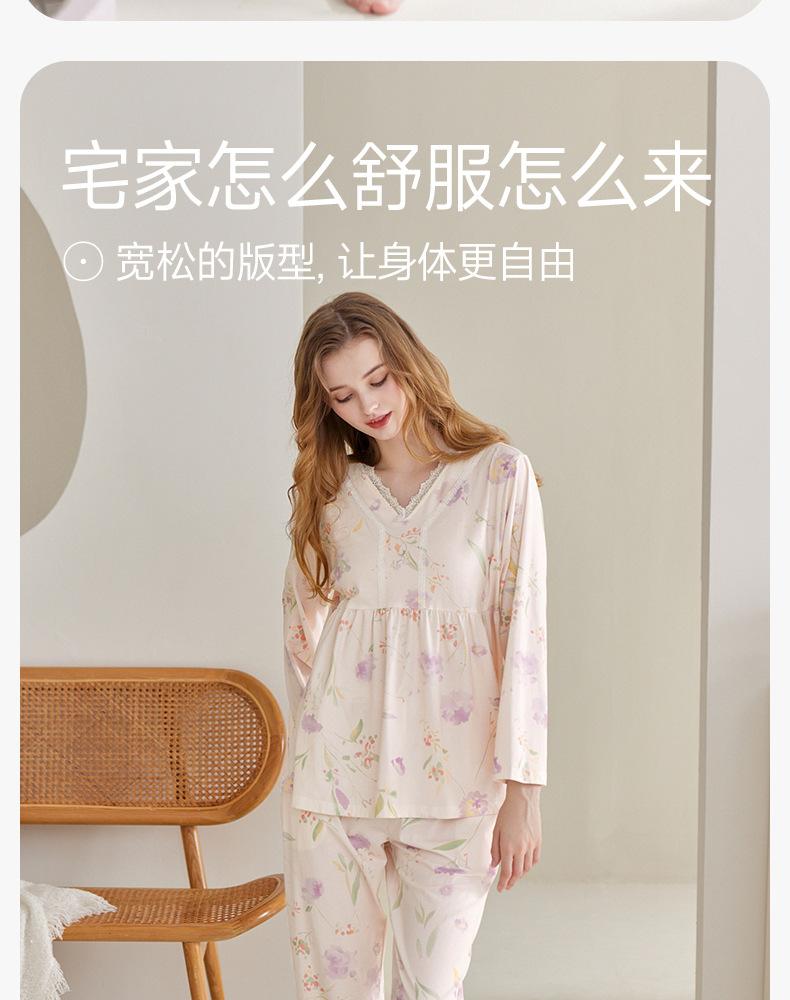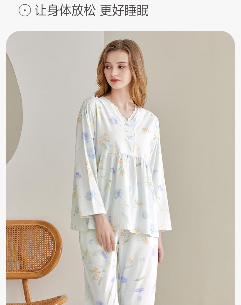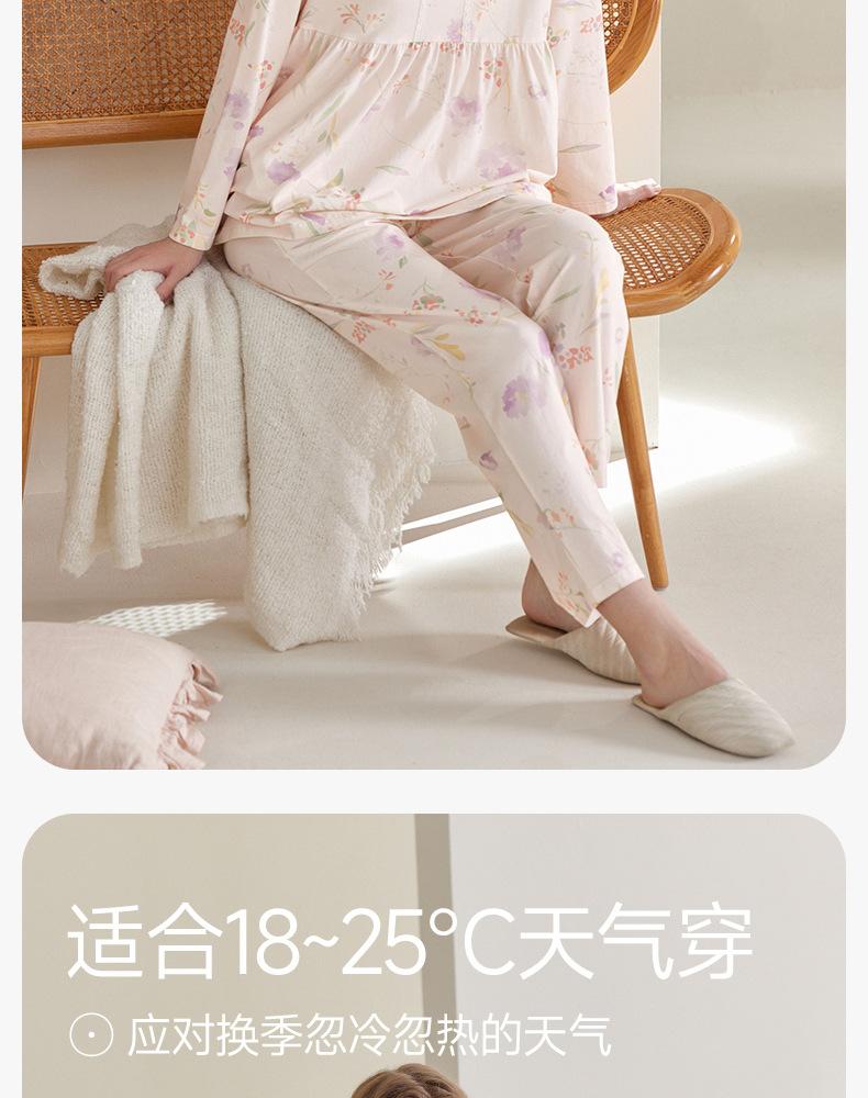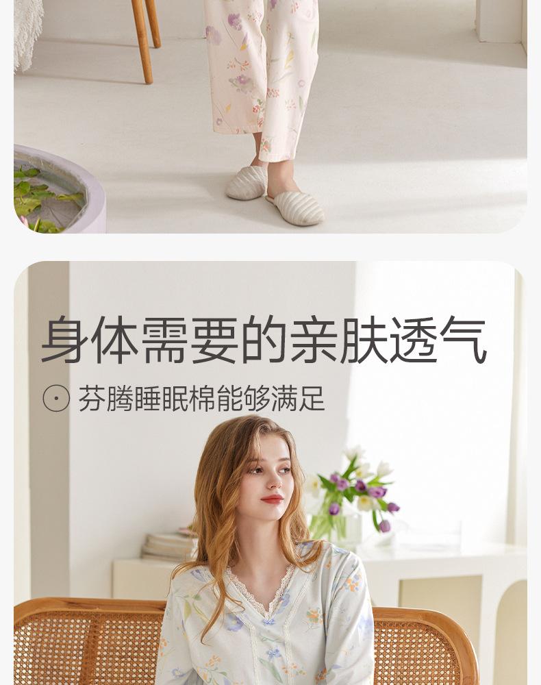 [Algodón para Dormir] Pijama de Mujer Primavera y Otoño Algodón Puro Manga Larga Cuello en V Traje Floral Algodón Casual Ropa de Casa para Mujer