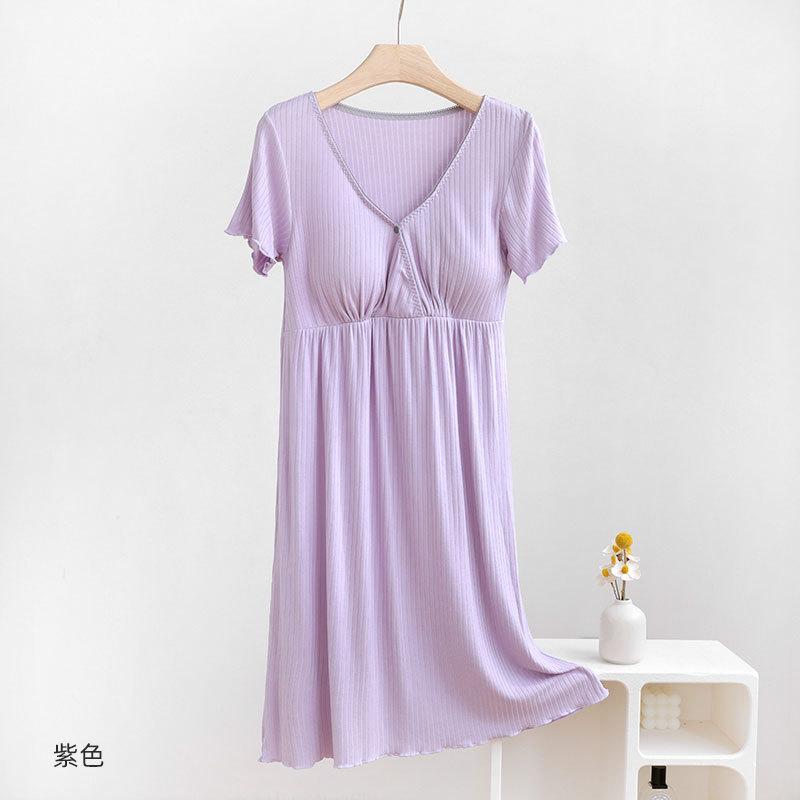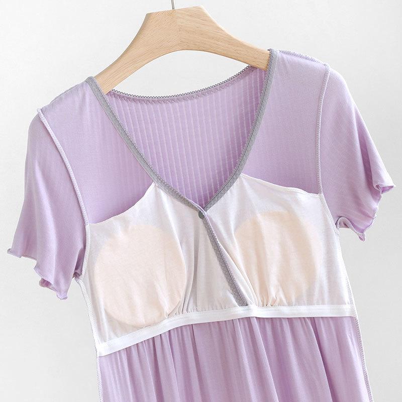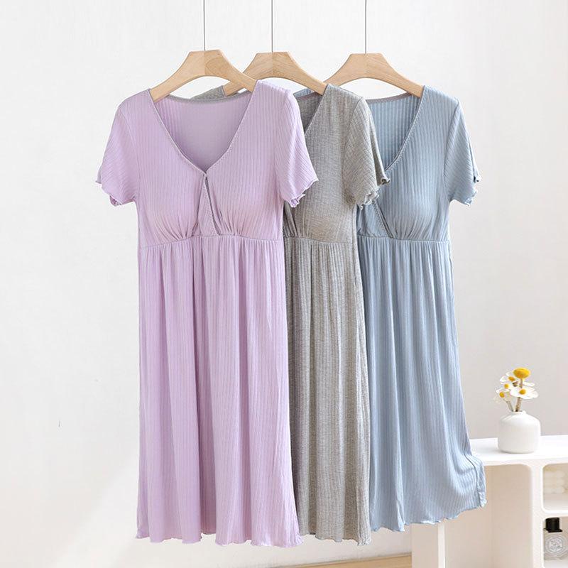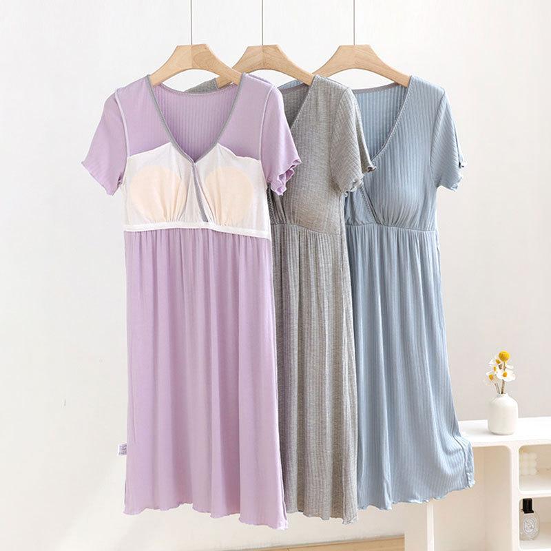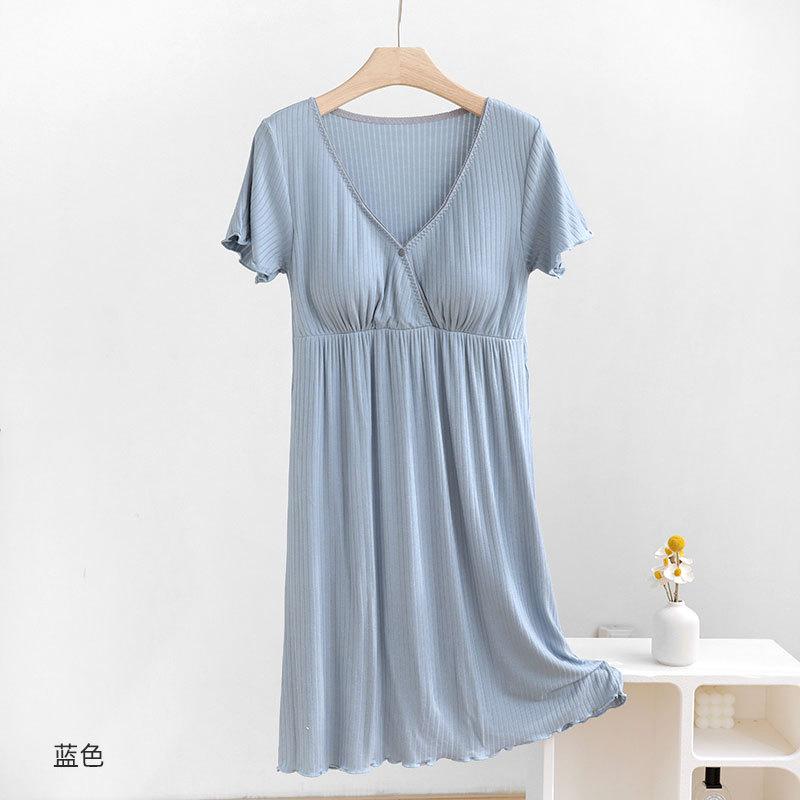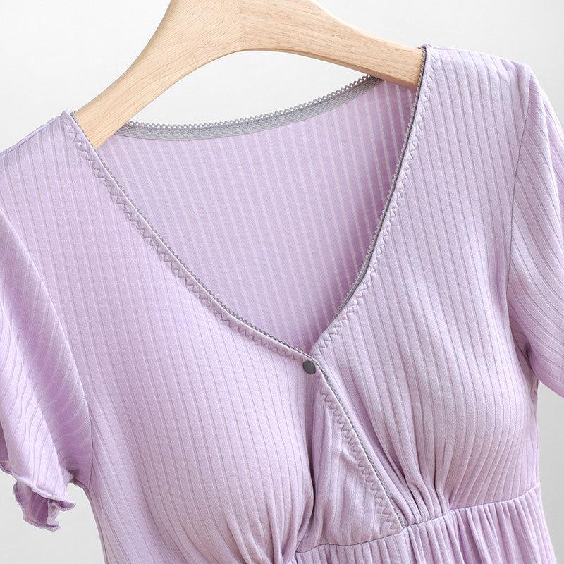 Vestido Lunar de Verano Estilo Coreano para Lactancia Materna Top de Lactancia Postparto Pijama para Mujeres Embarazadas Vestido Largo de Manga Corta para Lactancia