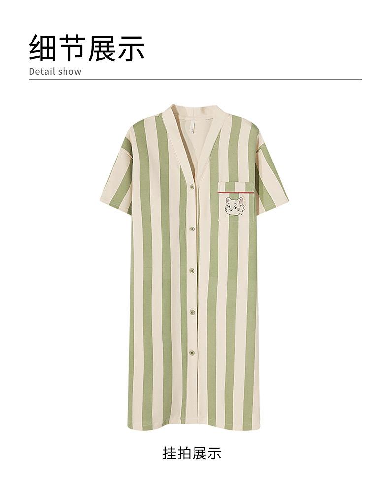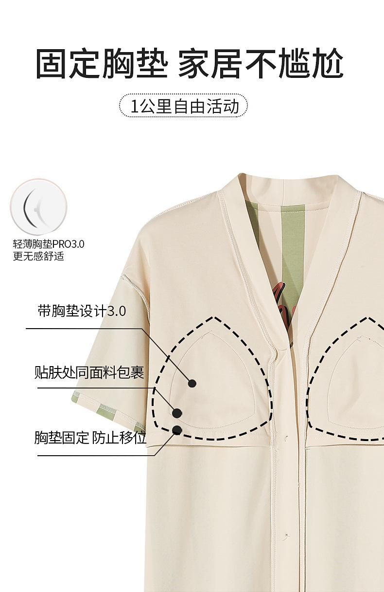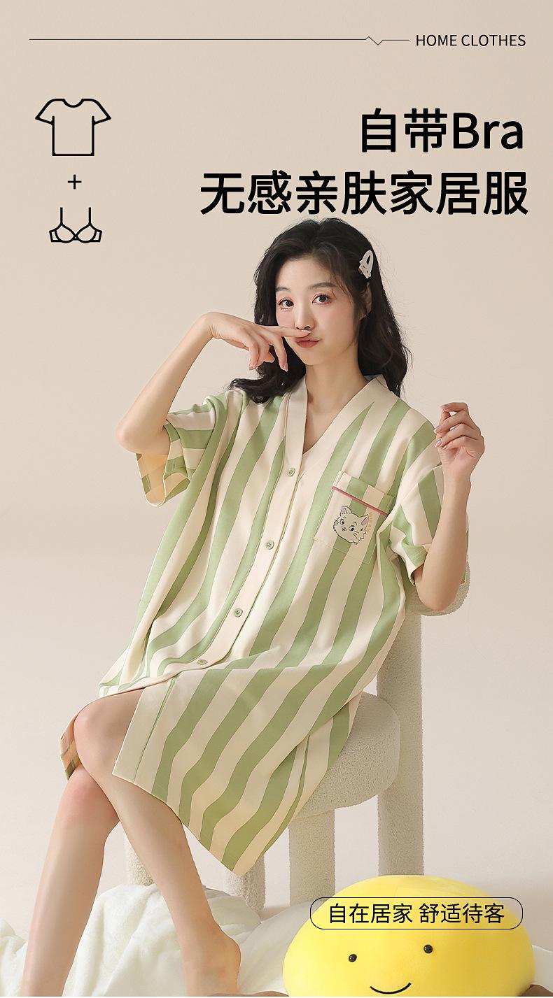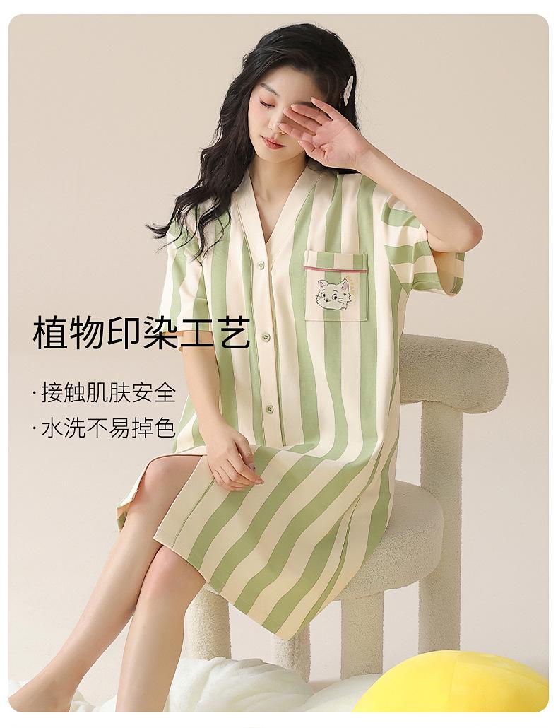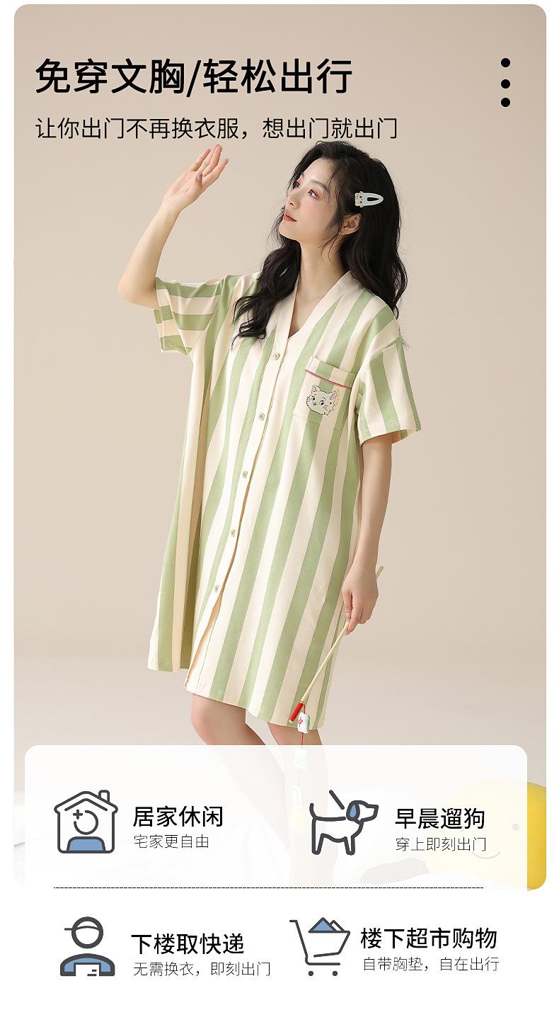 [Algodón Puro] Camisón de Algodón Puro para Mujer para Verano con Almohadilla en el Pecho Pijama de Manga Corta Ropa de Casa de Verano Cárdigan
