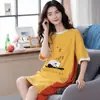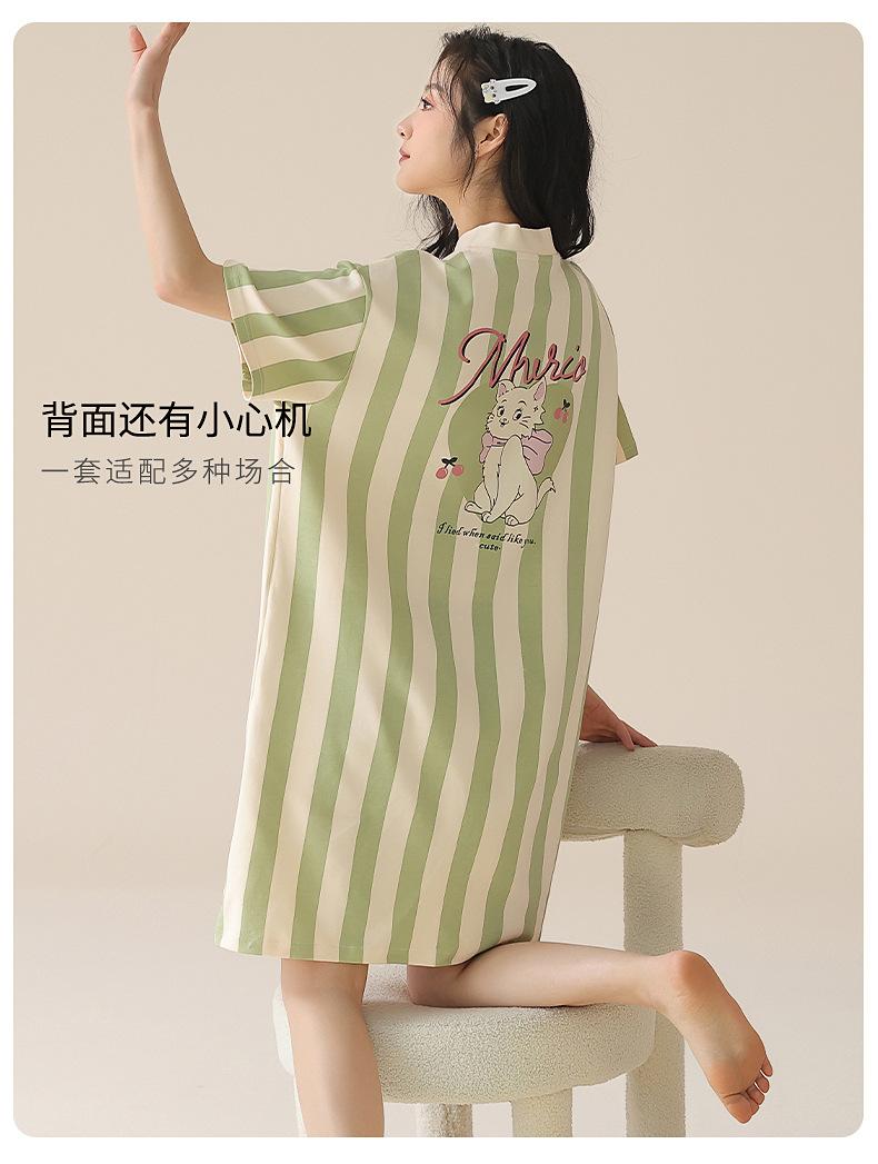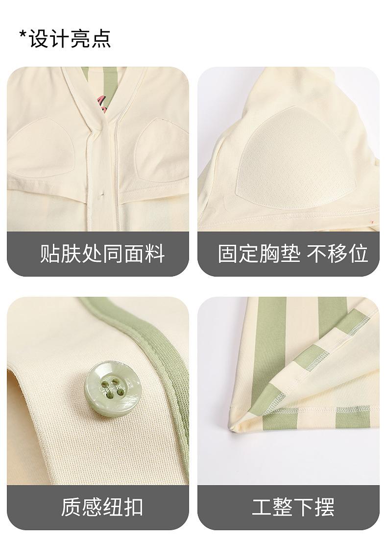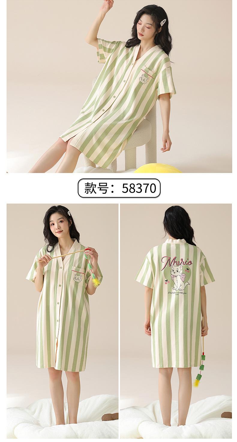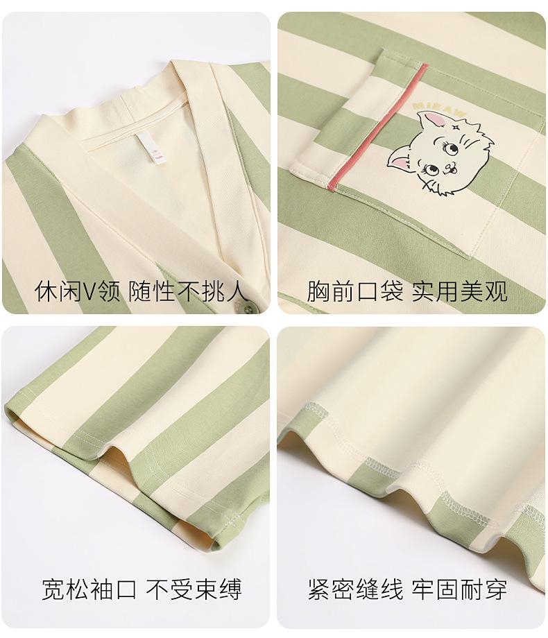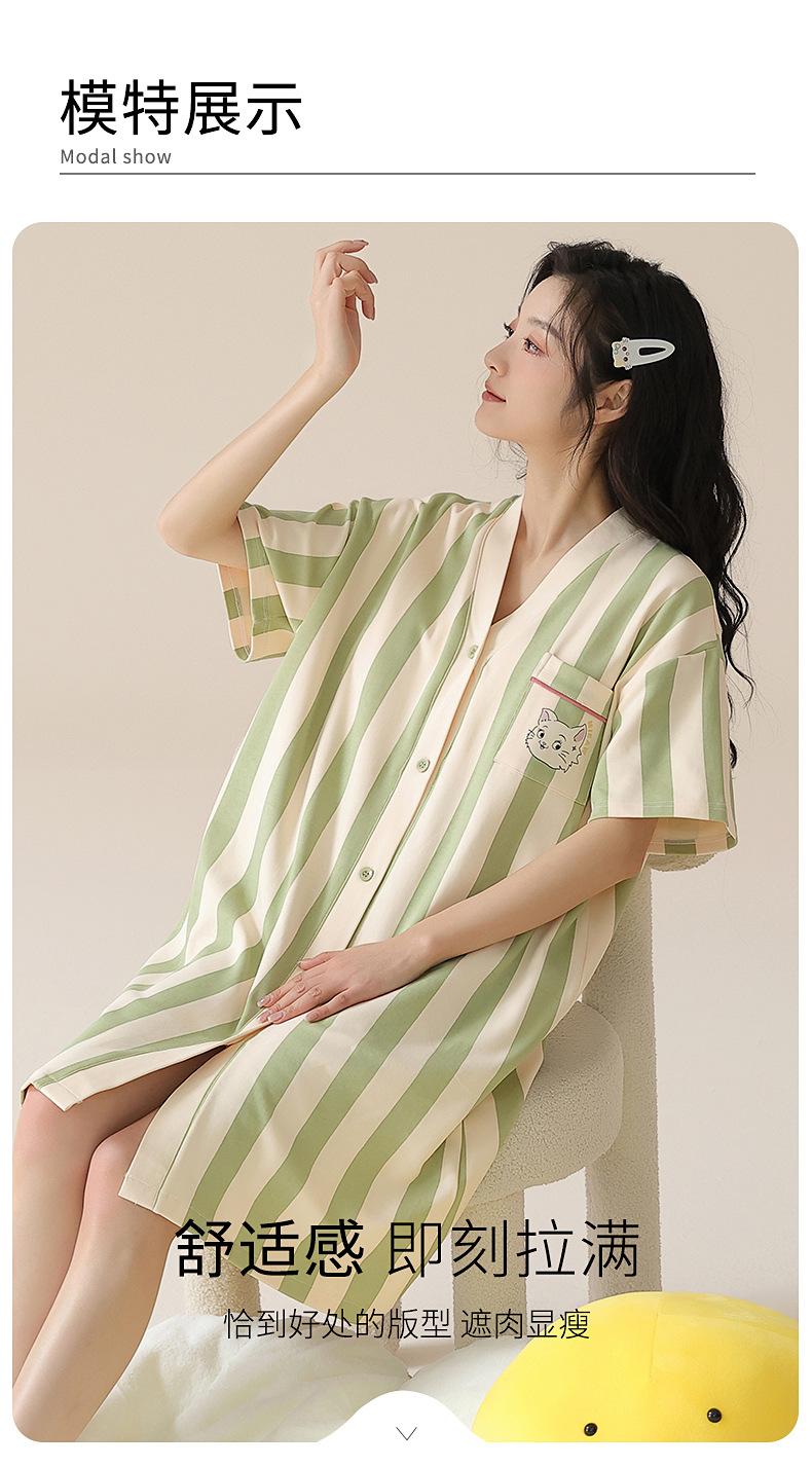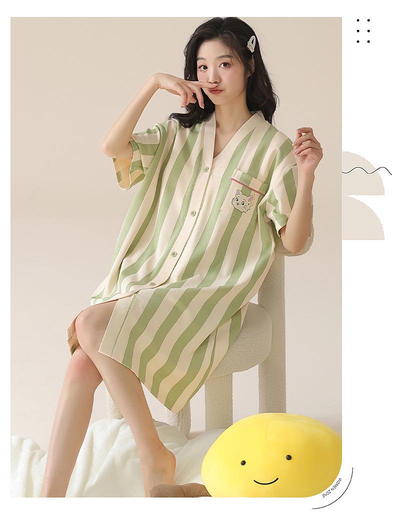 [Algodón Puro] Camisón de Algodón Puro para Mujer para Verano con Almohadilla en el Pecho Pijama de Manga Corta Ropa de Casa de Verano Cárdigan