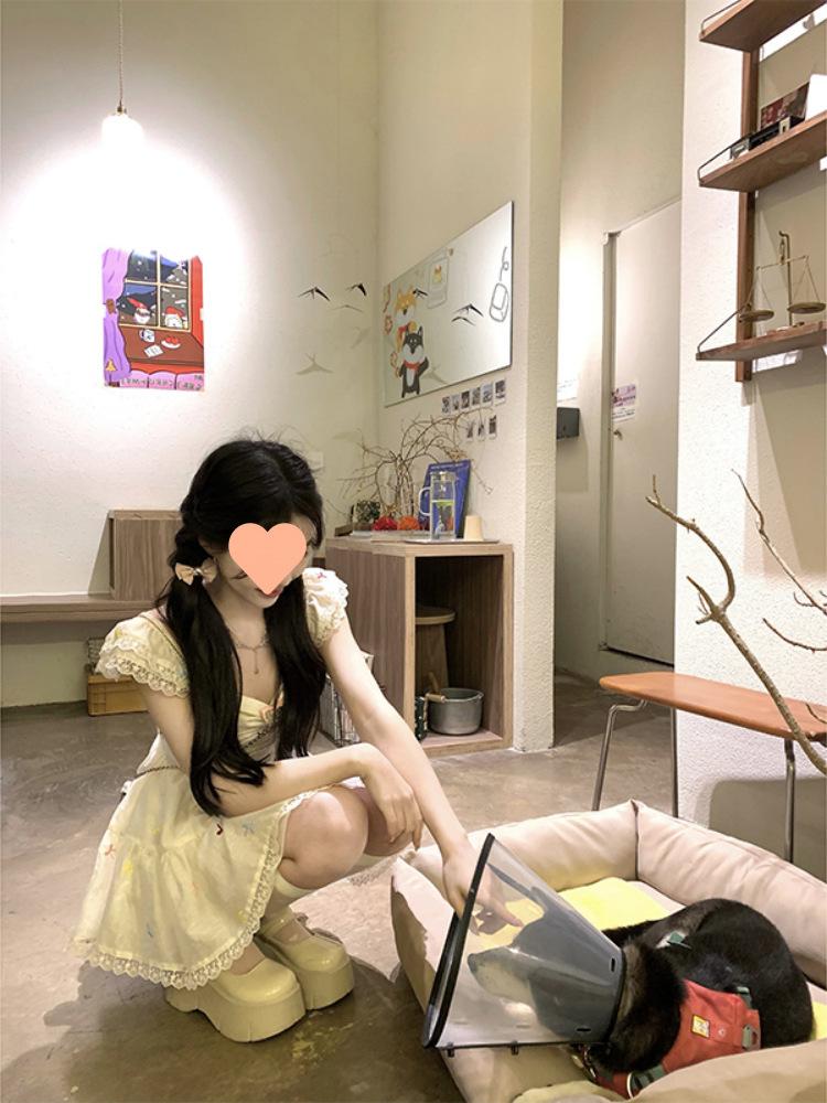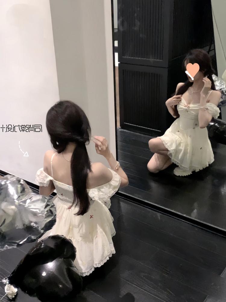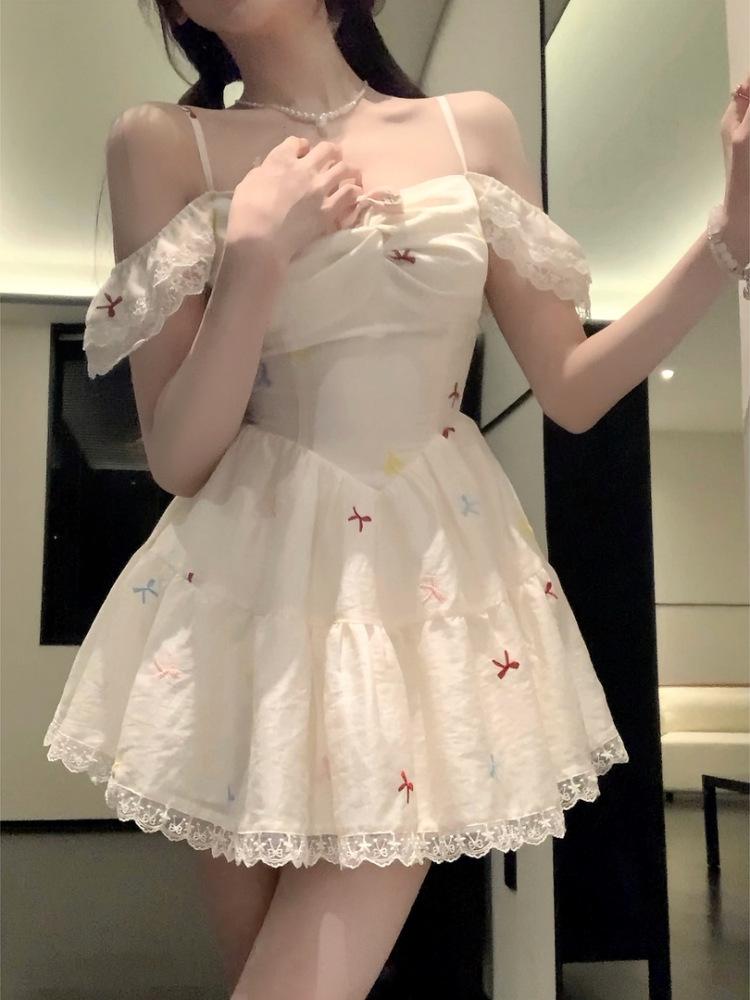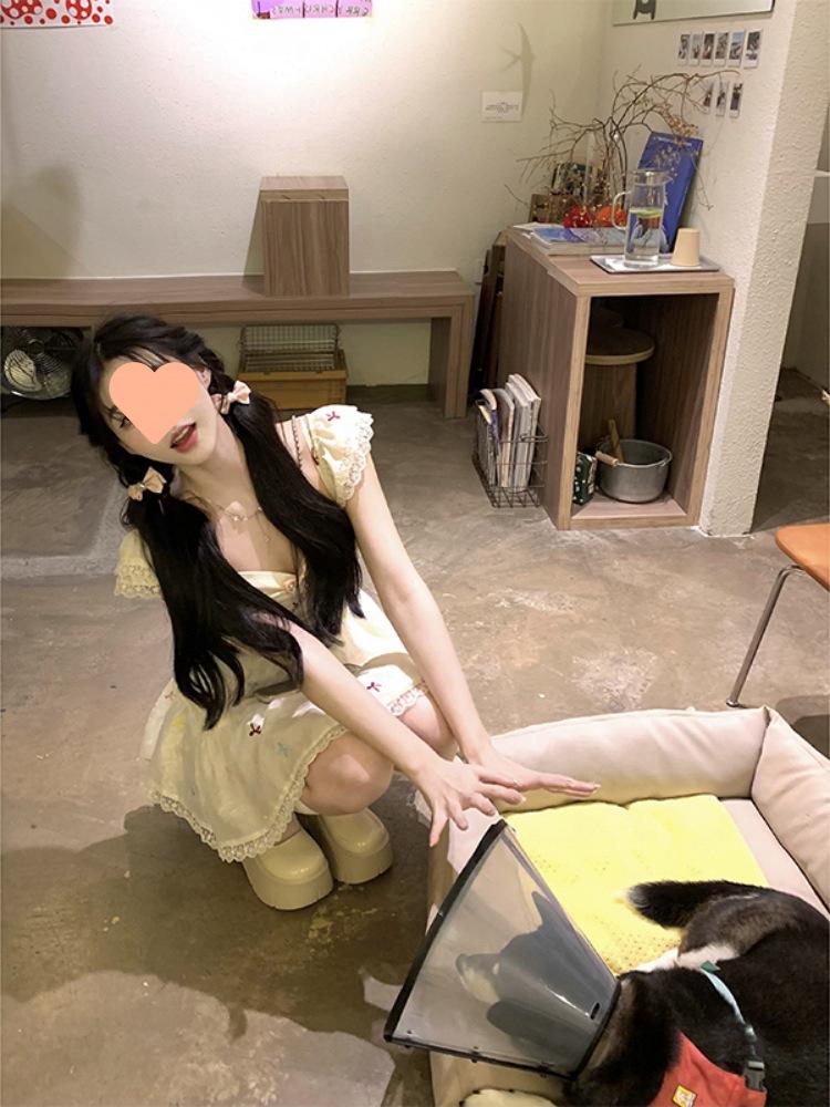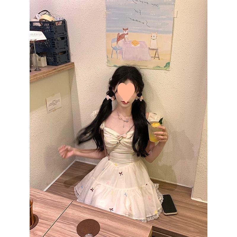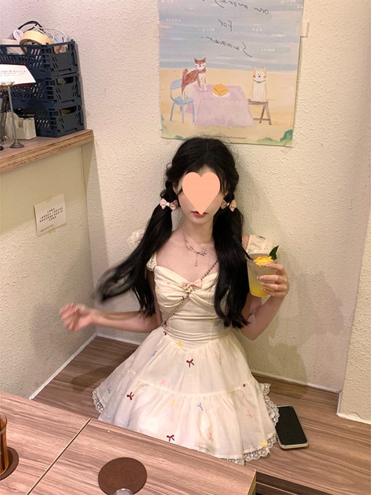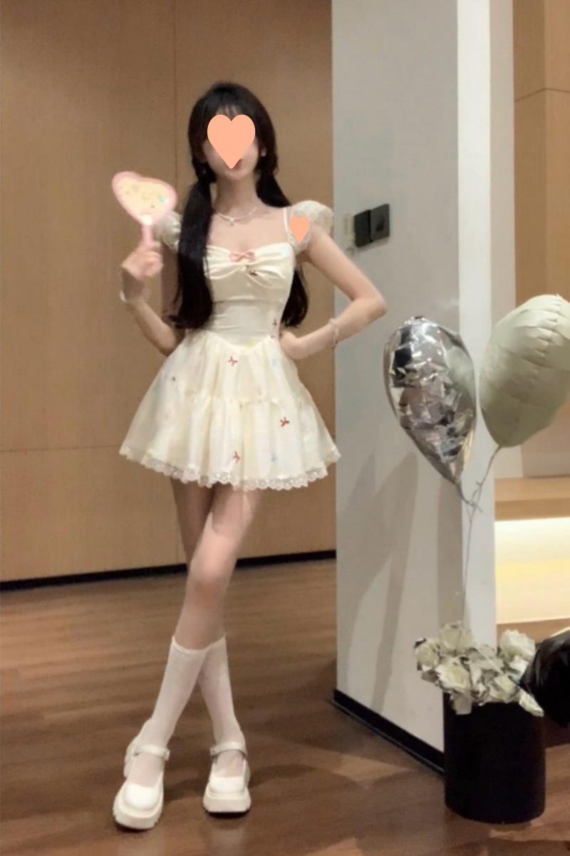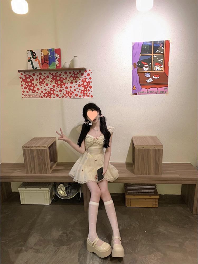 Falda Corta Estilo Chica Dulce para Personas Pequeñas, Diseño Adelgazante de Cintura para Primavera y Verano, Nicho, Vestido de Manguita Volada Pequeña, Suave y Dulce para Mujeres