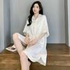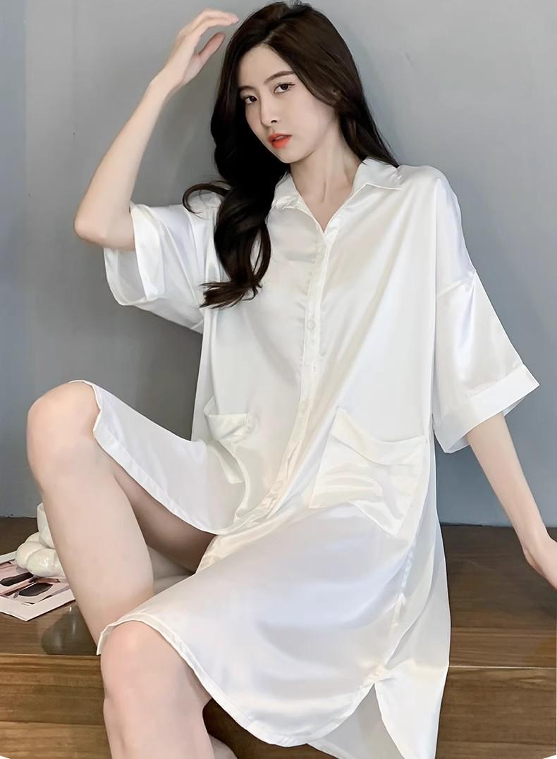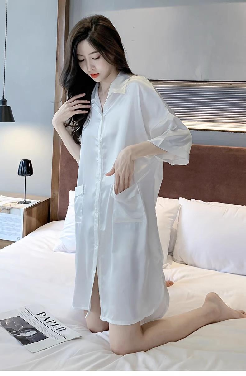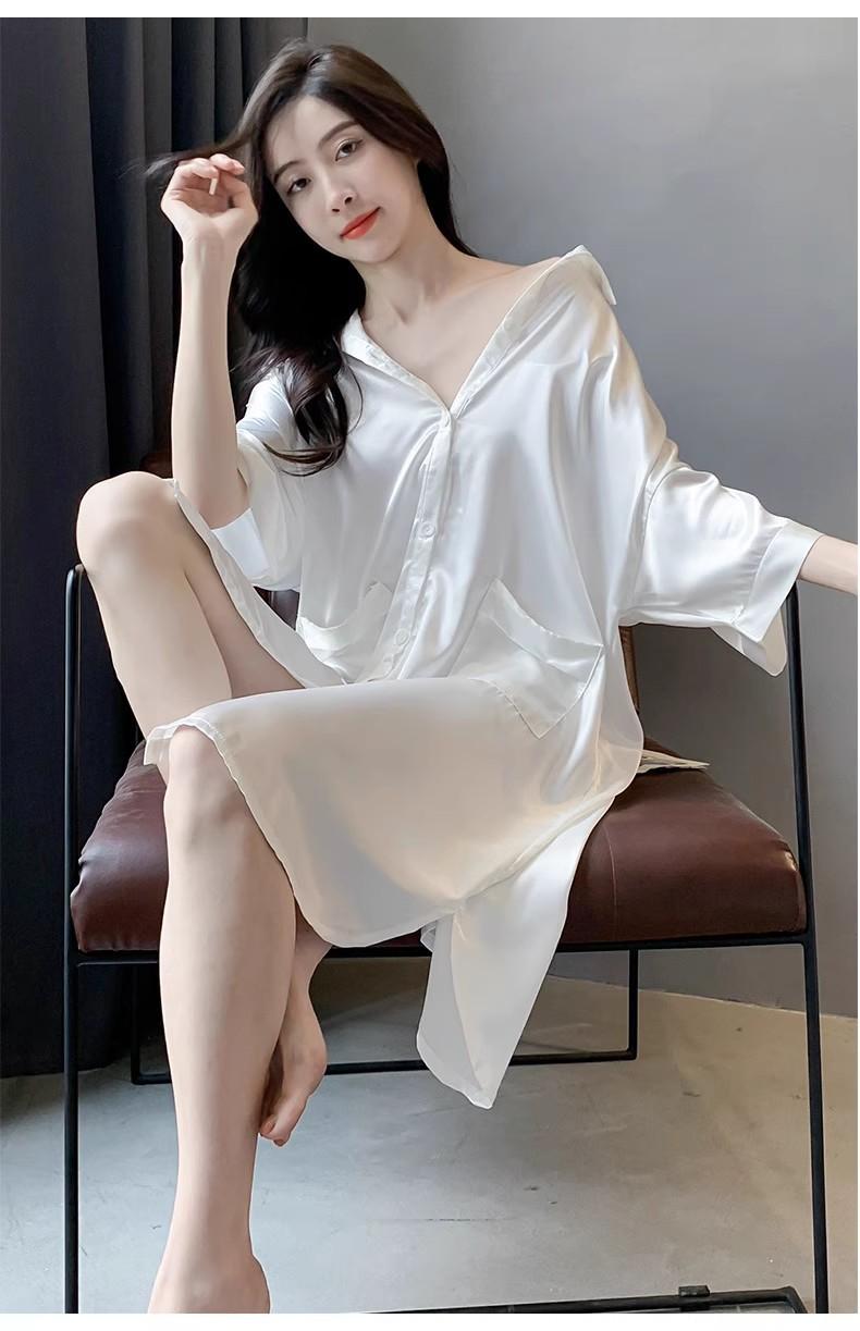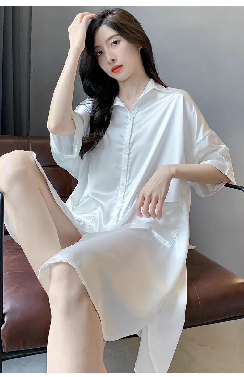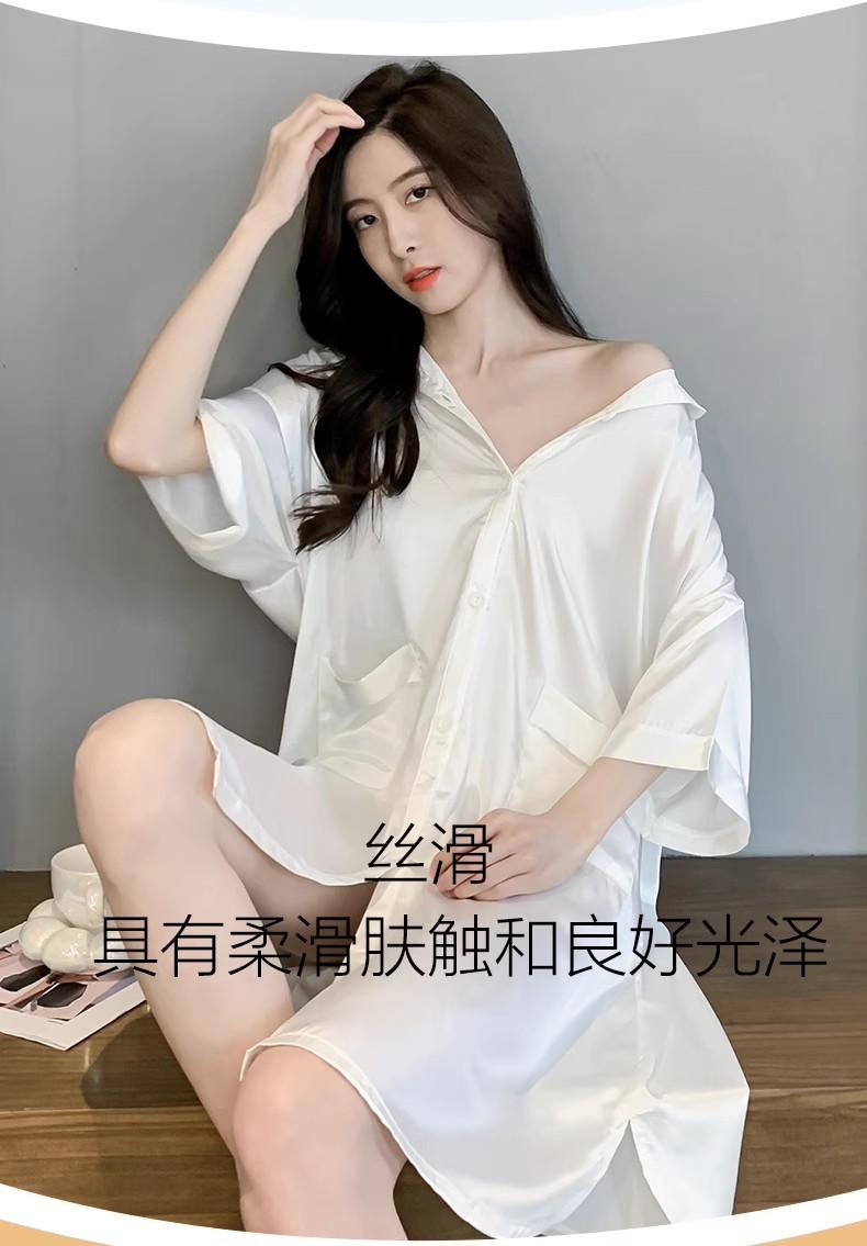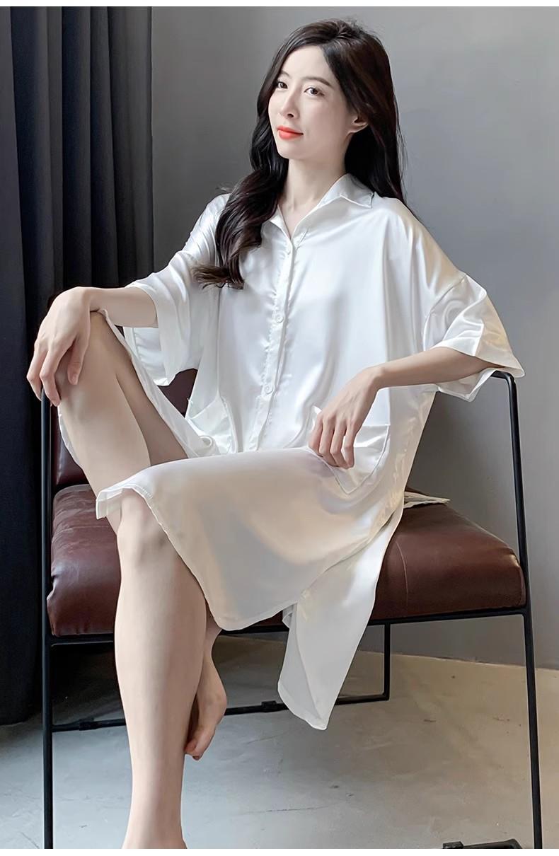 Camisón Pijama para Mujer Verano Seda de Hielo Delgado Sexy 2025 Nuevo Camisa Blanca Estilo Popular Verano Seda Imitación
