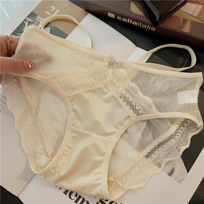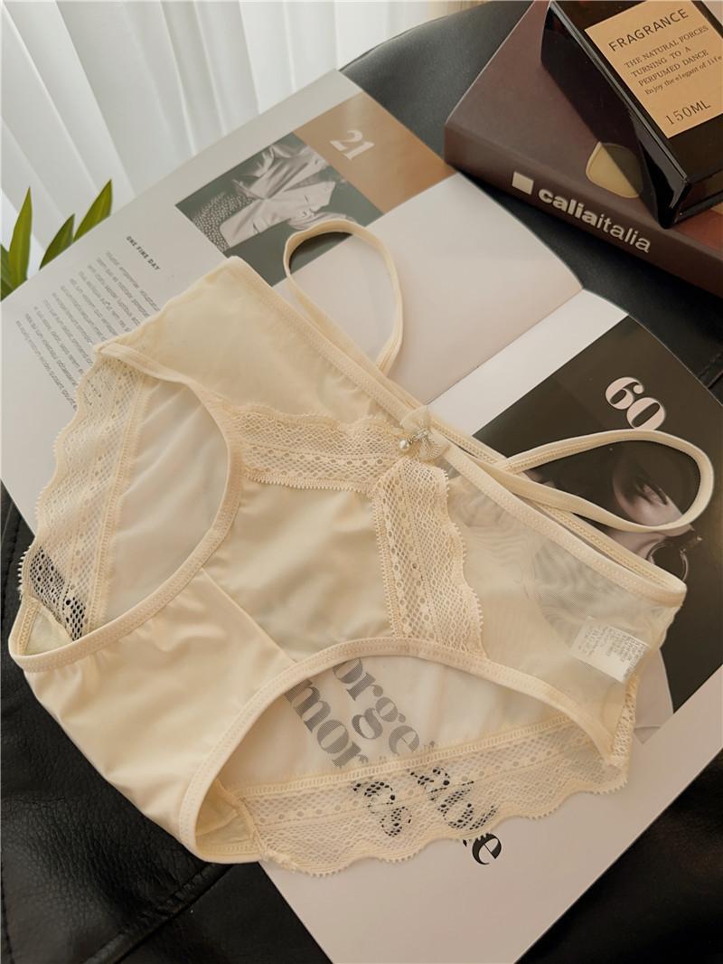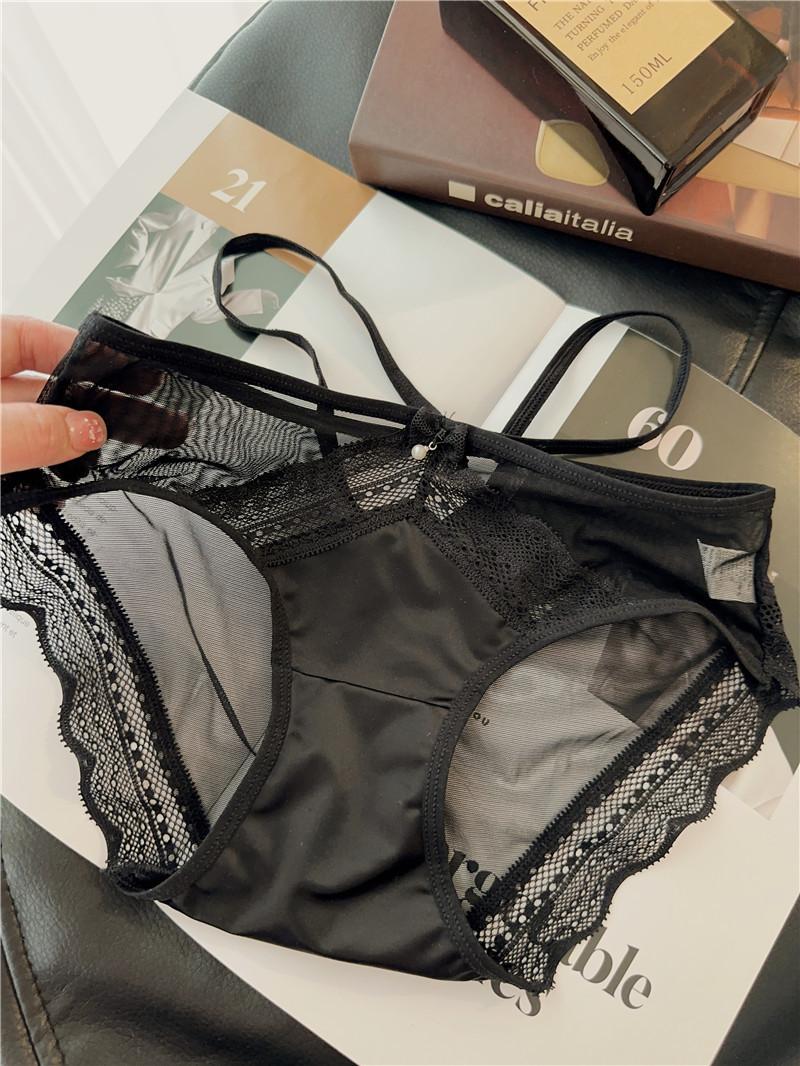 Ropa interior femenina estilo Pure Desire, transpirable, sexy, sin marcas, de cintura media, estilo japonés, con realce de cadera y encaje.